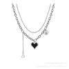 Black heart necklace, W letter necklace, Love [mosaic] necklace, Heart hollow necklace, Heart-shaped three-dim...