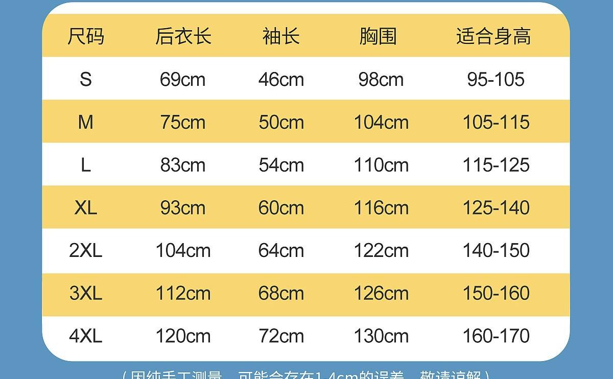 M [suitable for 5-6 years old], L【suitable for 6-8 years old】, Xl [suitable for 8-10 years old]