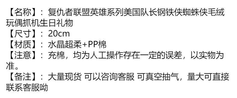 Vengadores Serie Héroes Capitán América Iron Man Spider-Man Muñeco de Peluche Máquina de Garra Regalo de Cumpleaños