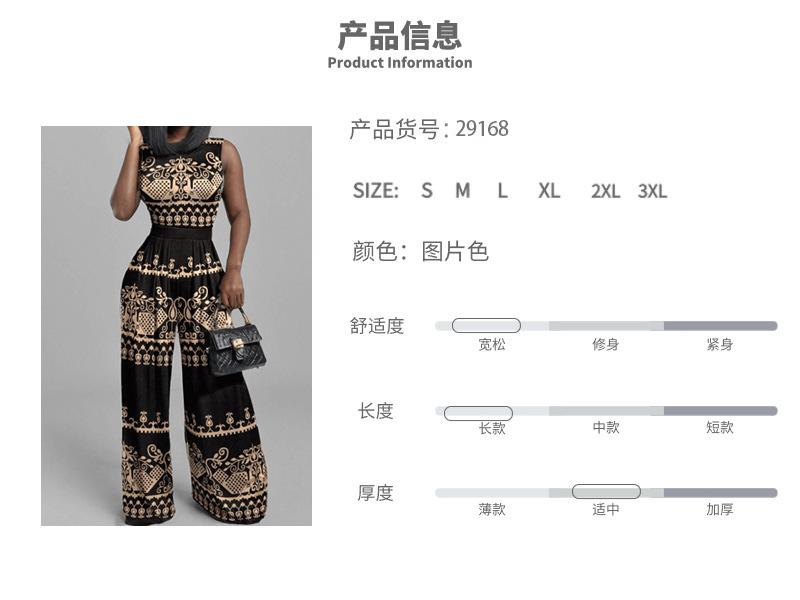 Primavera 2025 Nuevos Pantalones Casuales Transfronterizos Europeos y Americanos Ajustados Estampados Sin Mangas para Mujer