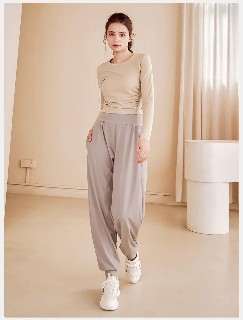 Pantalones deportivos de cintura alta para mujer, holgados, para correr, fitness, entrenamiento profesional de pilates, pantalones de yoga de secado rápido