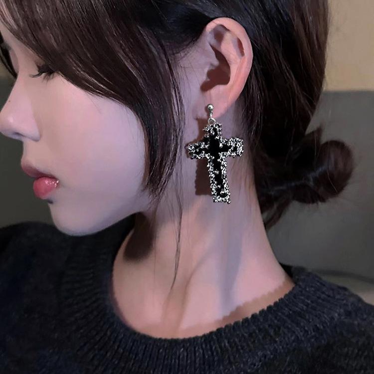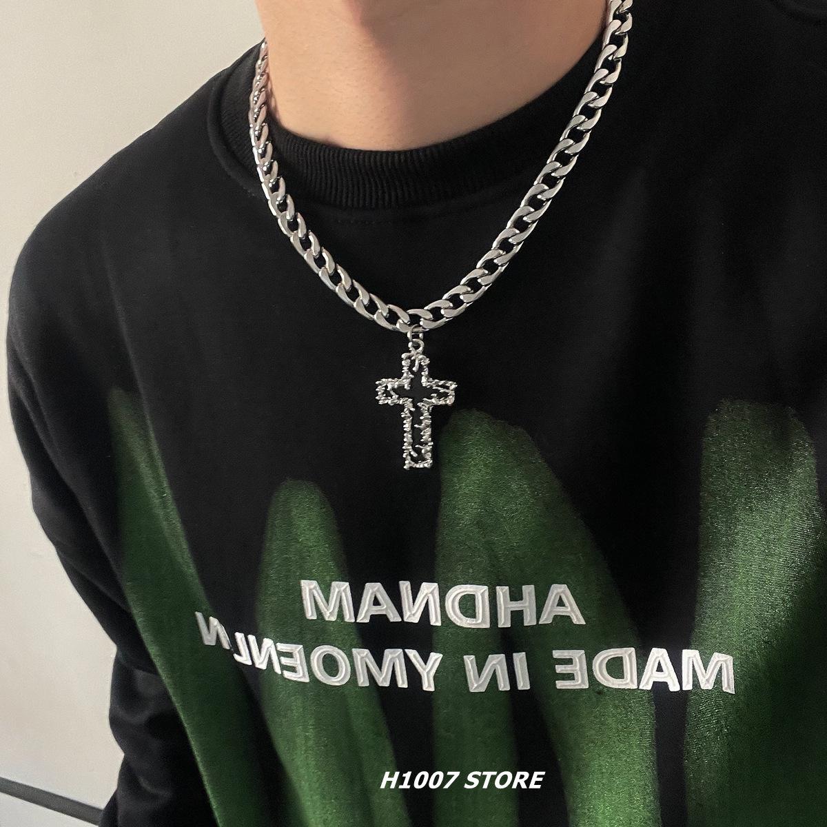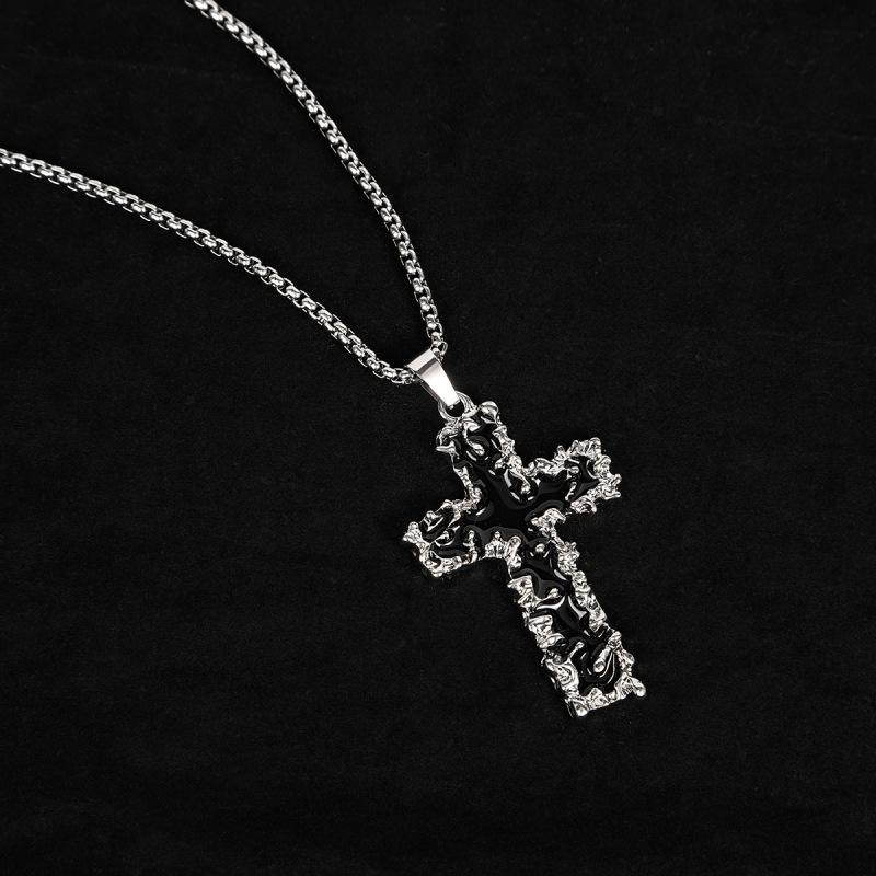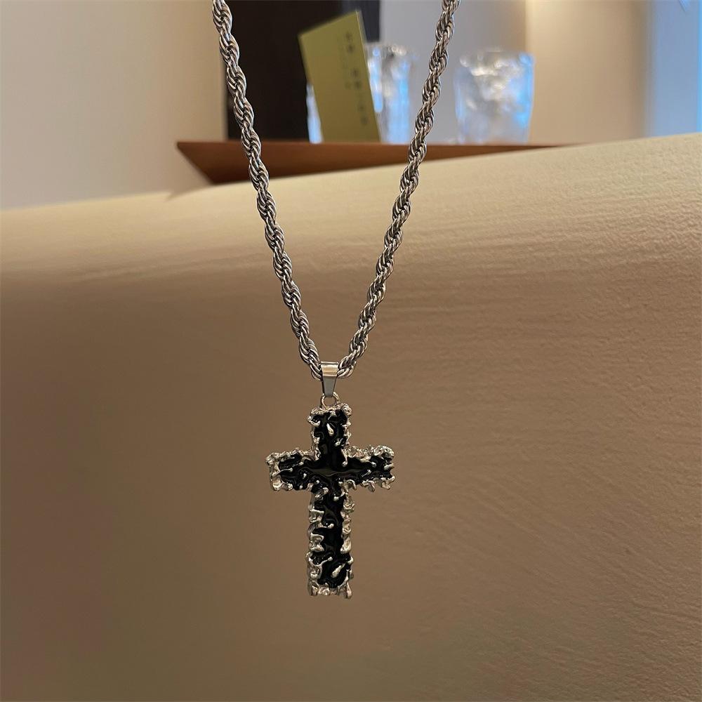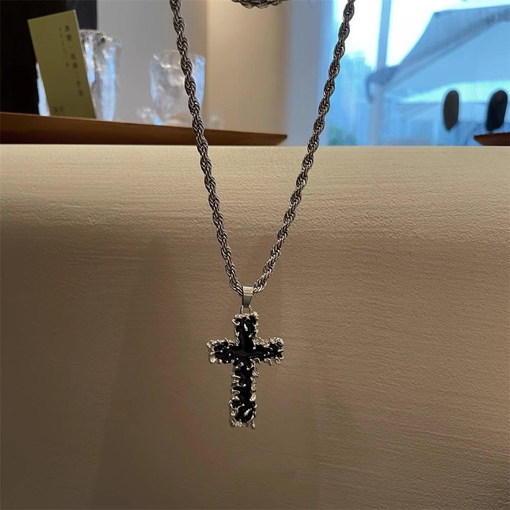 Collar con colgante de cruz de lava negra de hip-hop europeo y americano para hombres y mujeres, personalidad nicho, cadena de clavícula combinable con todo, accesorios para parejas