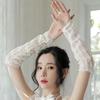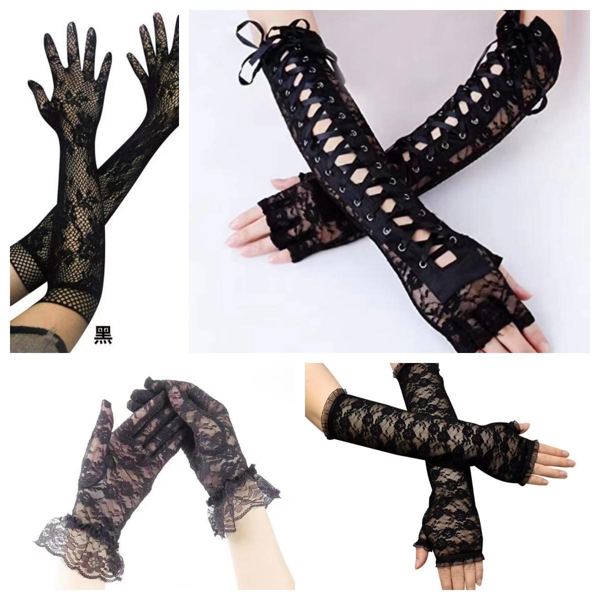 Lencería de Manga de Dedo Jacquard Europea y Americana Sexy Accesorios de Uniforme Tentación Guantes de Encaje de Malla una generación de cabello