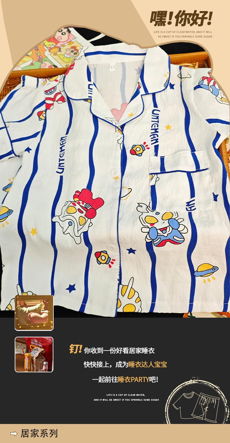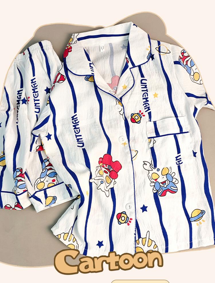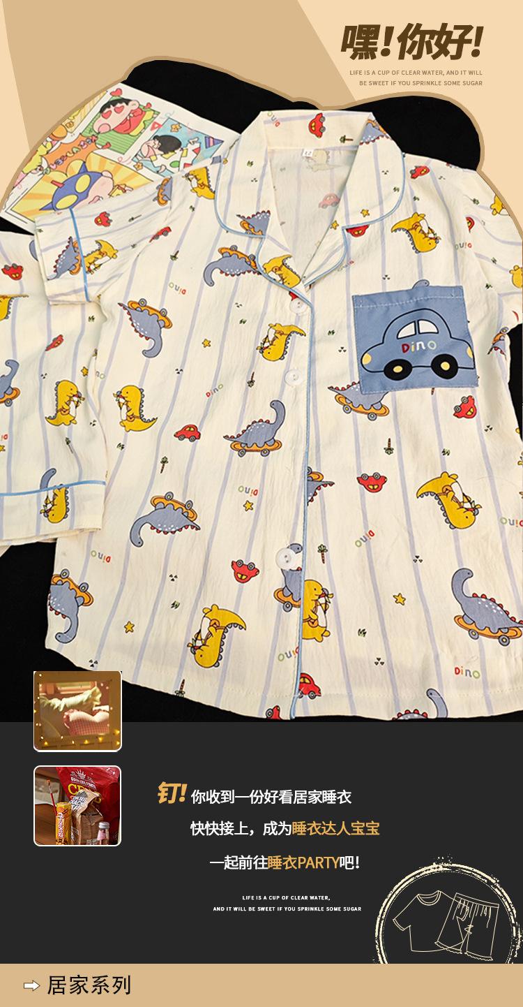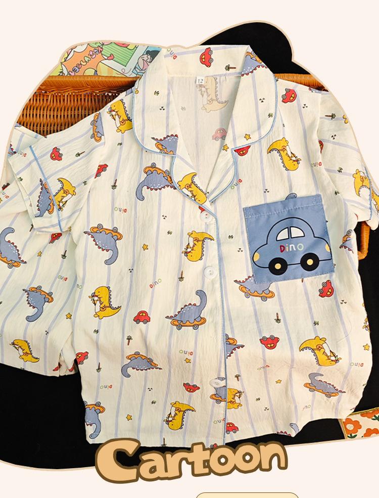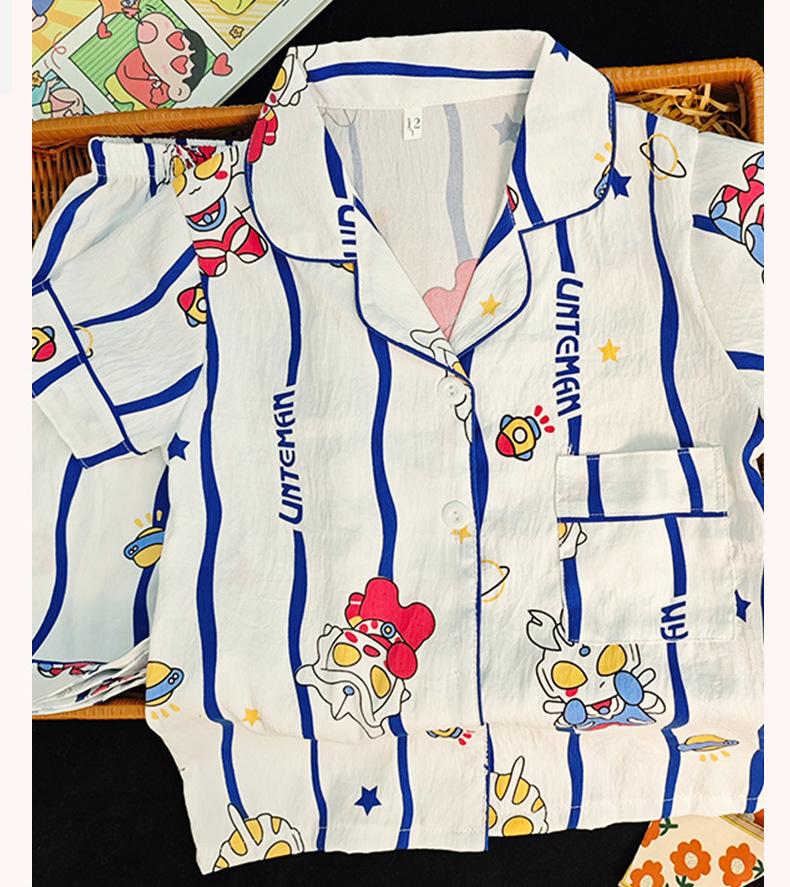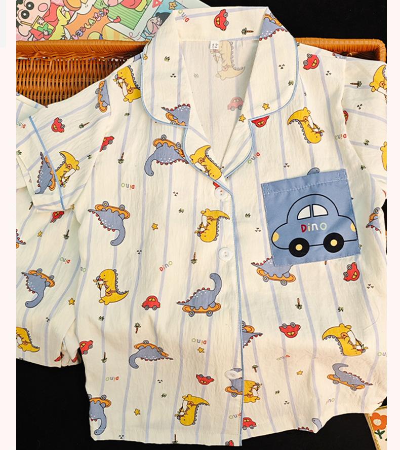 Pijama de Verano Algodón Nube Conjunto de Tres Piezas Manga Corta Pijama Infantil Ropa de Casa para Bebé Traje Ropa Acondicionada para Niños y Niñas