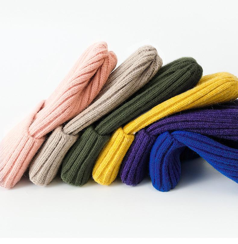 Nuevo gorro de lana de color caramelo estilo coreano de otoño e invierno, gorro de punto para mujer, gorro cálido para estudiantes, resistente al frío, para exteriores, para niños, disponible en stock.