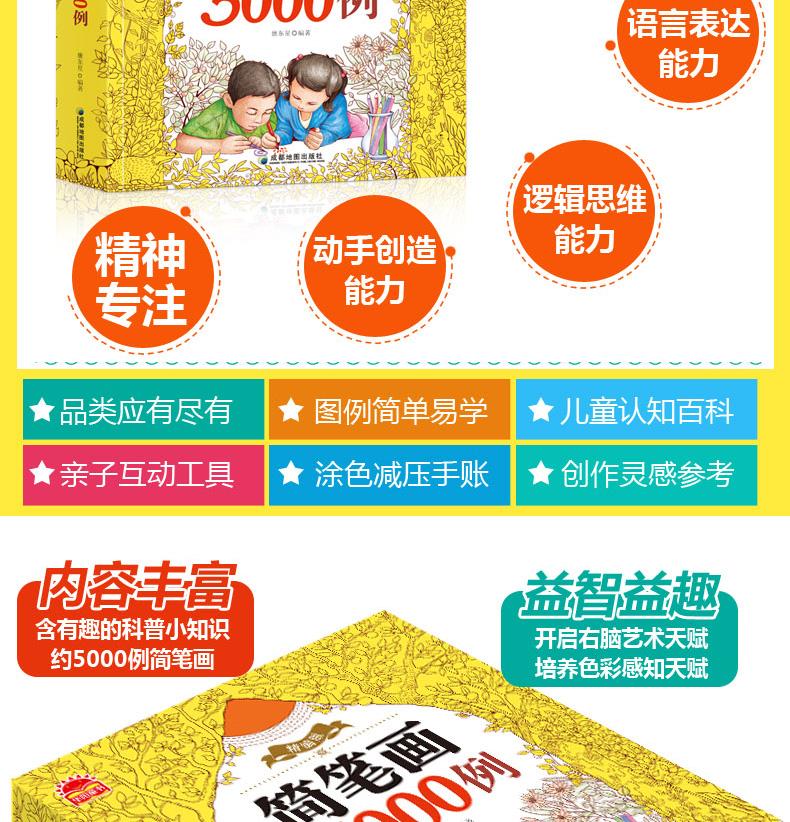 Una colección completa de 5000 trazos simples para niños, materiales de enseñanza de arte para niños preescolares, libros de dibujo y colorear para manos pequeñas