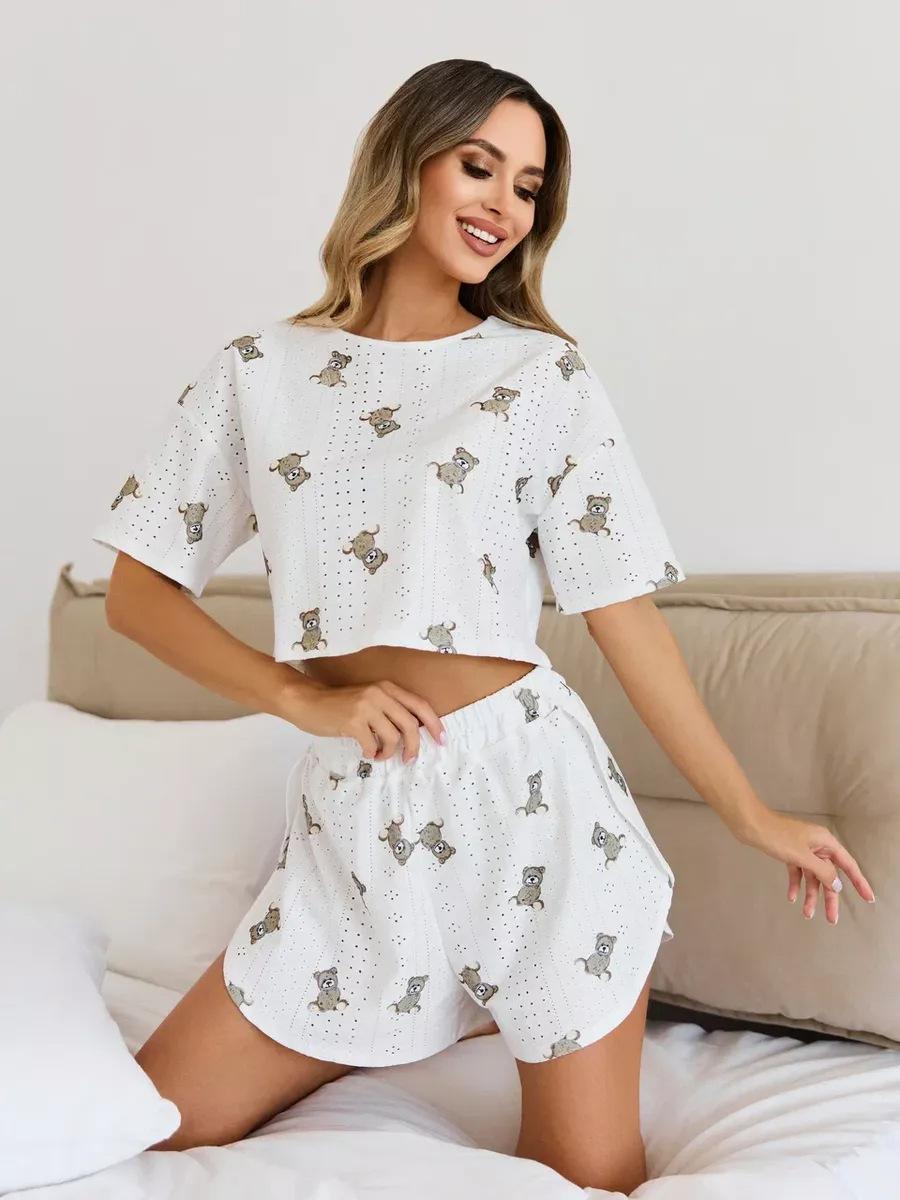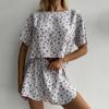 2025 Transfronterizo Europeo y Americano para Mujer Manga Corta Shorts Jacquard Estampado Verano Moda Dos Piezas Pijama Ropa para el Hogar Traje