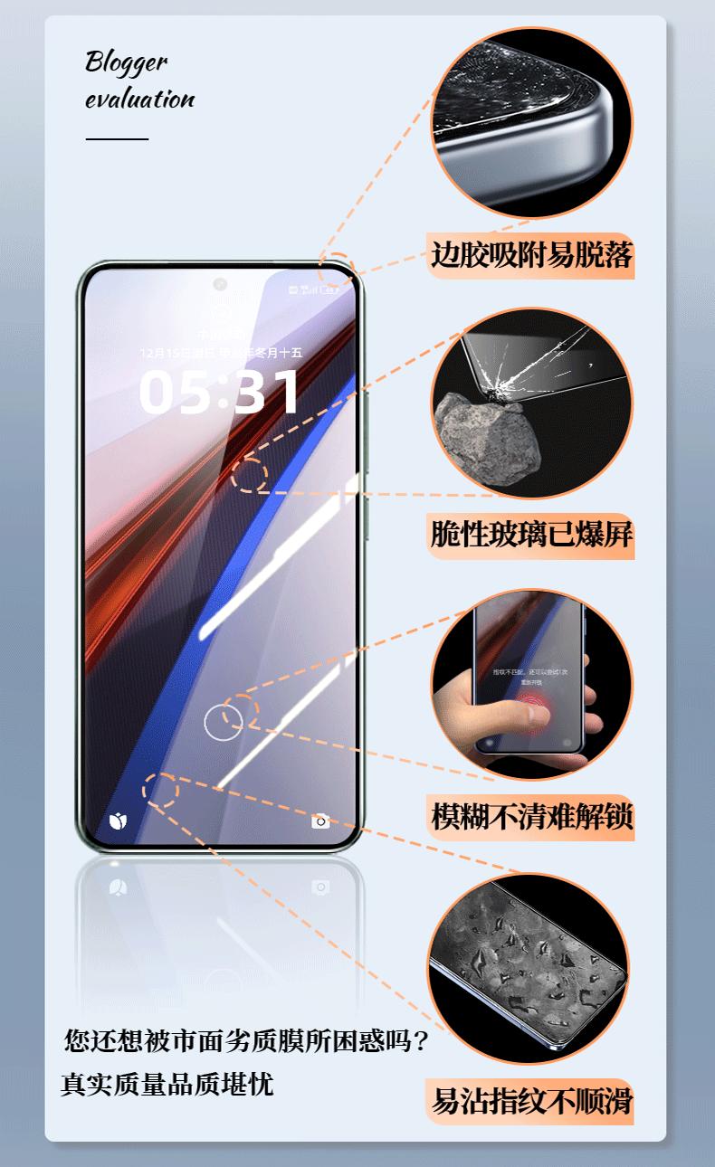 Hd, Explosion-proof, Dustproof, Anti-fingerprint, Anti-fall, Full screen, Anti-peeping, Anti-blue light, Anti-...