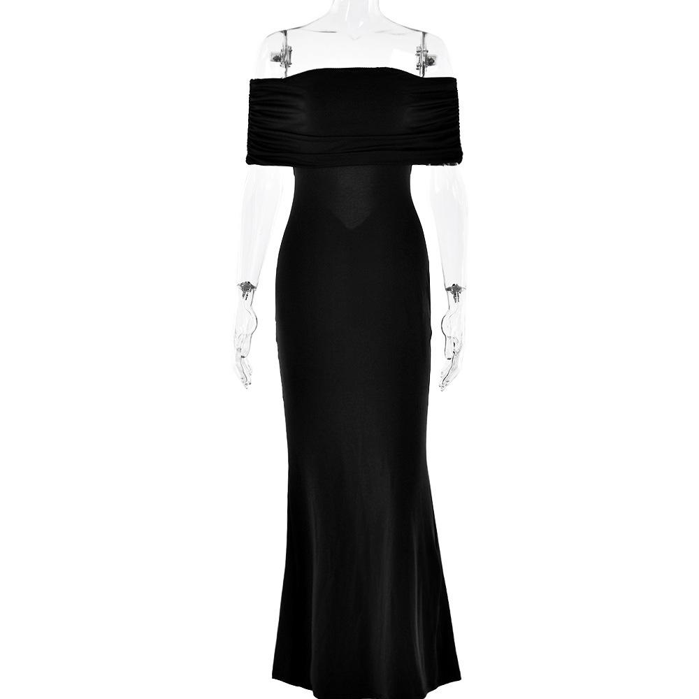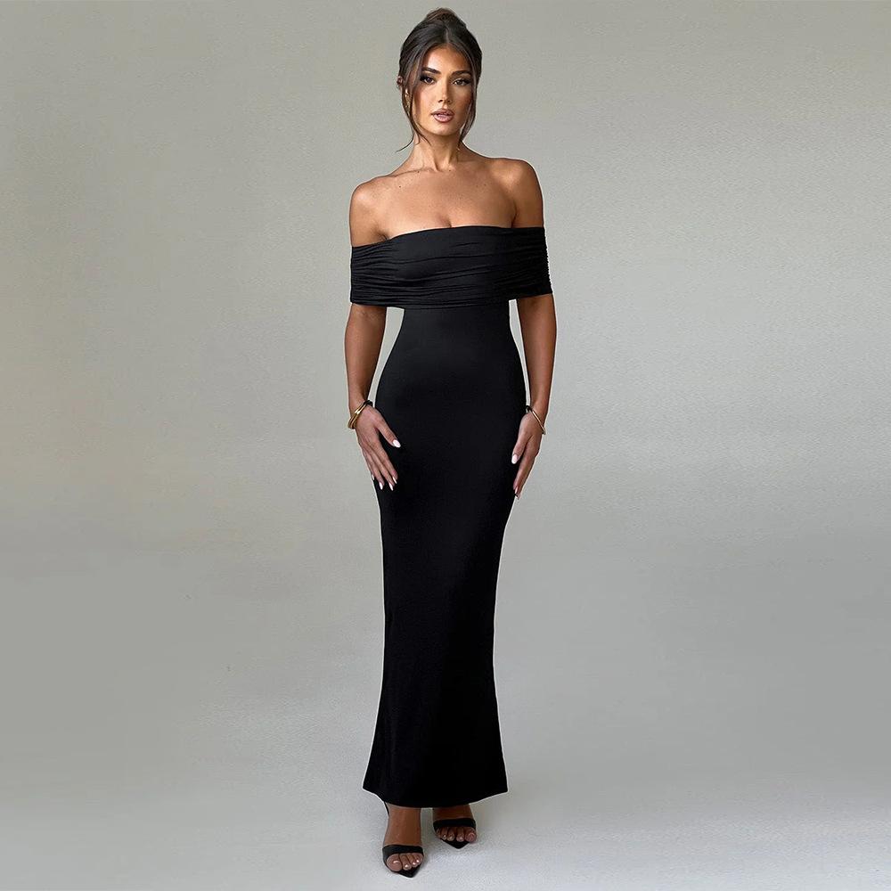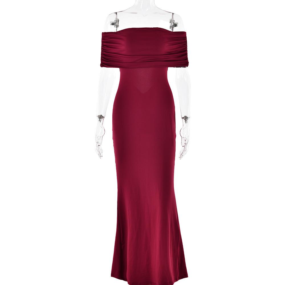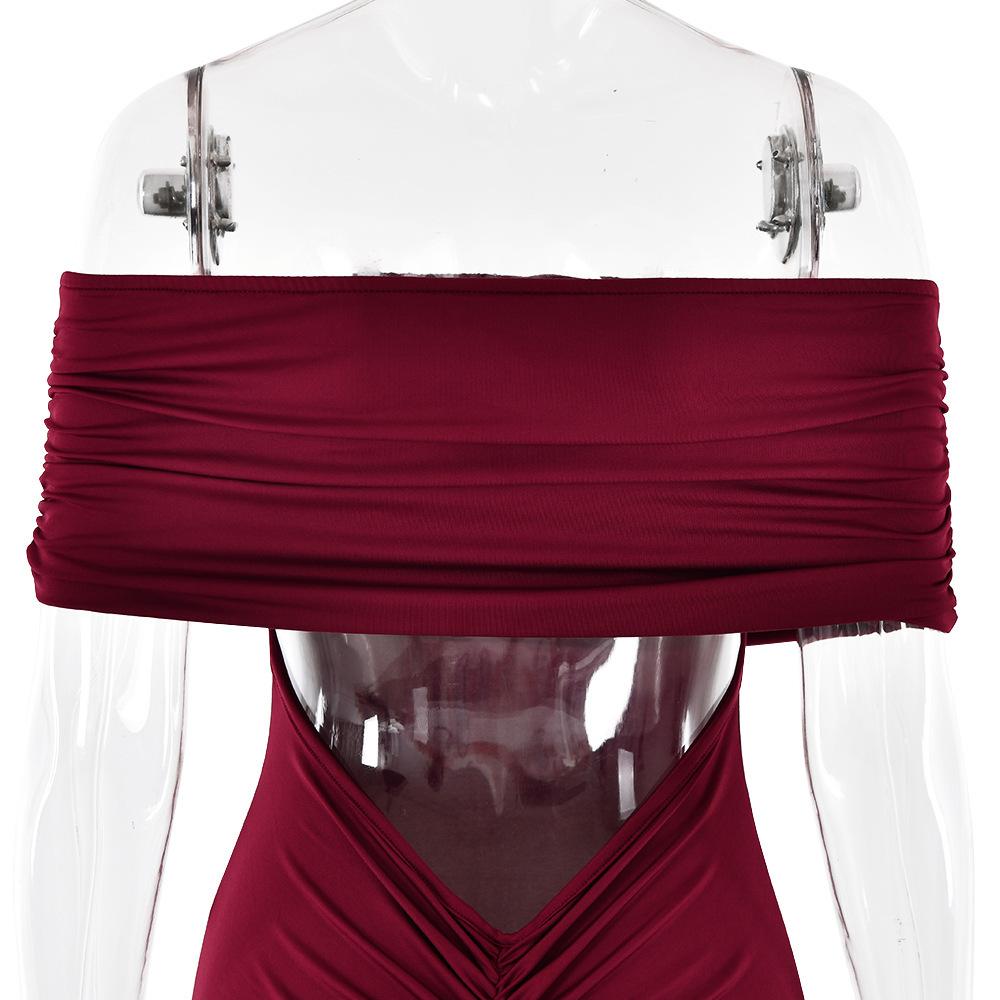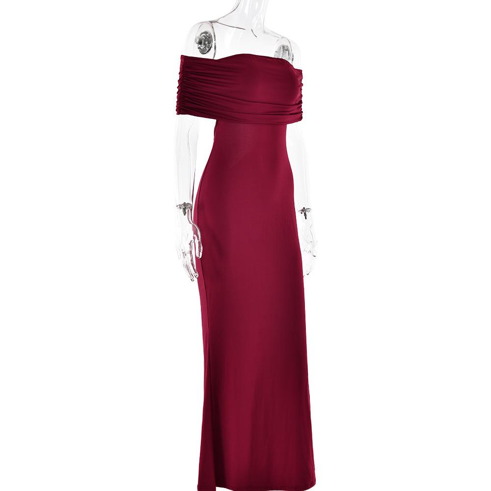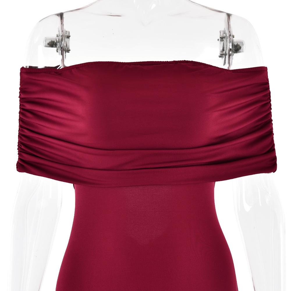 Vestido de Verano Nuevo Europeo y Americano Transfronterizo de Comercio Exterior de un Hombro Descubierto Plisado de Color Sólido Sexy Ajustado