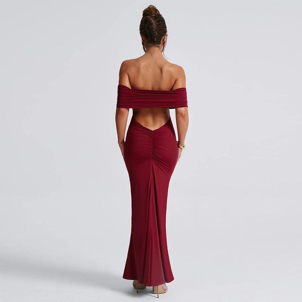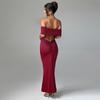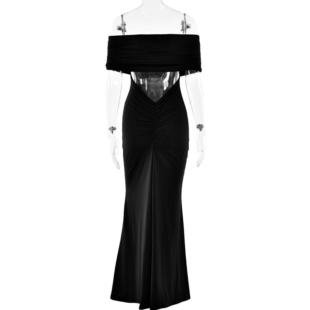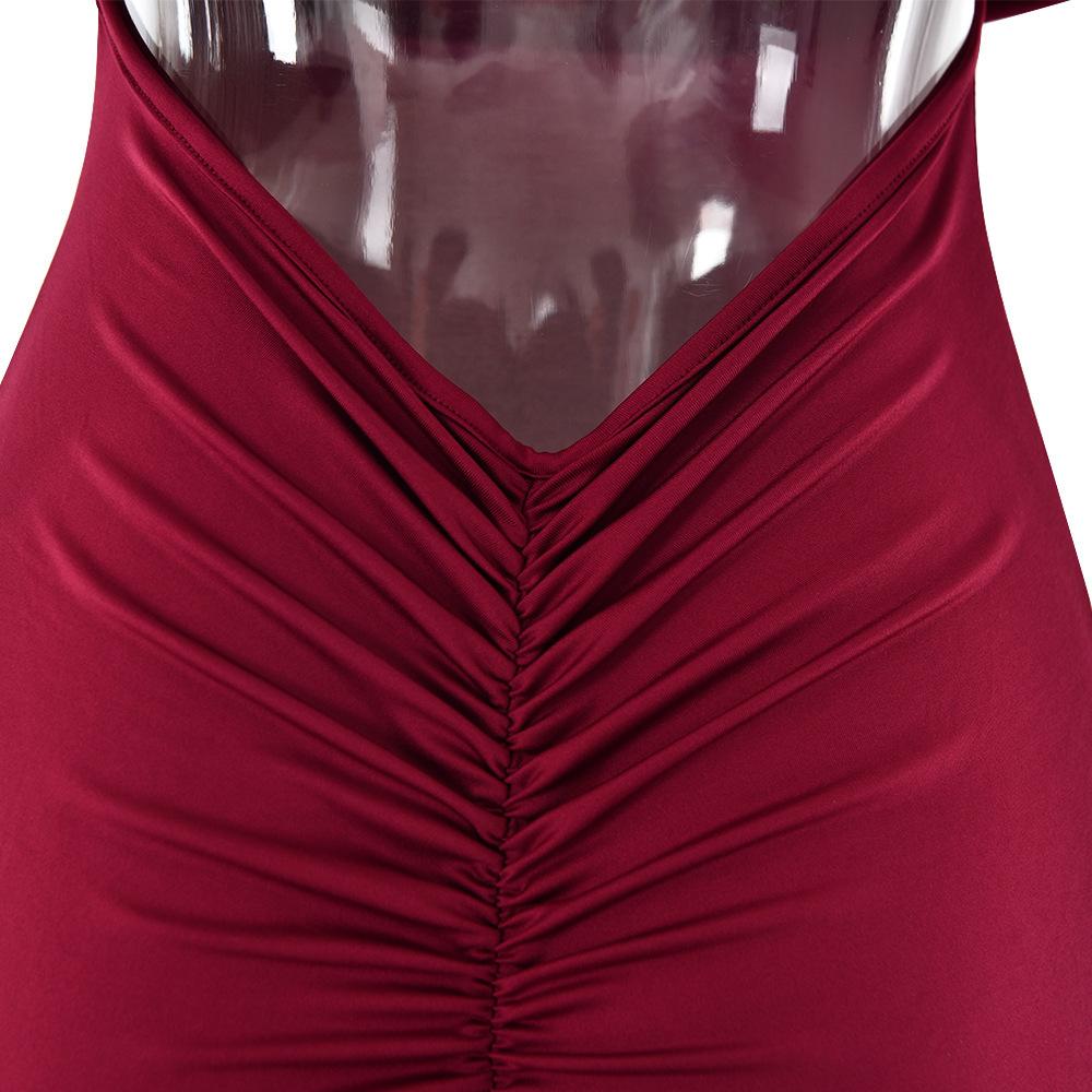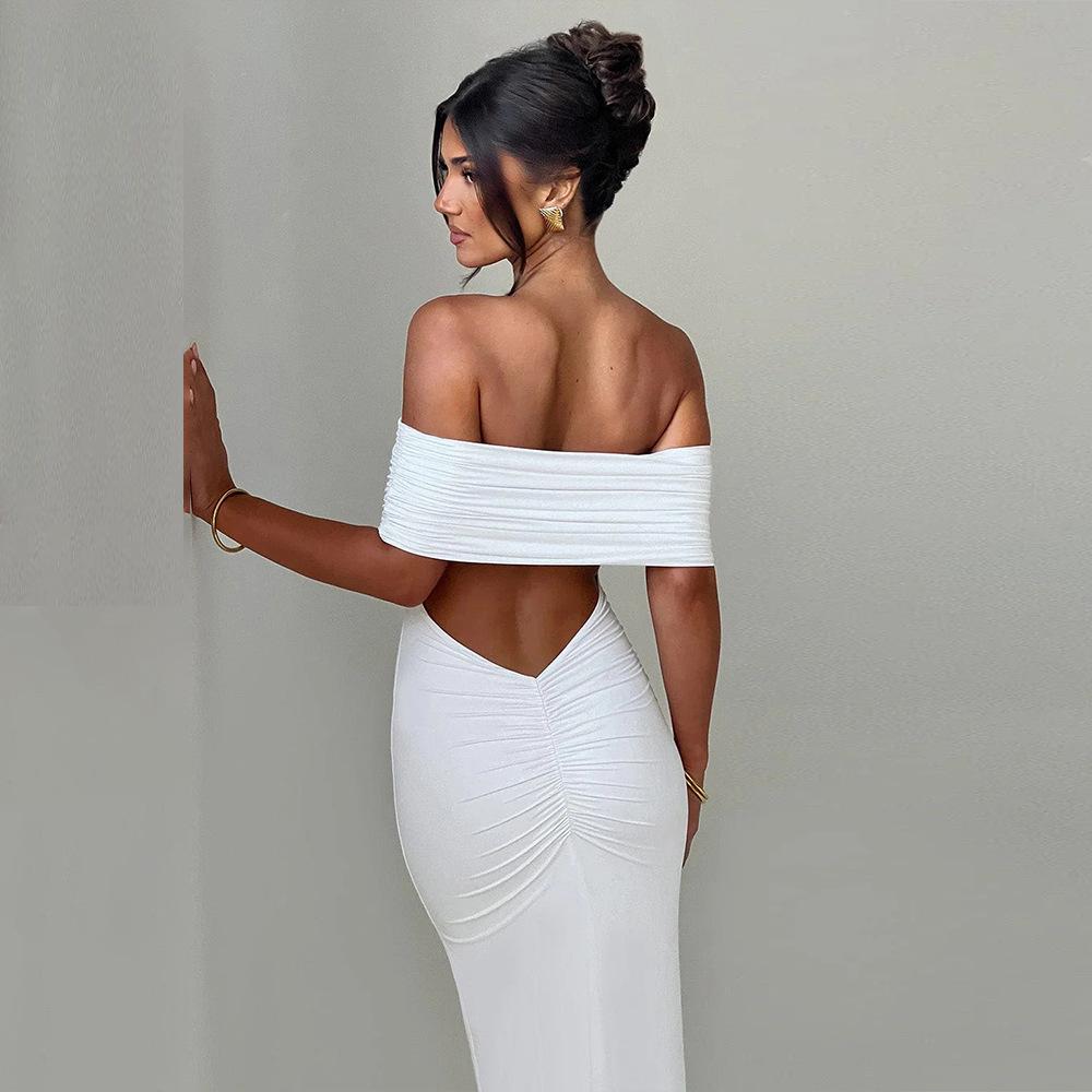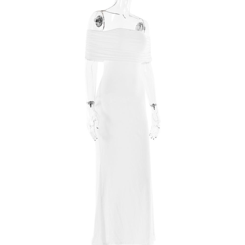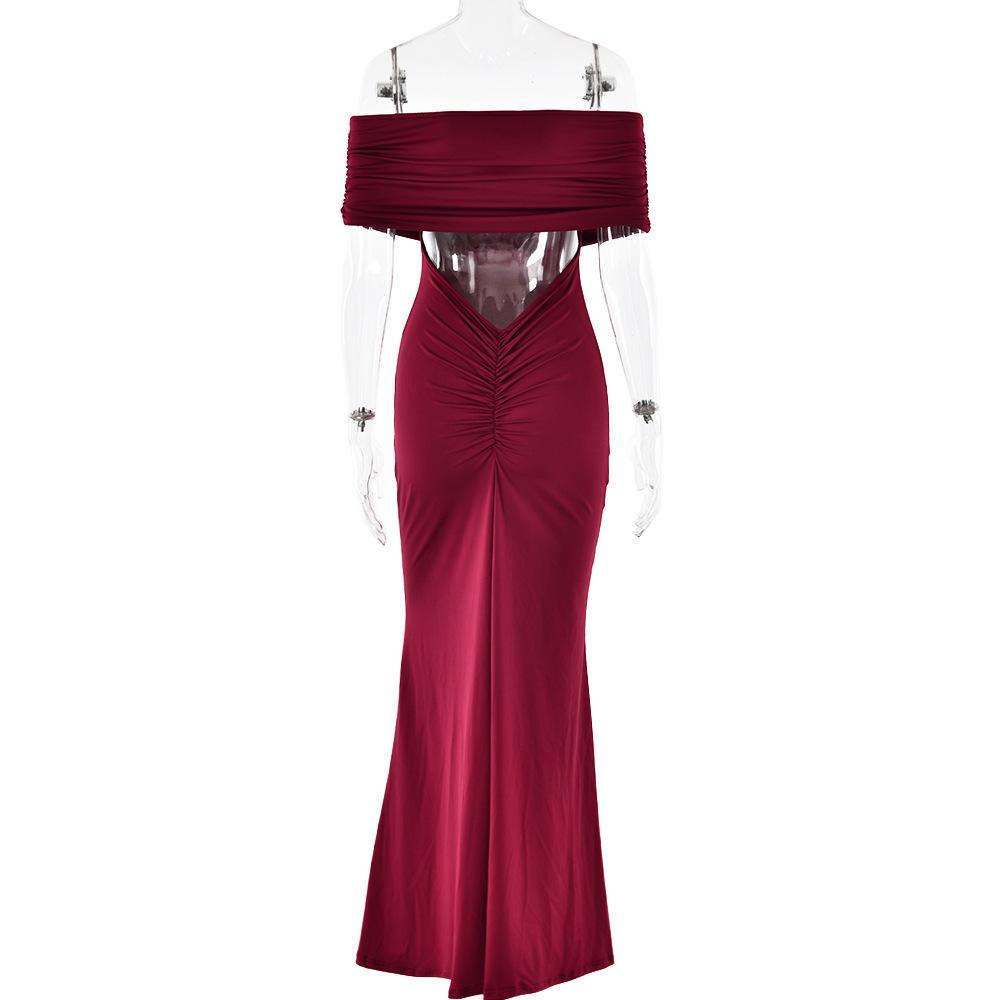 Vestido de Verano Nuevo Europeo y Americano Transfronterizo de Comercio Exterior de un Hombro Descubierto Plisado de Color Sólido Sexy Ajustado