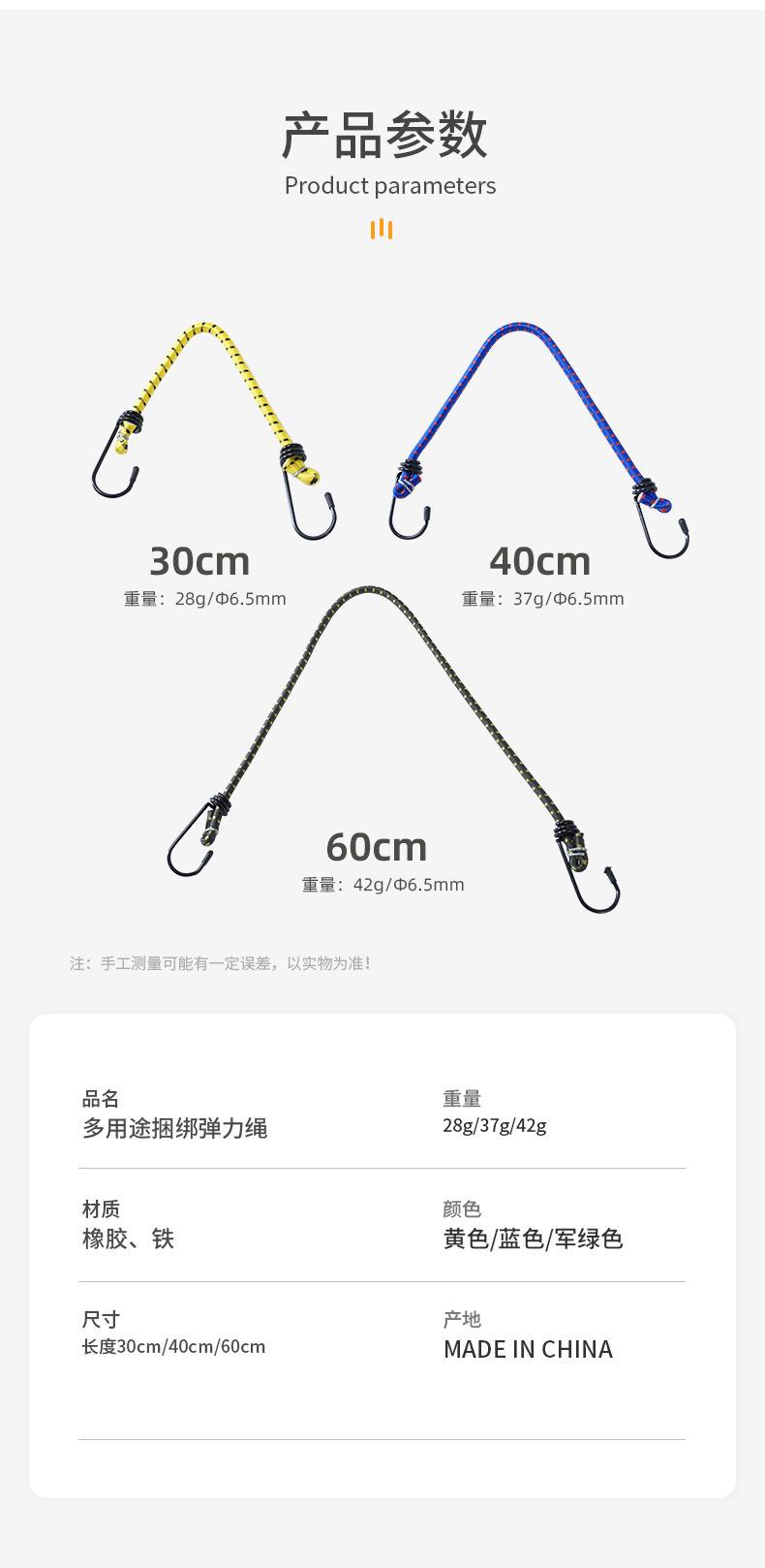 Yellow-30cm binding elastic rope, Blue-40cm binding elastic rope, Military green-60cm binding elastic rope