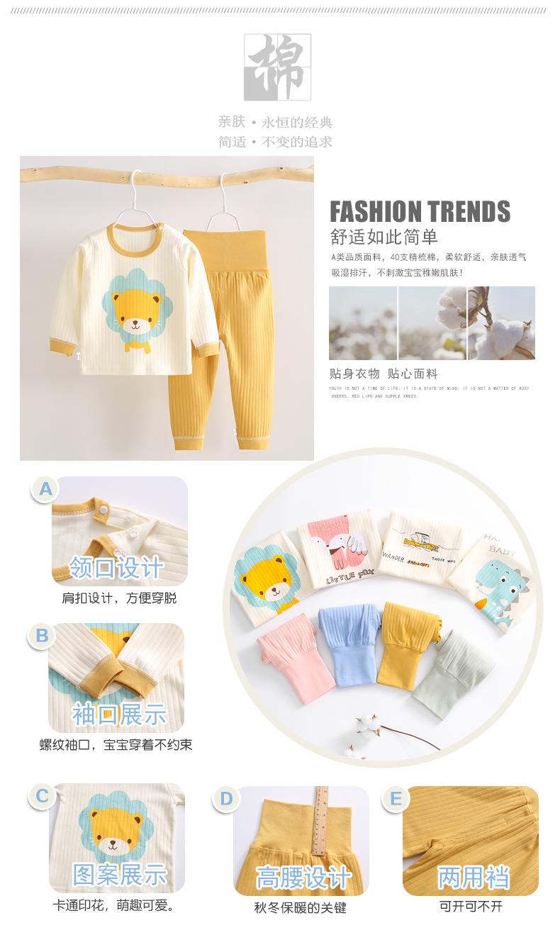 Ropa de otoño para niños 2024 pantalones de otoño algodón otoño e invierno nuevo traje de ropa interior para niños y niñas pijama de cintura alta para bebé al por mayor