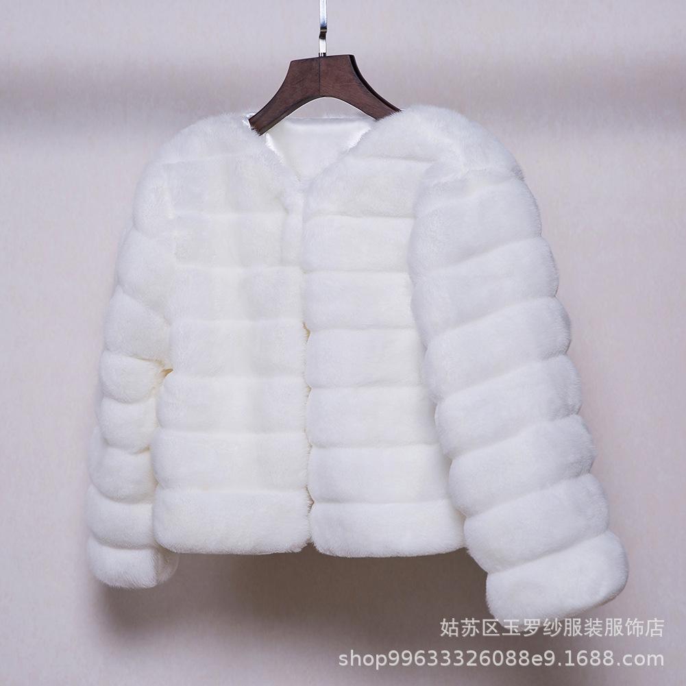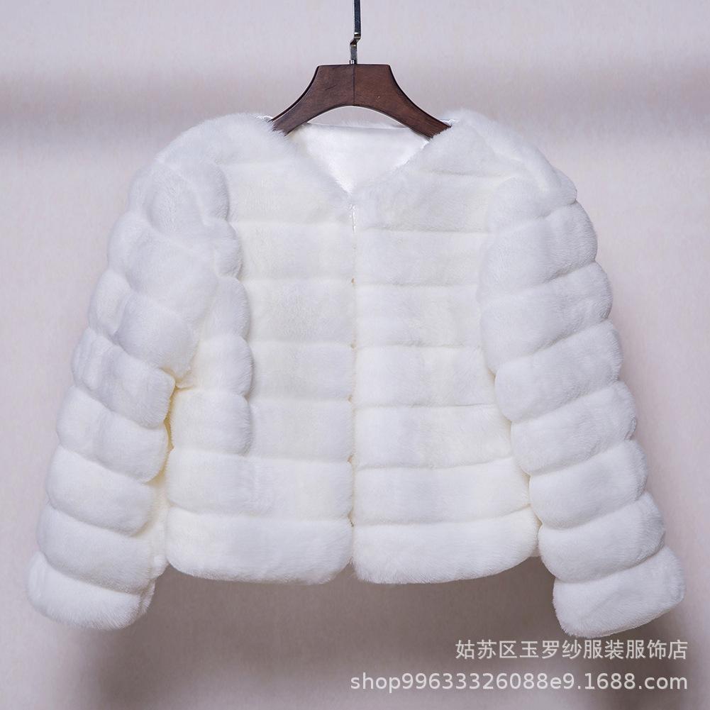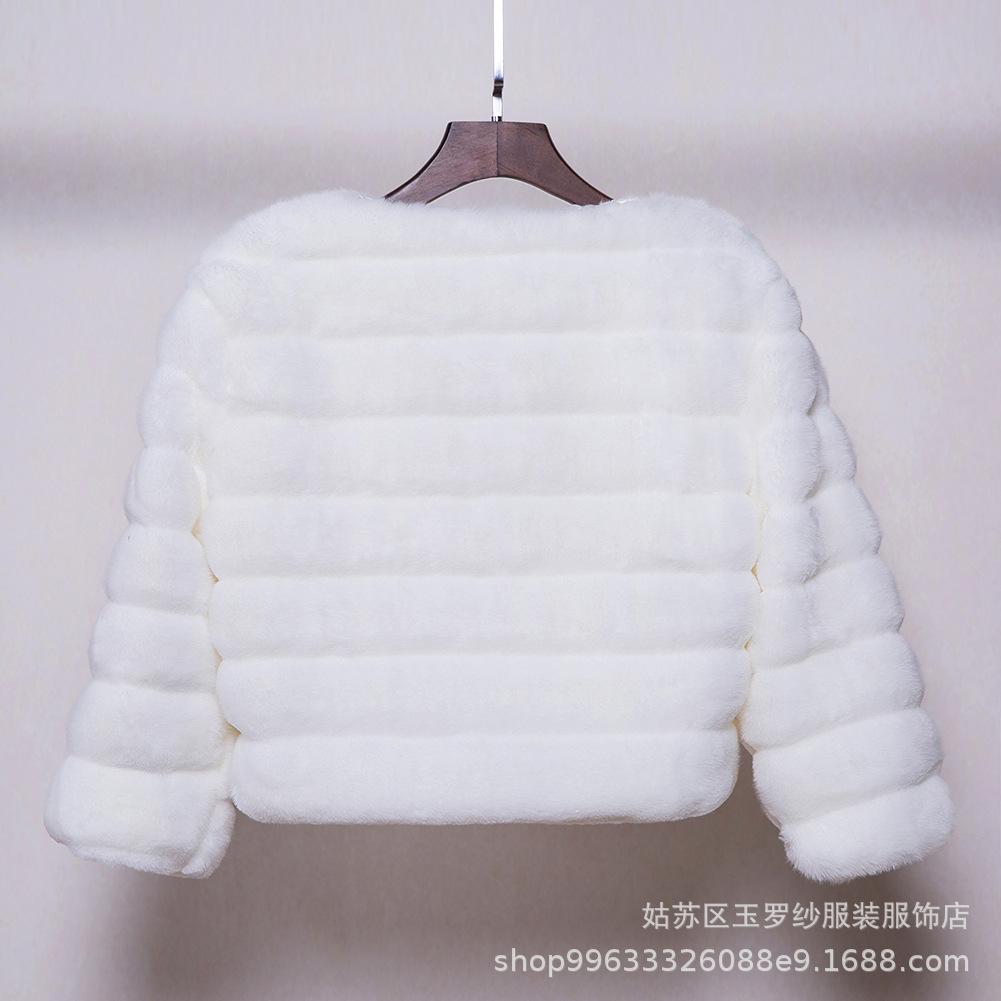Chal nupcial europeo y americano chal de felpa otoño e invierno forrado de vellón engrosado manga larga cuello alto abrigo pequeño chal de imitación de piel de conejo de alta gama