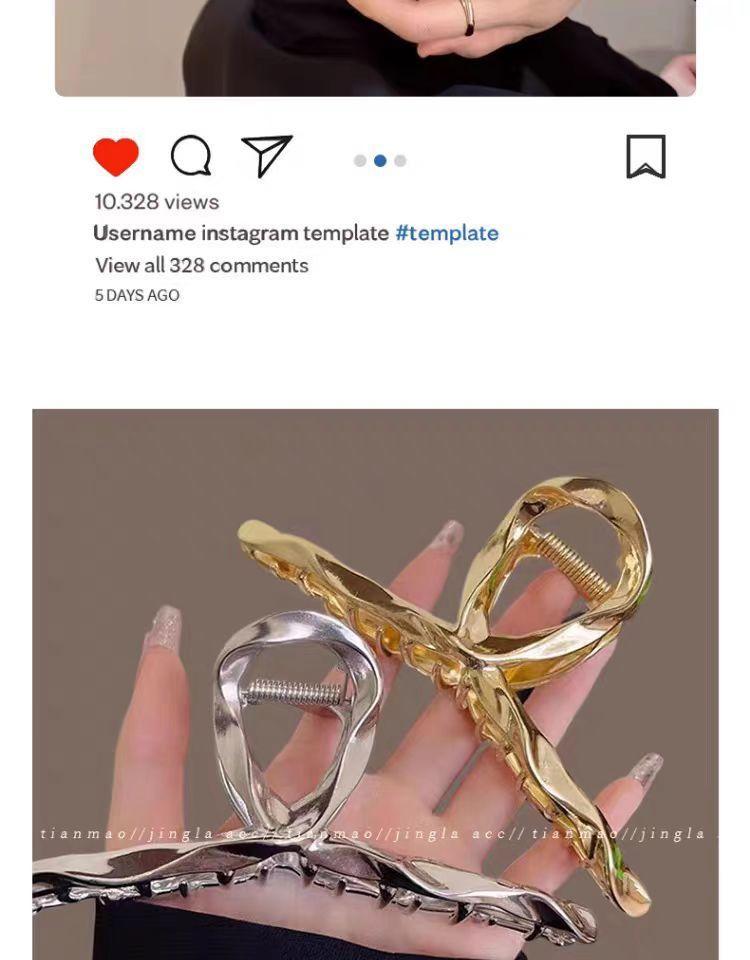 Pinza Elegante de Liquidación Cruz Grande de Metal 2024 Pinza de Tiburón para Mujer Volumen de Cabello Nuca Nicho Personalidad Horquilla