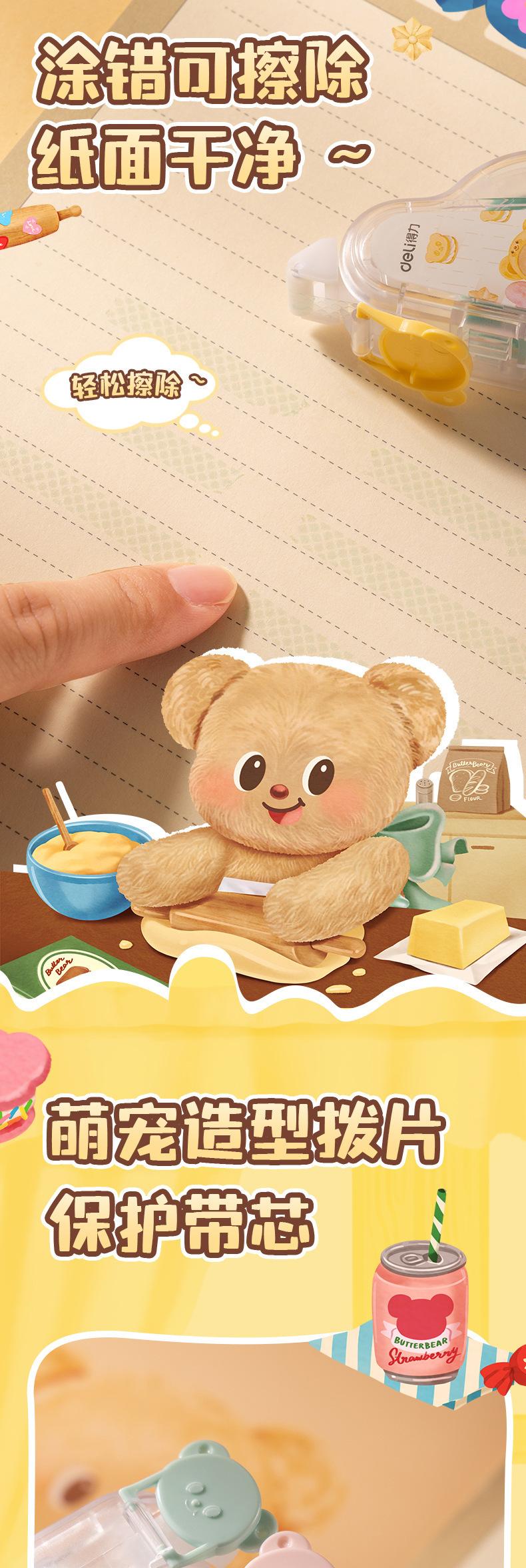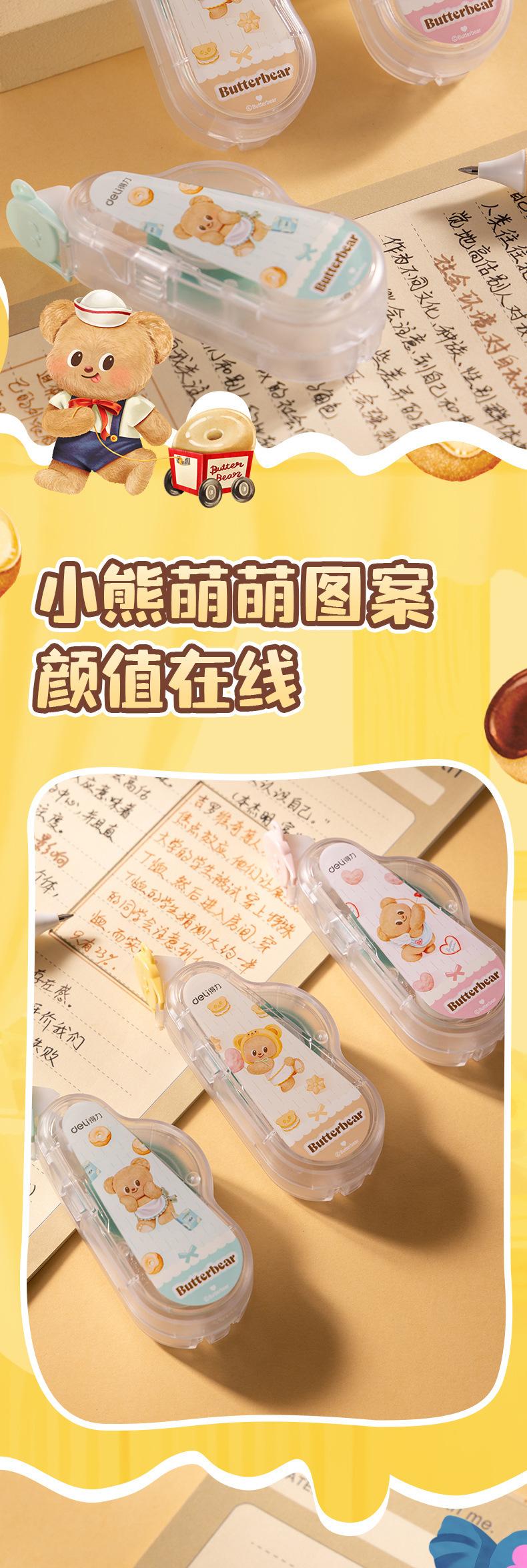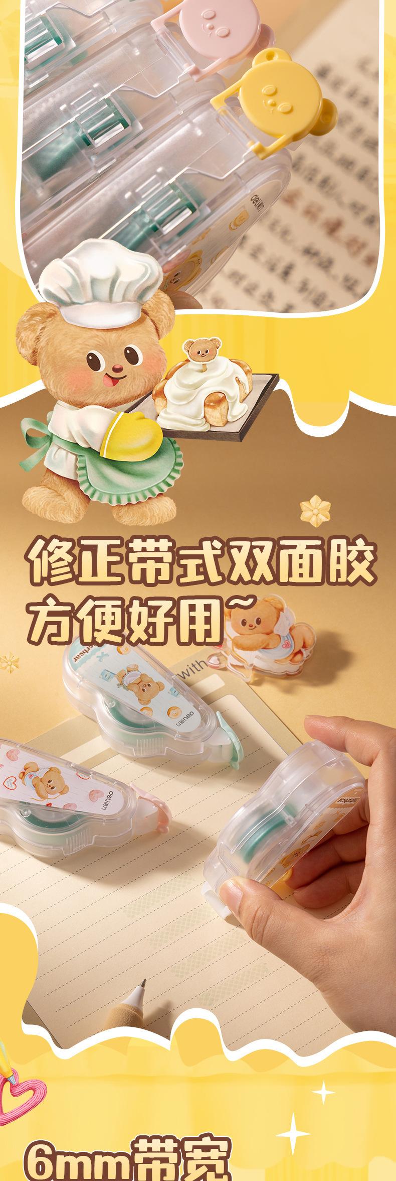 Deli Butter Bear Pegamento de Puntos Dos en Uno Tipo Cinta Correctora con Núcleo Reemplazable Cinta Adhesiva de Doble Cara en Forma de Puntos para Estudiantes de Primaria
