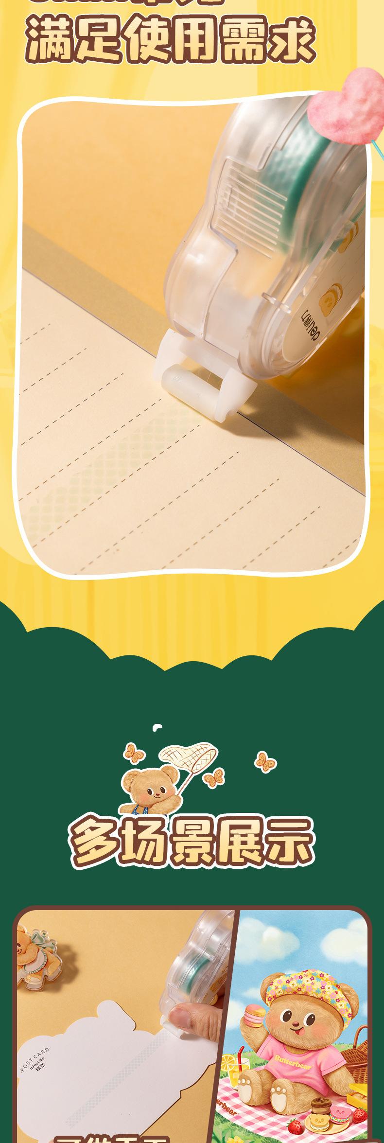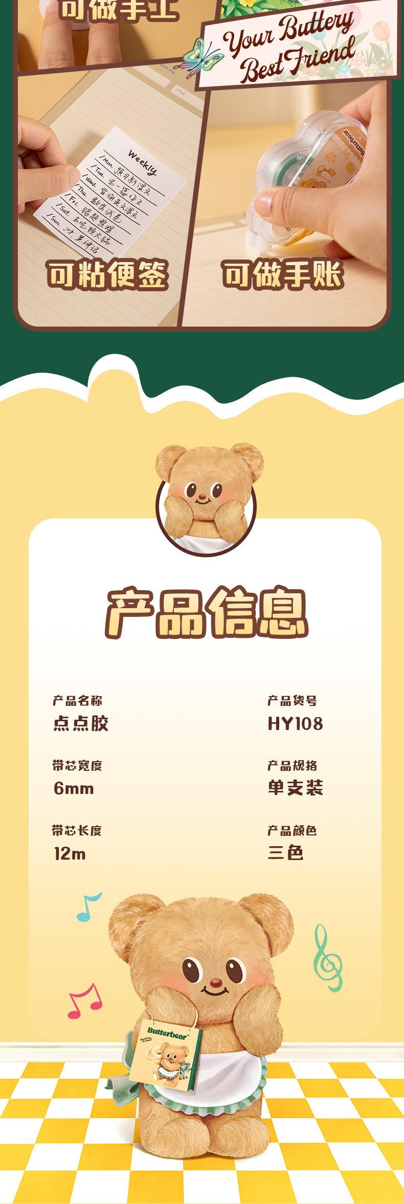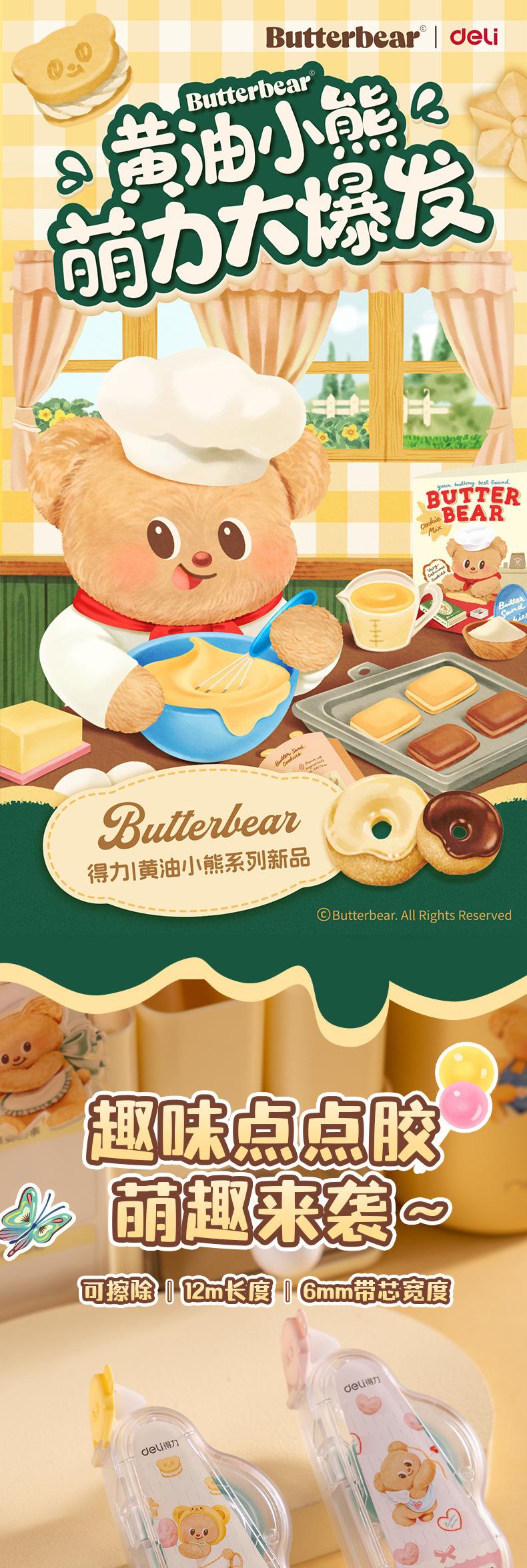 Deli Butter Bear Pegamento de Puntos Dos en Uno Tipo Cinta Correctora con Núcleo Reemplazable Cinta Adhesiva de Doble Cara en Forma de Puntos para Estudiantes de Primaria