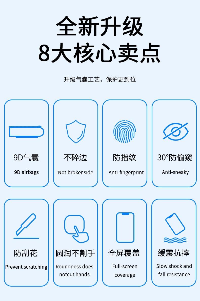 16 Película templada aplicable para iPhone 13, 14 Pro, película anti-peep, 12, pantalla completa, 11 Pro, película para teléfono móvil, Apple 15, película templada