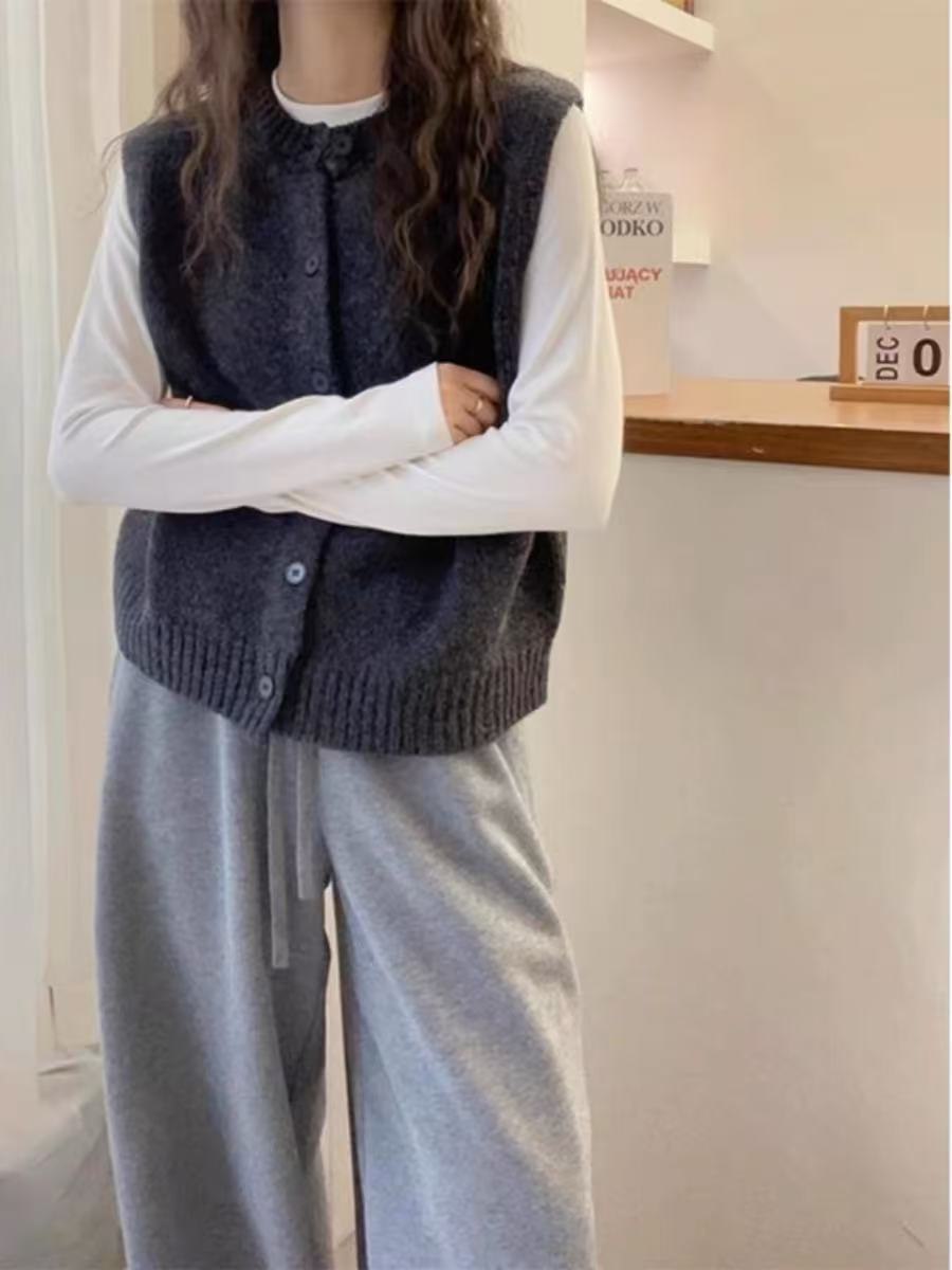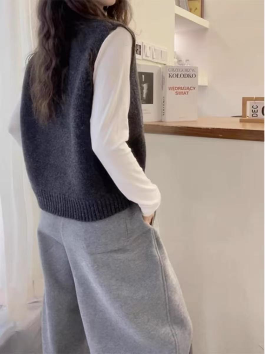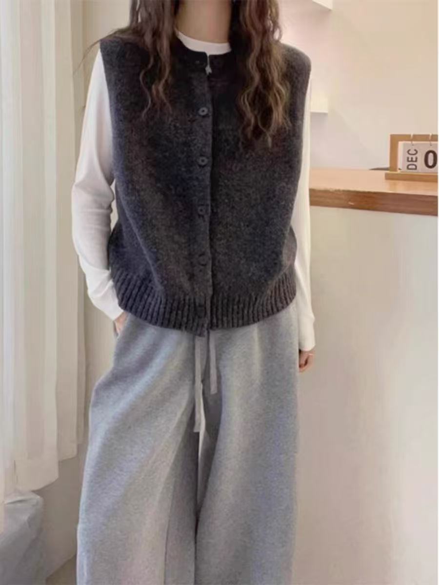 Comercio Exterior Nuevo Estilo Simple Combinable Holgado Apilado Chaleco de Punto para Mujer Top Básico de Punto sin Mangas de Color Sólido para Mujer