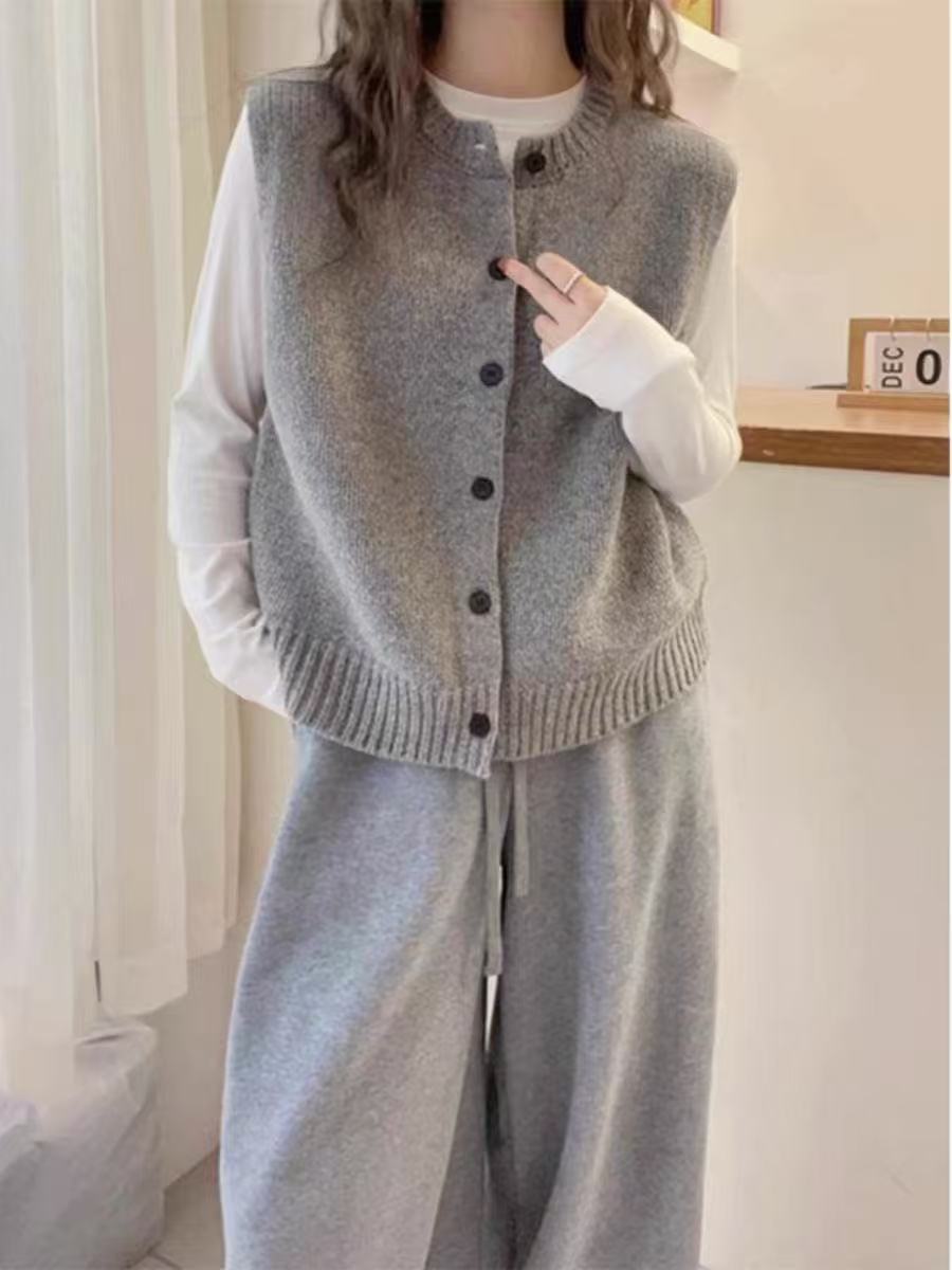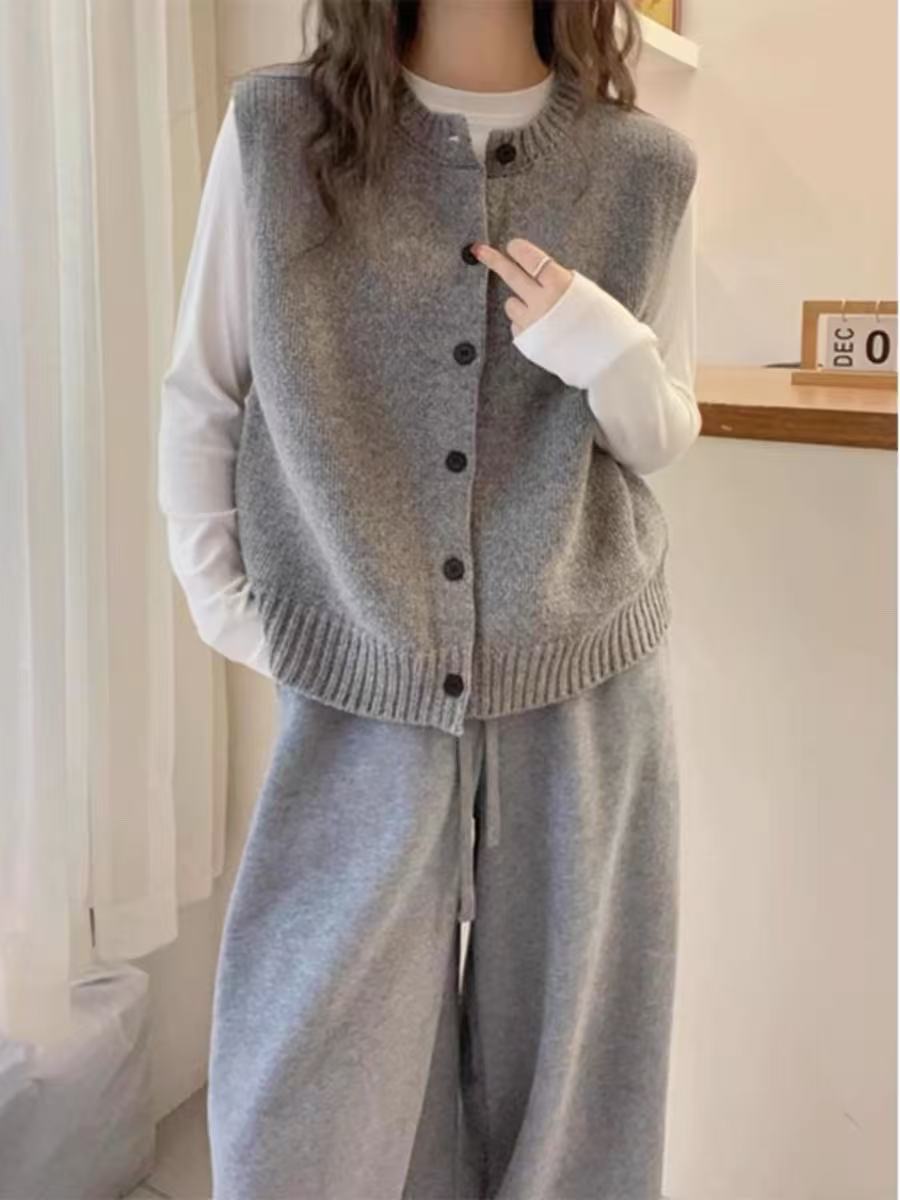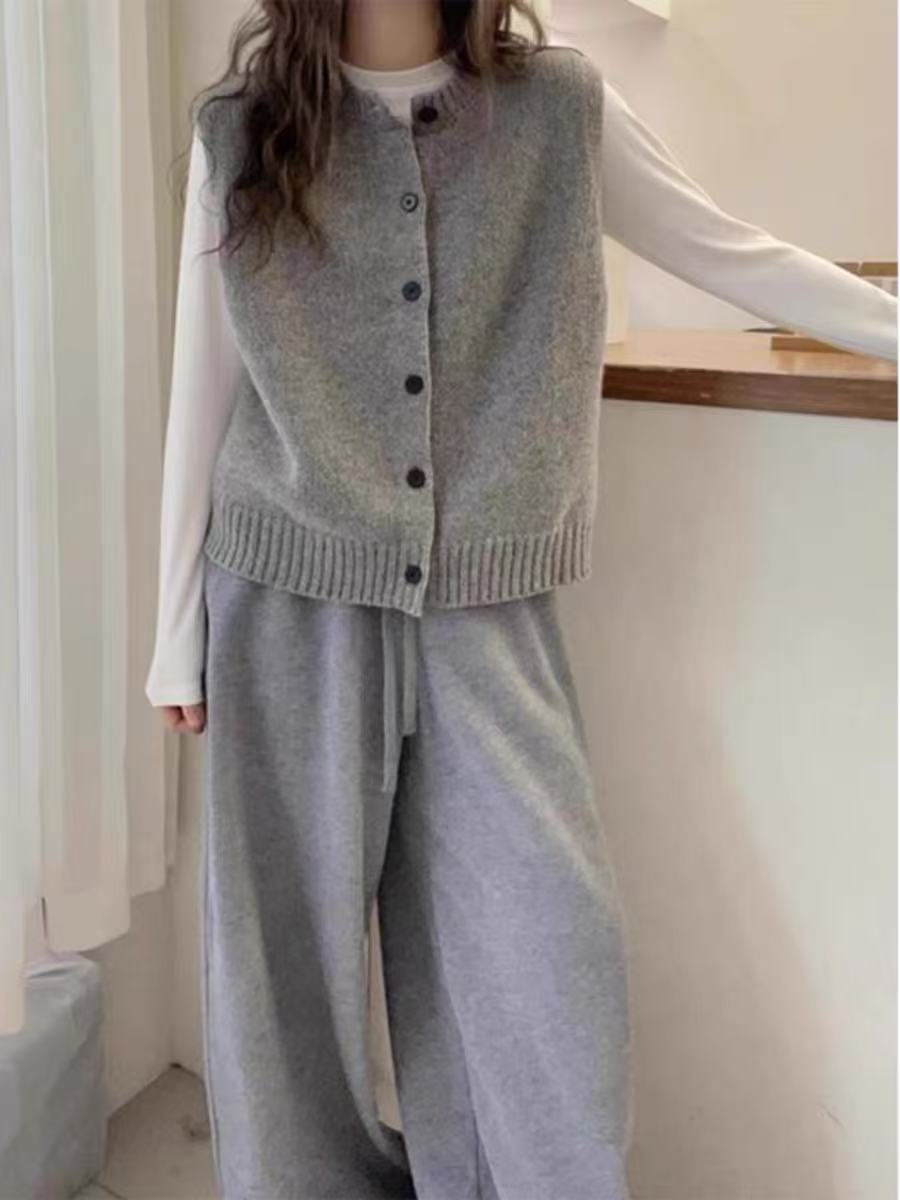 Comercio Exterior Nuevo Estilo Simple Combinable Holgado Apilado Chaleco de Punto para Mujer Top Básico de Punto sin Mangas de Color Sólido para Mujer