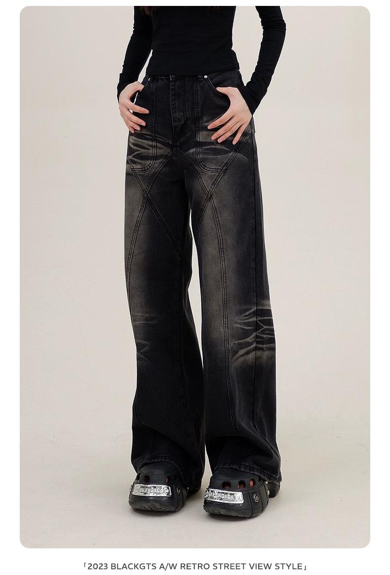 GTS Estilo Oscuro Jeans Holgados Corrugados de Moda 2024 Marca de Moda Urbana Americana Jeans Rectos