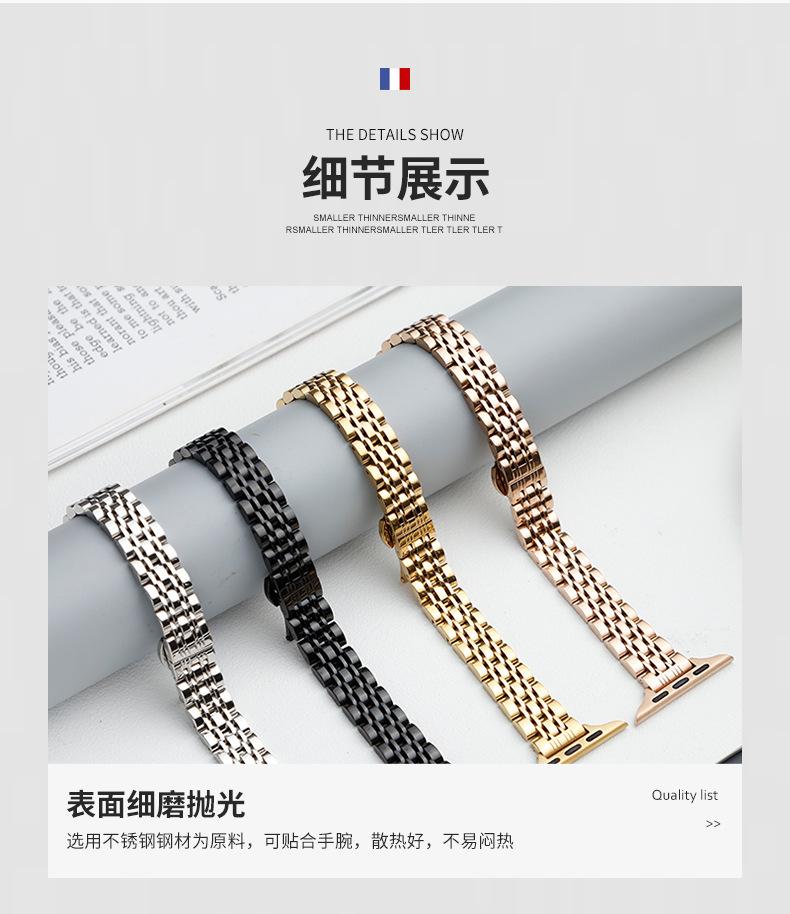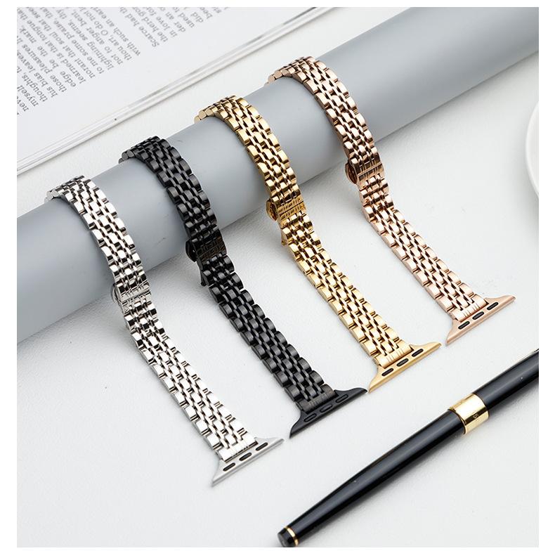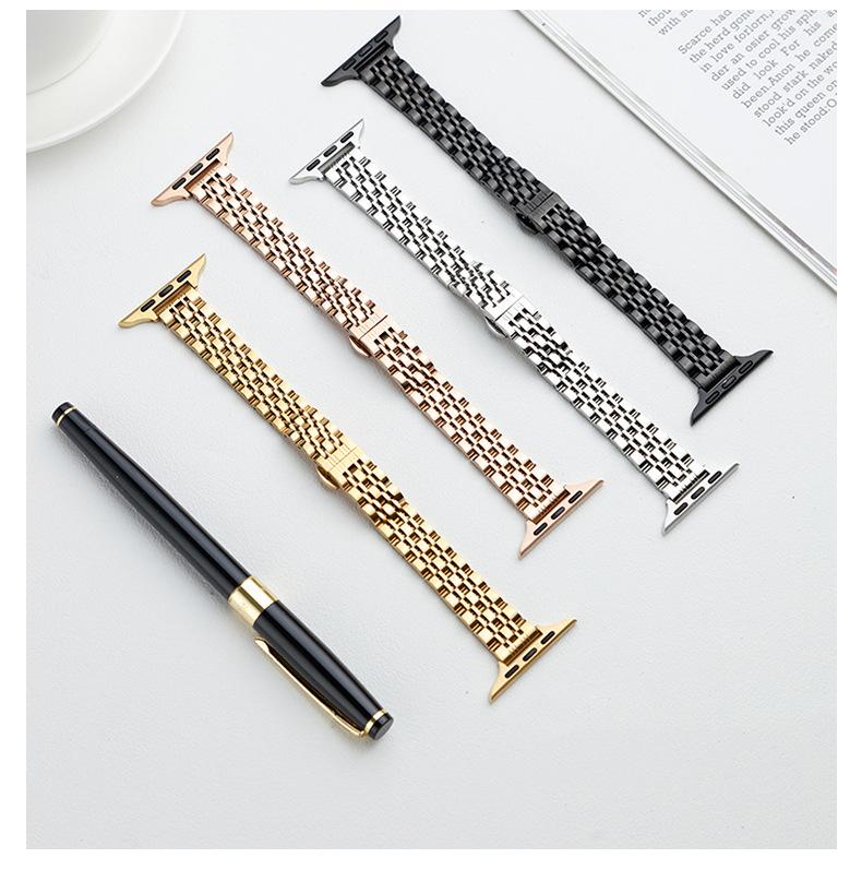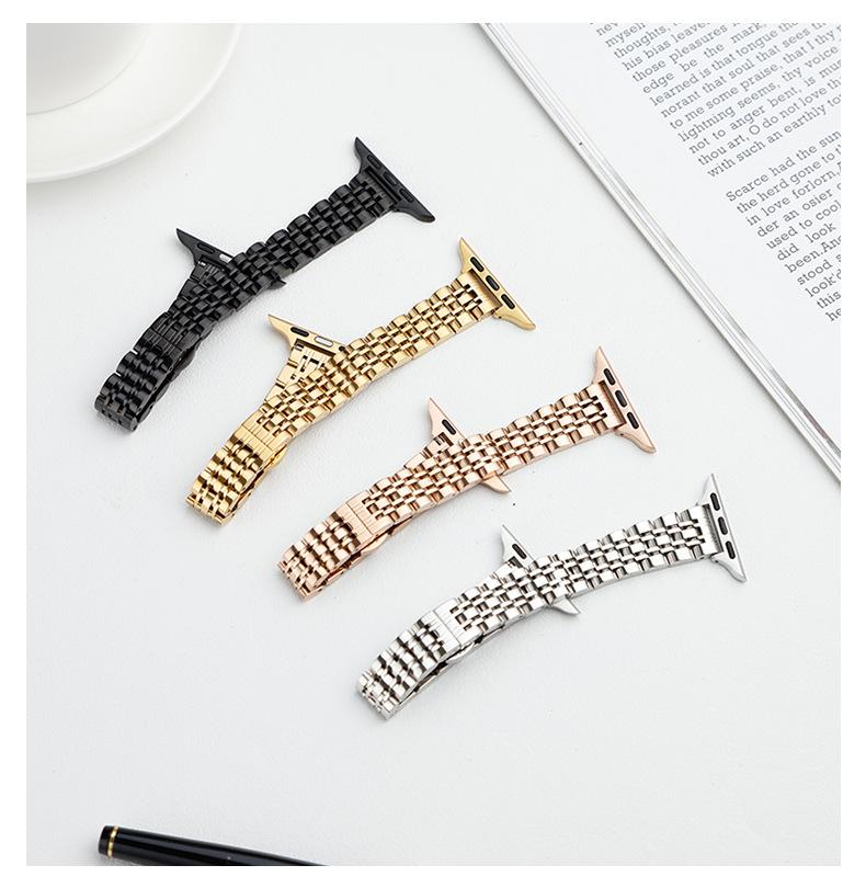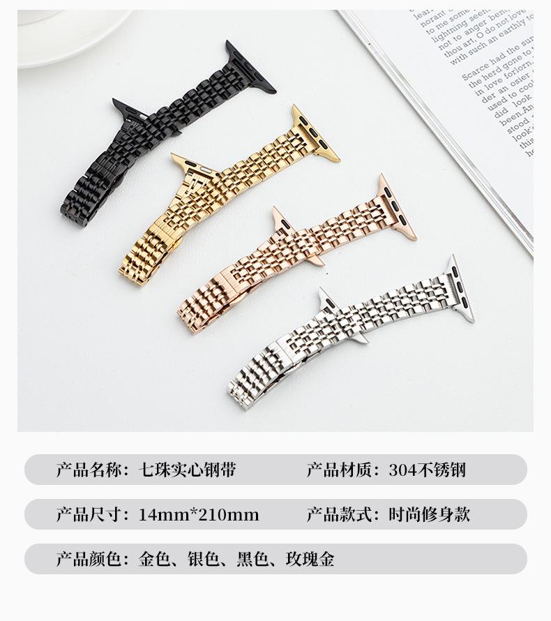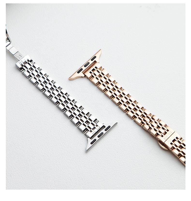 Adecuado para Apple Watch iWatch Correa de Acero Inoxidable Sólido de Siete Eslabones de Cintura Pequeña Correa para Reloj Inteligente Personalización