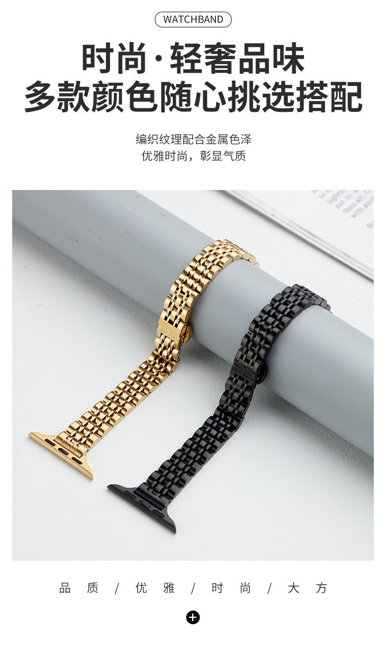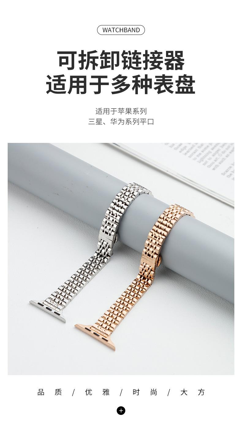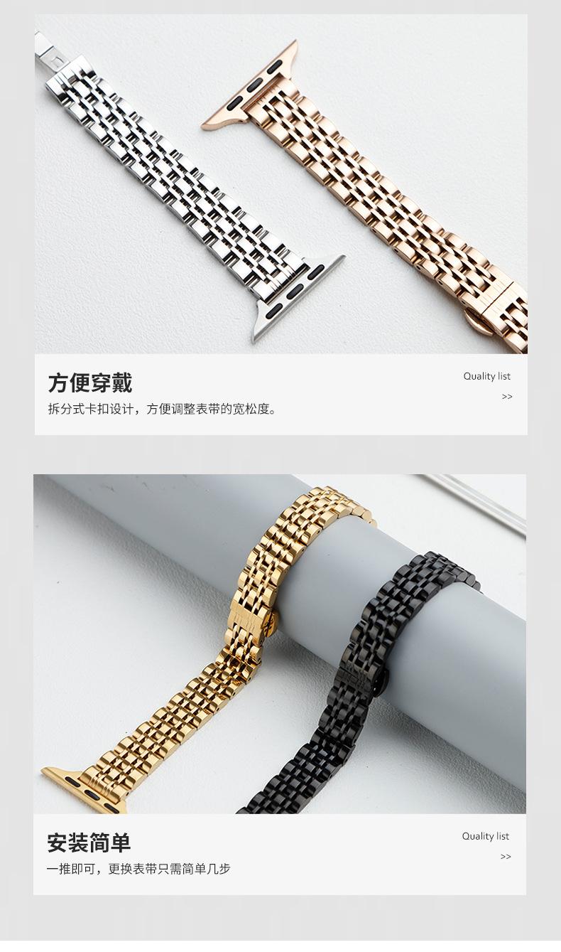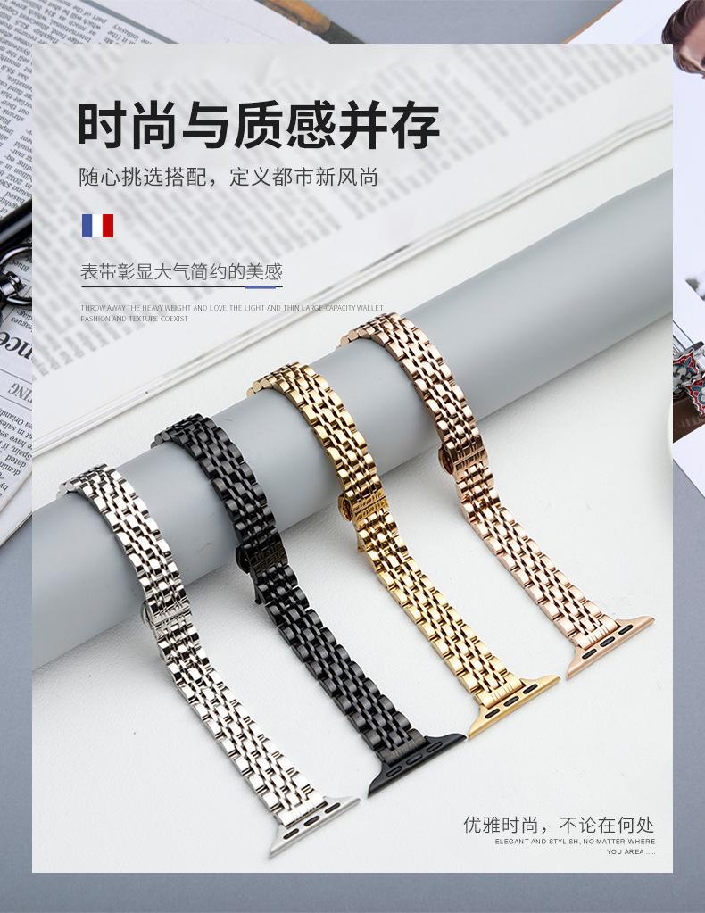 Adecuado para Apple Watch iWatch Correa de Acero Inoxidable Sólido de Siete Eslabones de Cintura Pequeña Correa para Reloj Inteligente Personalización