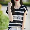 Nuevo Verano 2024 Estilo Coreano Cuello Redondo Contraste de Color Rayado Manga Corta Diseño de Moda Casual Top Suéter Combinable para Mujer