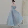 Vestido de Noche Azul para Mujer con Banquete Elegante 2025 Nuevo Diseño de Vestido de Dama de Honor Elegante Vestido de un Hombro