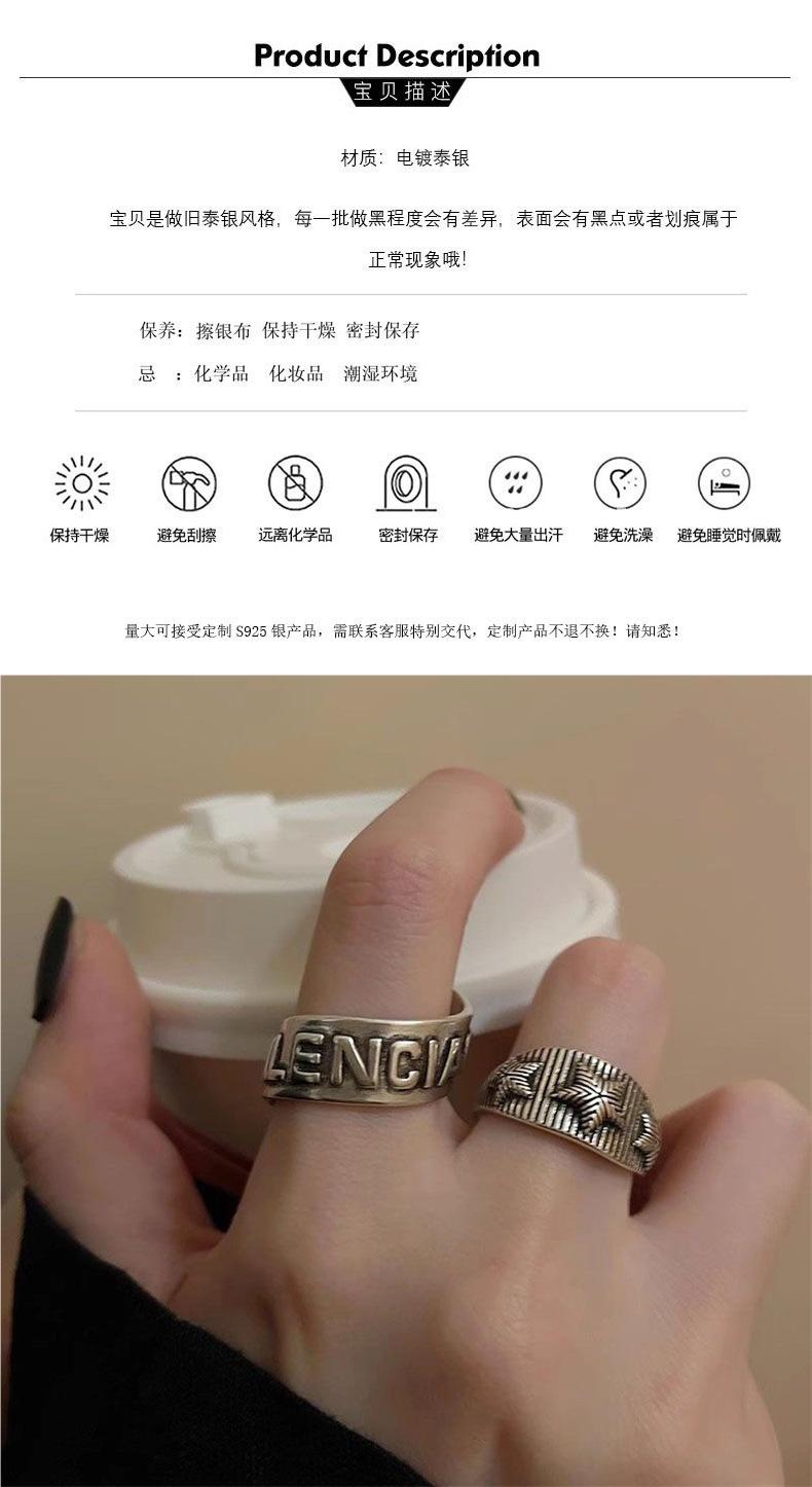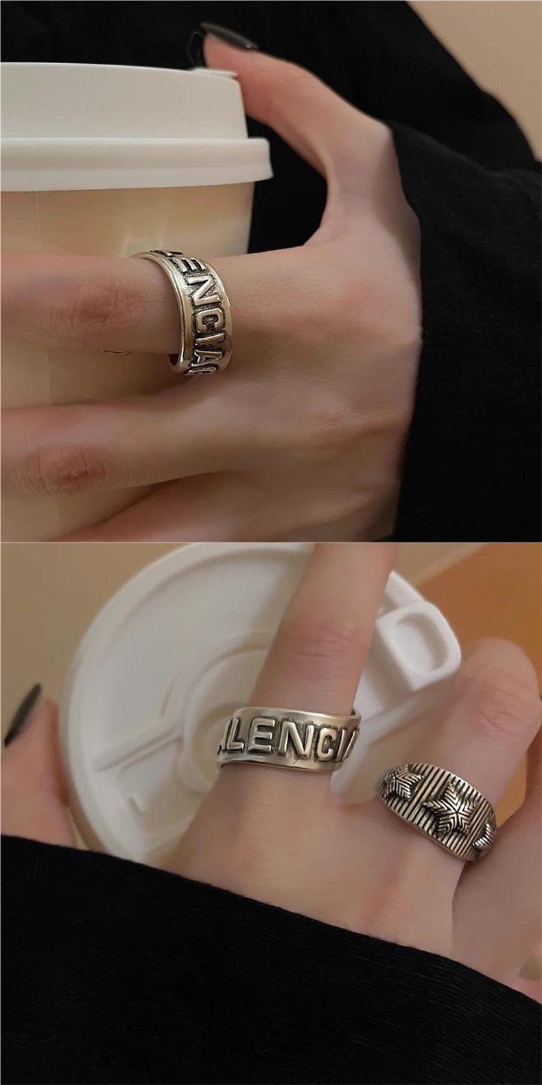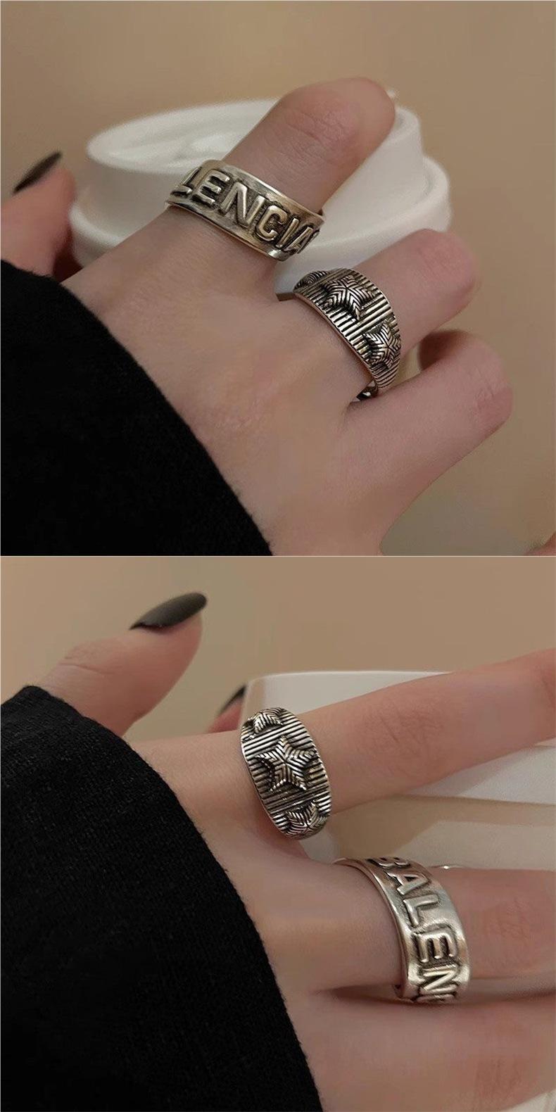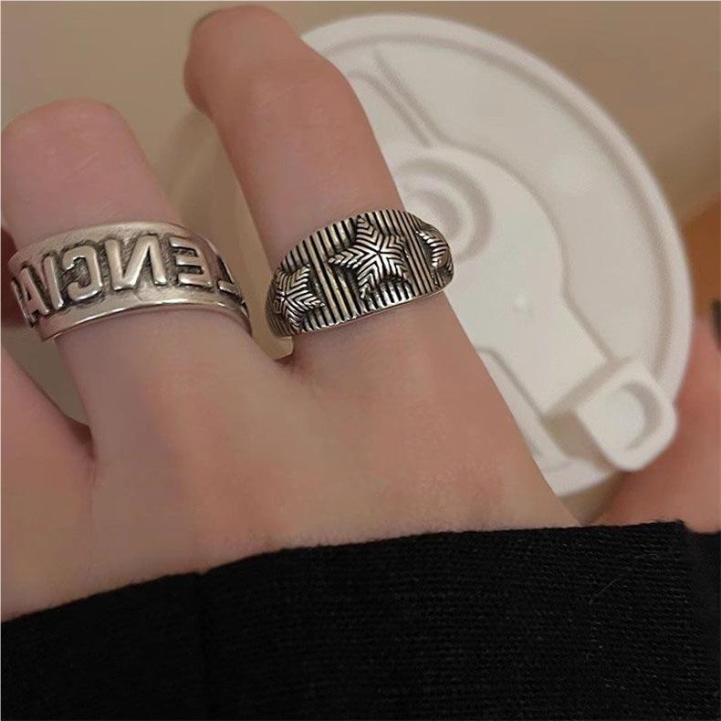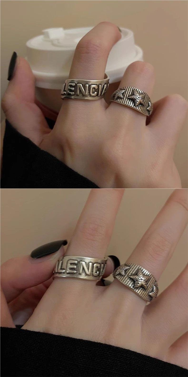 Anillo de Personalidad con Letra Vintage para Mujer, Anillo Abierto Hip-Hop de Moda Simple, Anillo de Dedo Índice Versátil Creativo Cool de Tendencia