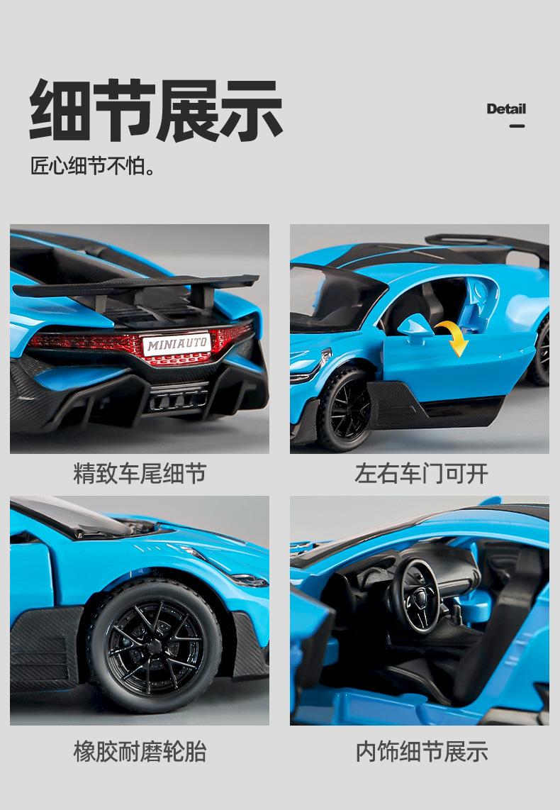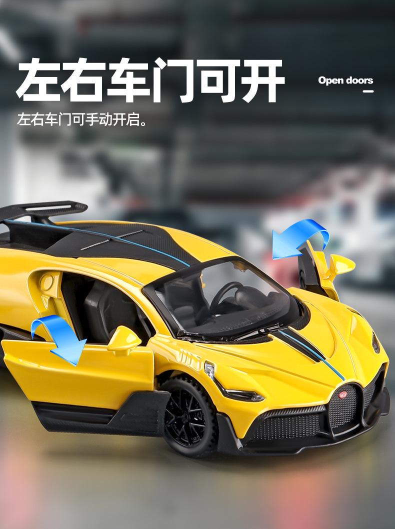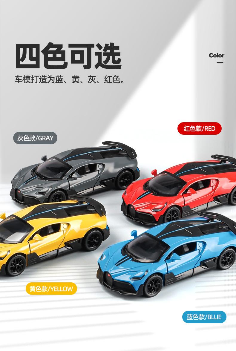 Bugatti alloy sports car red, Bugatti alloy sports car yellow, Bugatti alloy sports car blue, Bugatti alloy sports car gray