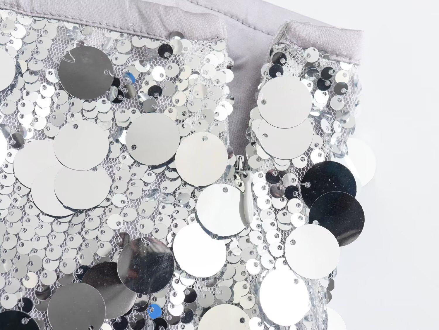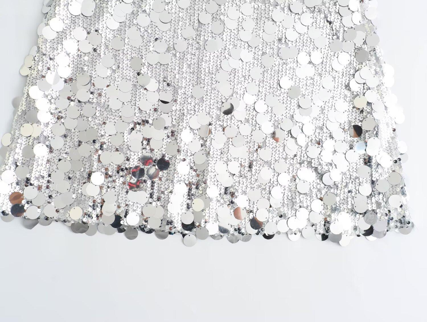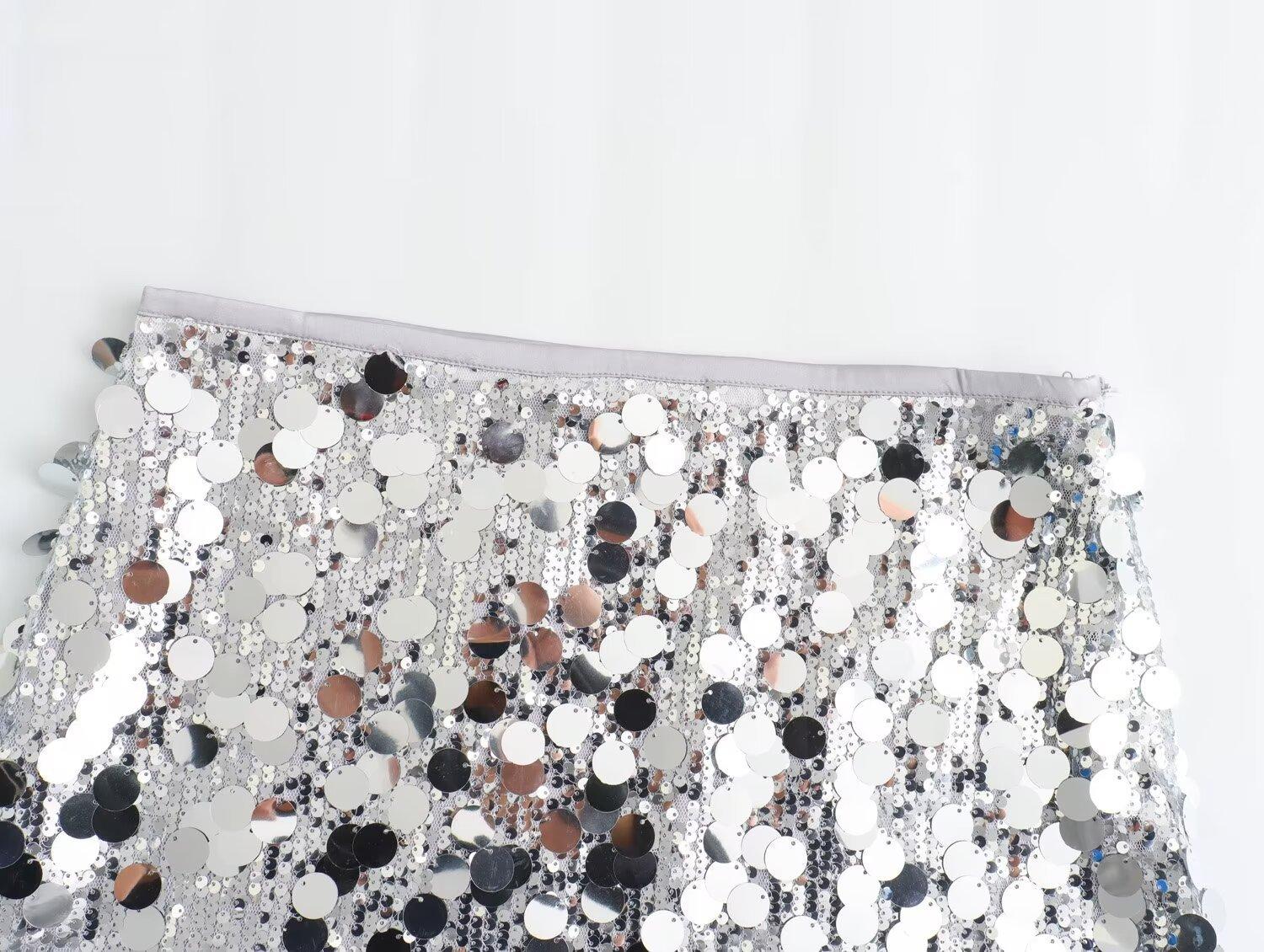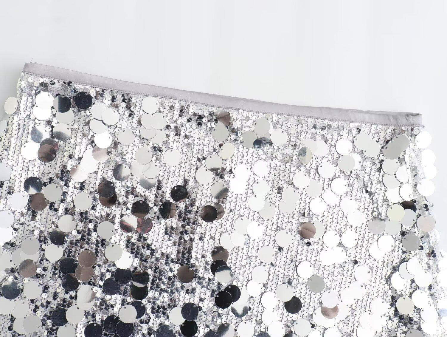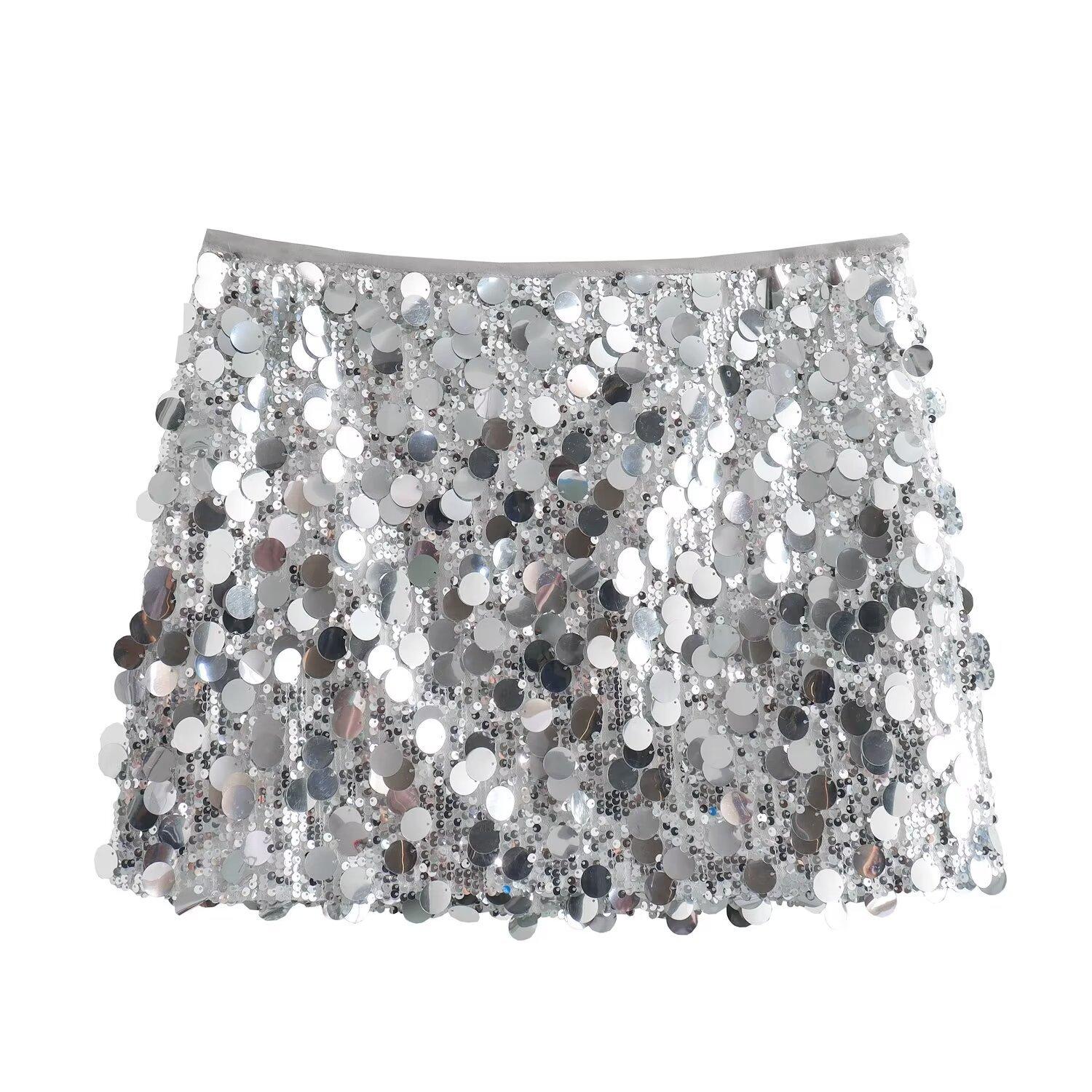 Comercio transfronterizo 2024 Invierno Estilo Europeo y Americano Falda Sexy de Línea A para Mujer Cintura Alta Cadera Lentejuelas Minifalda