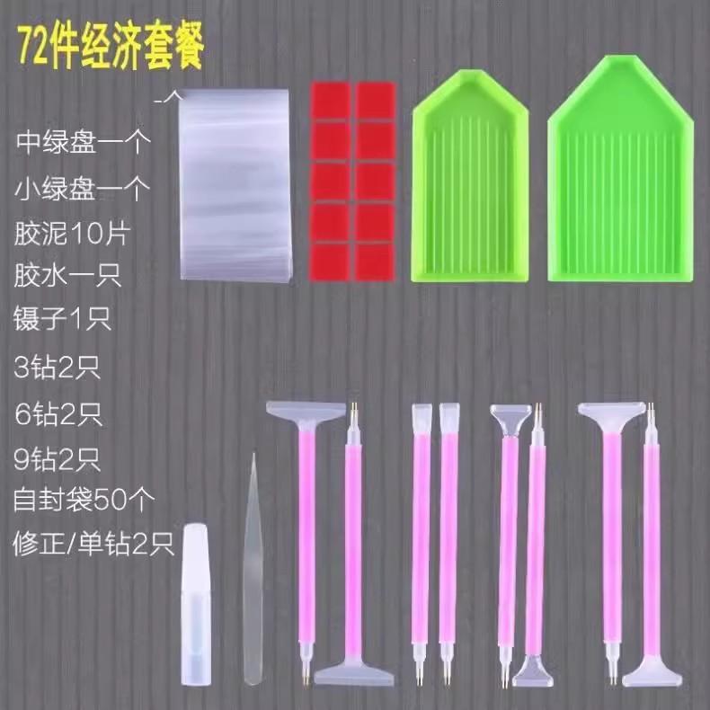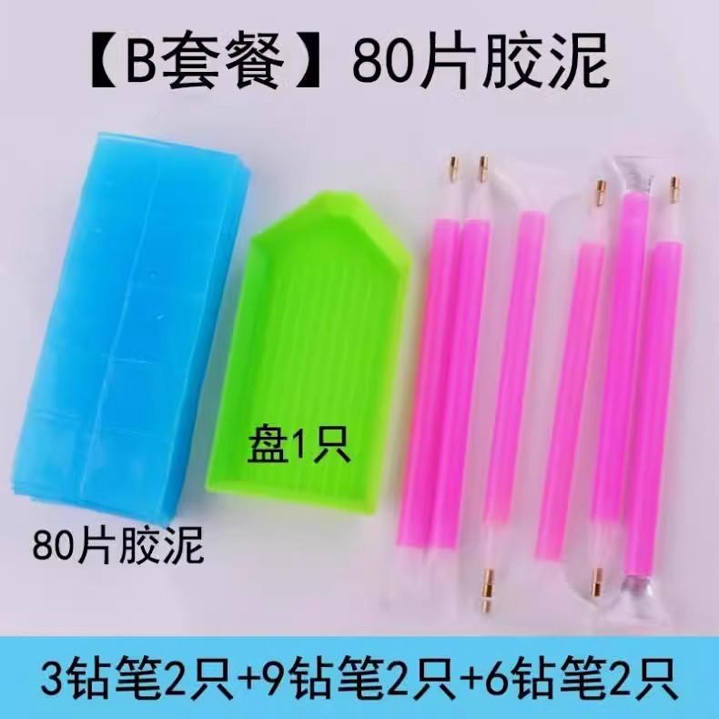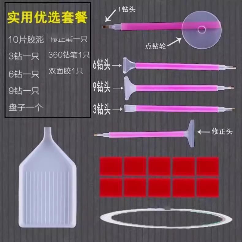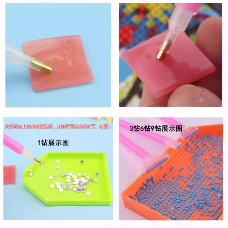 3 drill pens, 6 diamond pens, 9 diamond pen, 1 piece of clay, Dot drill basin