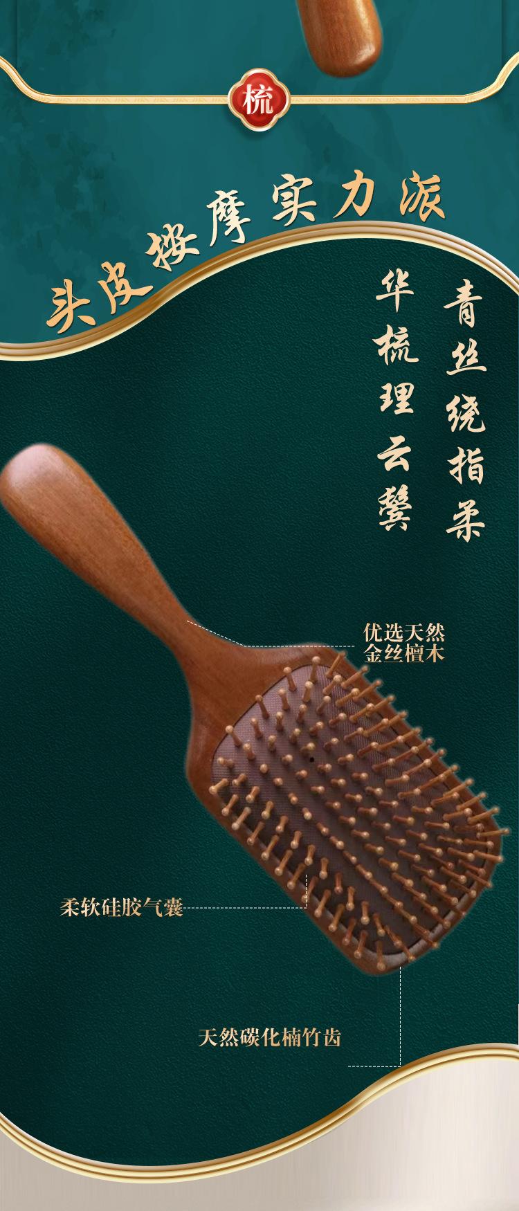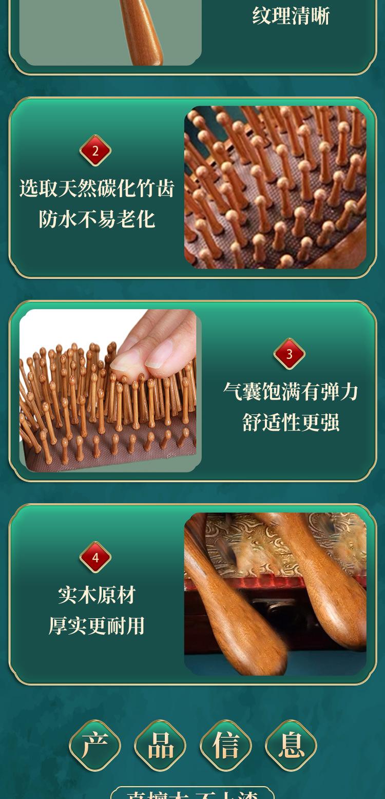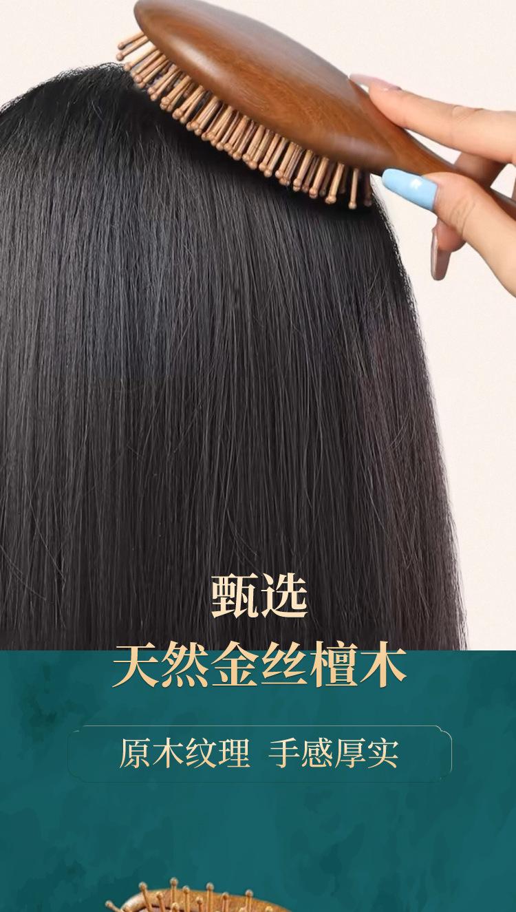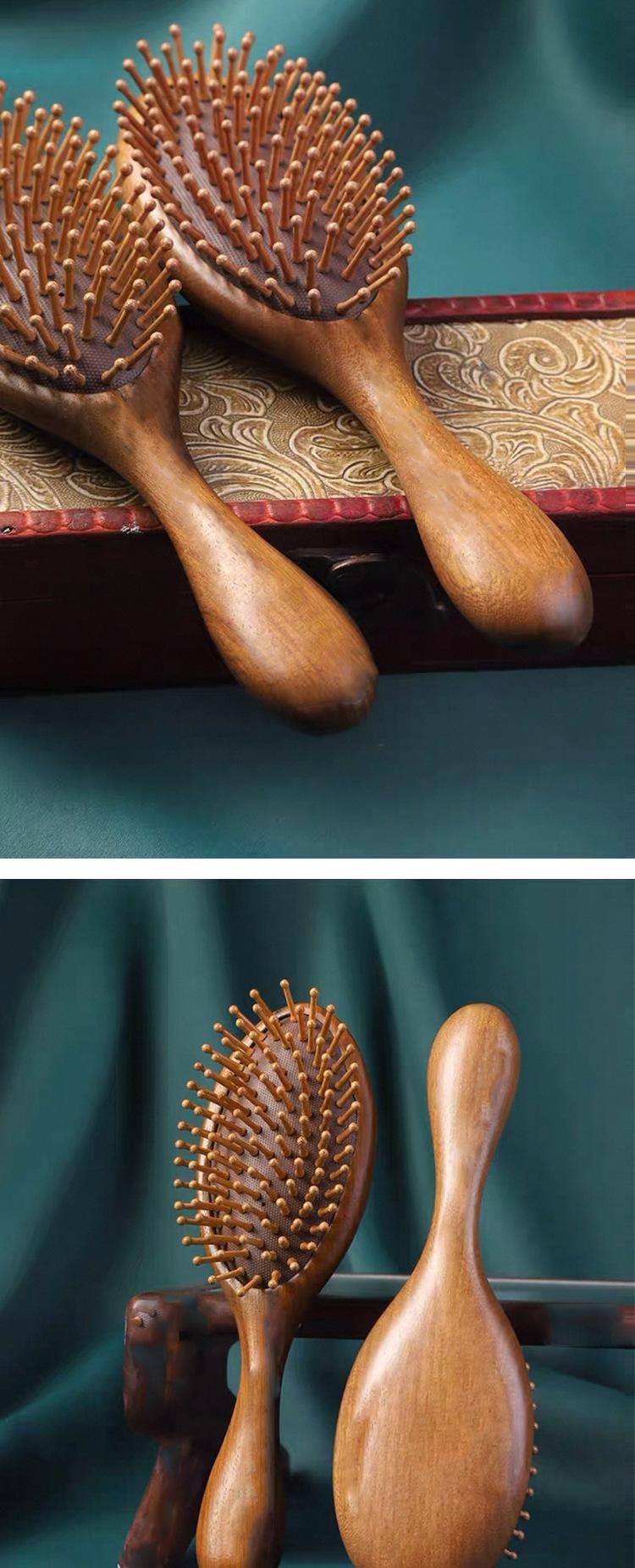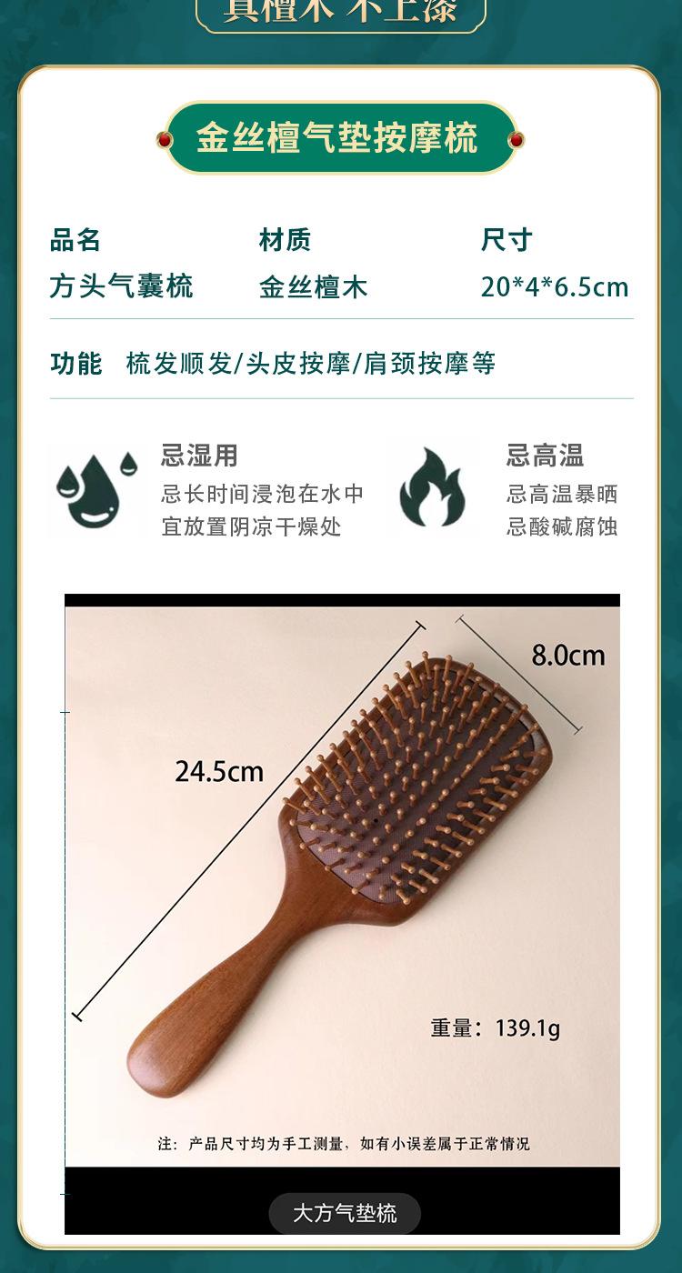 Golden sandalwood oval air cushion comb, Dragon and phoenix sandalwood oval air cushion comb, Square air cushi...
