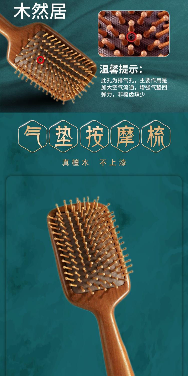 Peine de cojín de aire de sándalo al por mayor peluquería cabello madera de sándalo rojo peine de masaje hogar masaje cuero cabelludo peine de bolsa de aire de sándalo