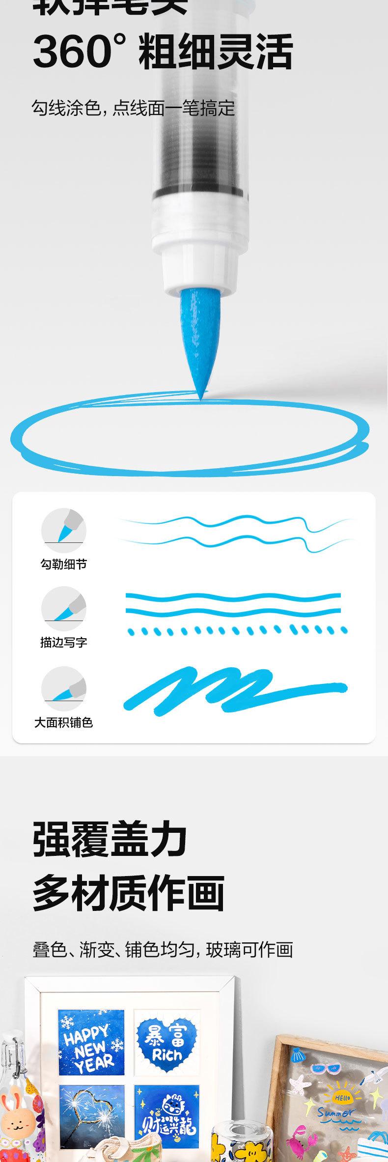Deli Marcador Acrílico Líquido Recto Individual Color Complementario Punta Suave Marcador Acrílico Color Opaco Apilable Suplemento de Color Único