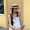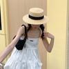 Sombrero de paja de verano tejido a mano estilo coreano versátil protector solar transpirable de copa plana para damas para jugar en la playa sombrero de paja parasol estilo coreano para mujer