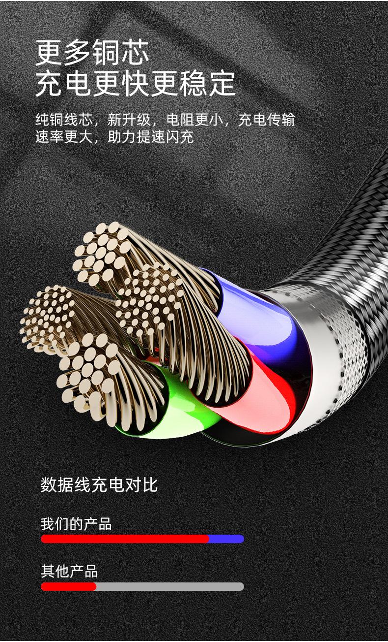 Nuestra empresa se enfoca en la producción, procesamiento y OEM de cables de datos. Contamos con máquinas profesionales de grabado láser.¡Admite varias personalizaciones de LOGO!Nuestra empresa cuenta con equipos profesionales de trefilado de alambre de cobre y equipos de tejido. Podemos personalizar varios colores, con un pedido mínimo de 3,000 piezas por color individual.