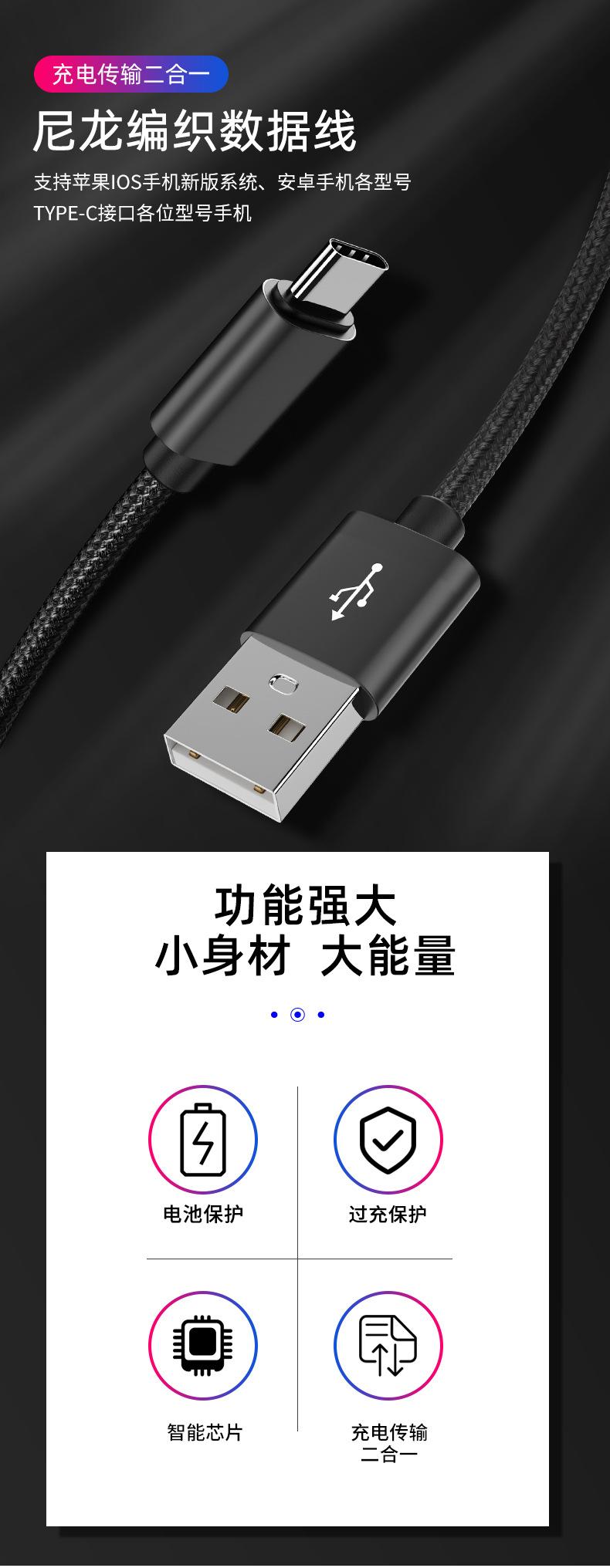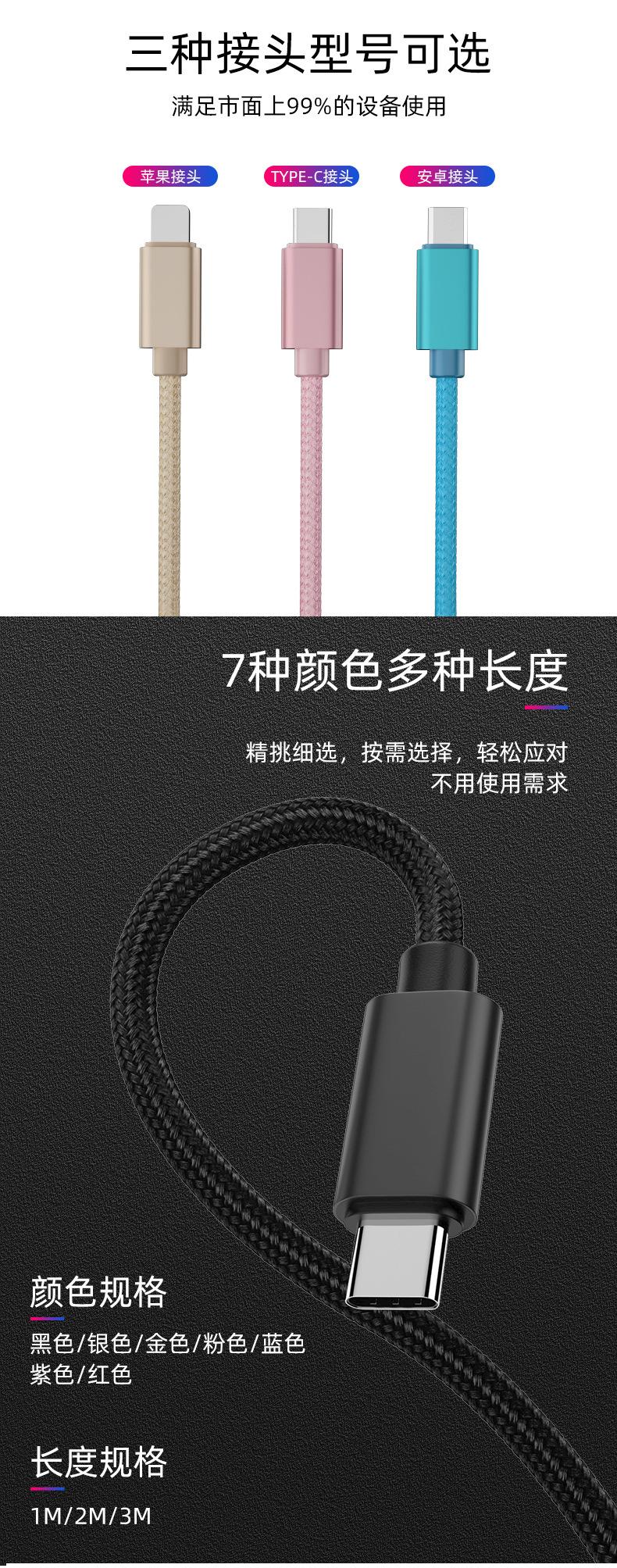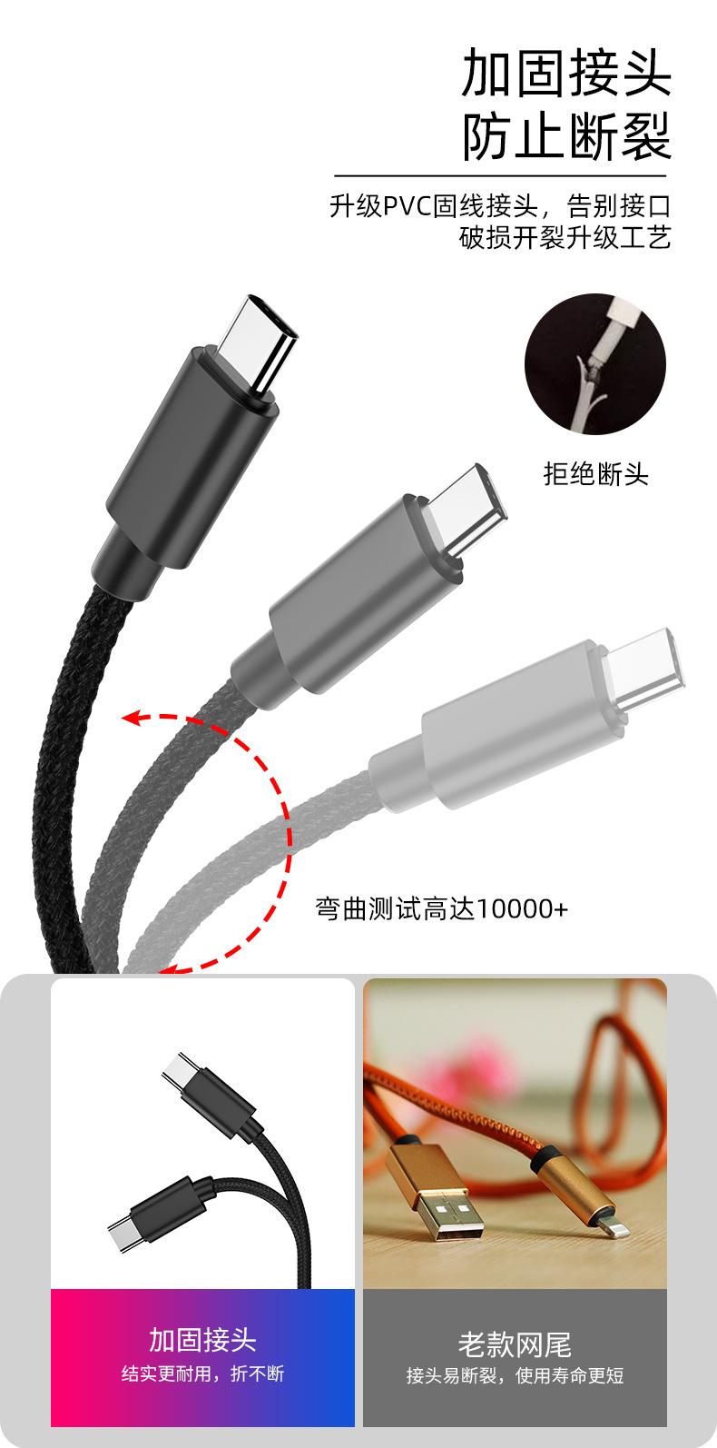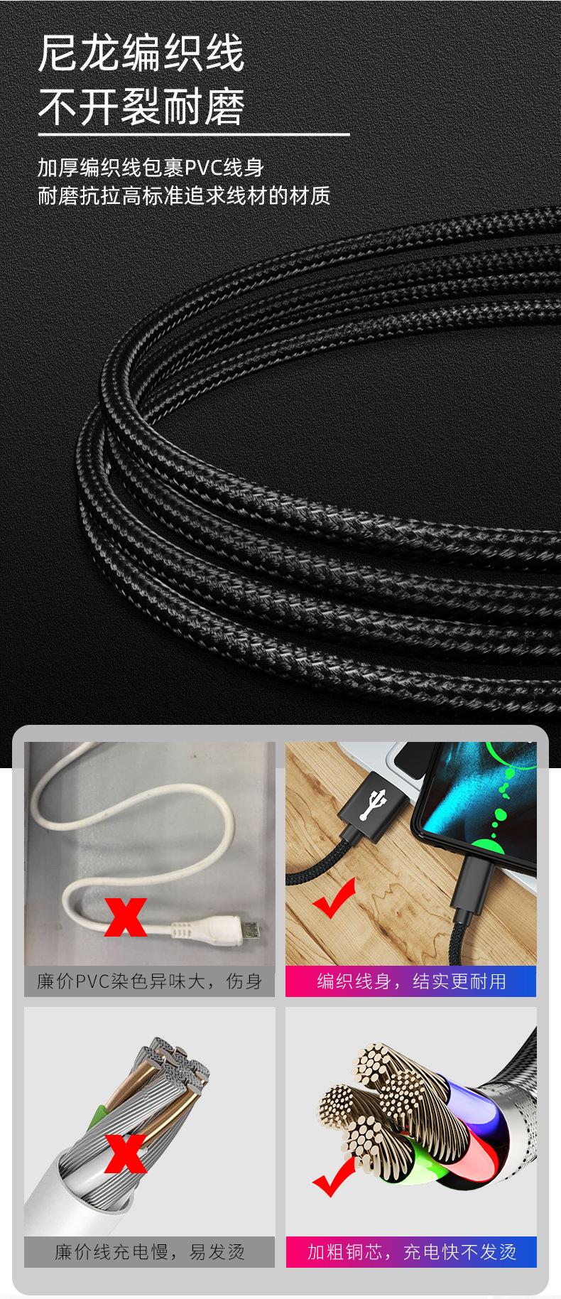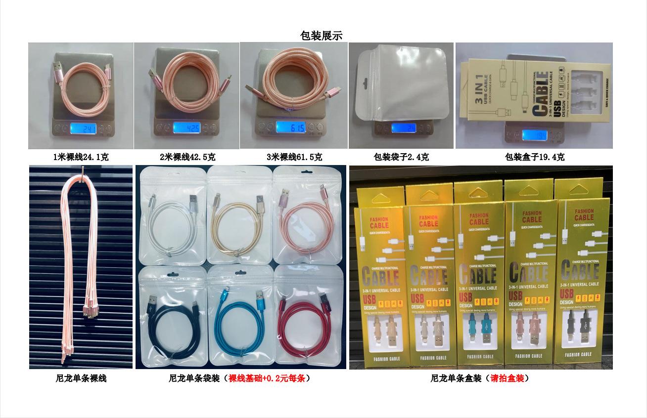 1. Este cable de datos trenzado de nailon: incluye línea única y de uno a tres (las interfaces se pueden personalizar)