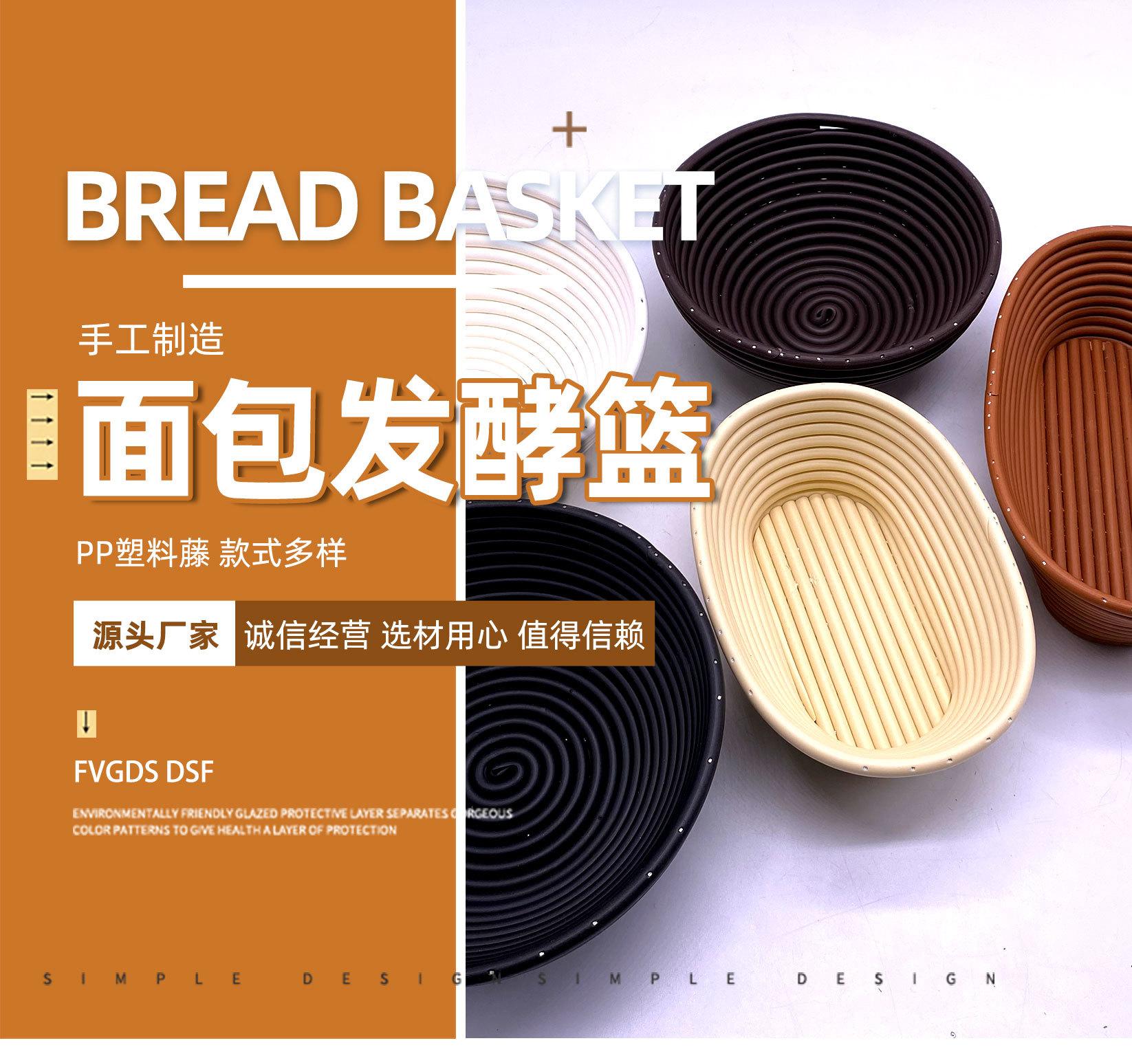 Fábrica Mayorista Hecho a Mano Ratán Cesta de Almacenamiento de Snacks y Pasteles de Luna Ratán de Plástico PP Cesta de Fermentación de Pan