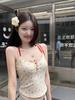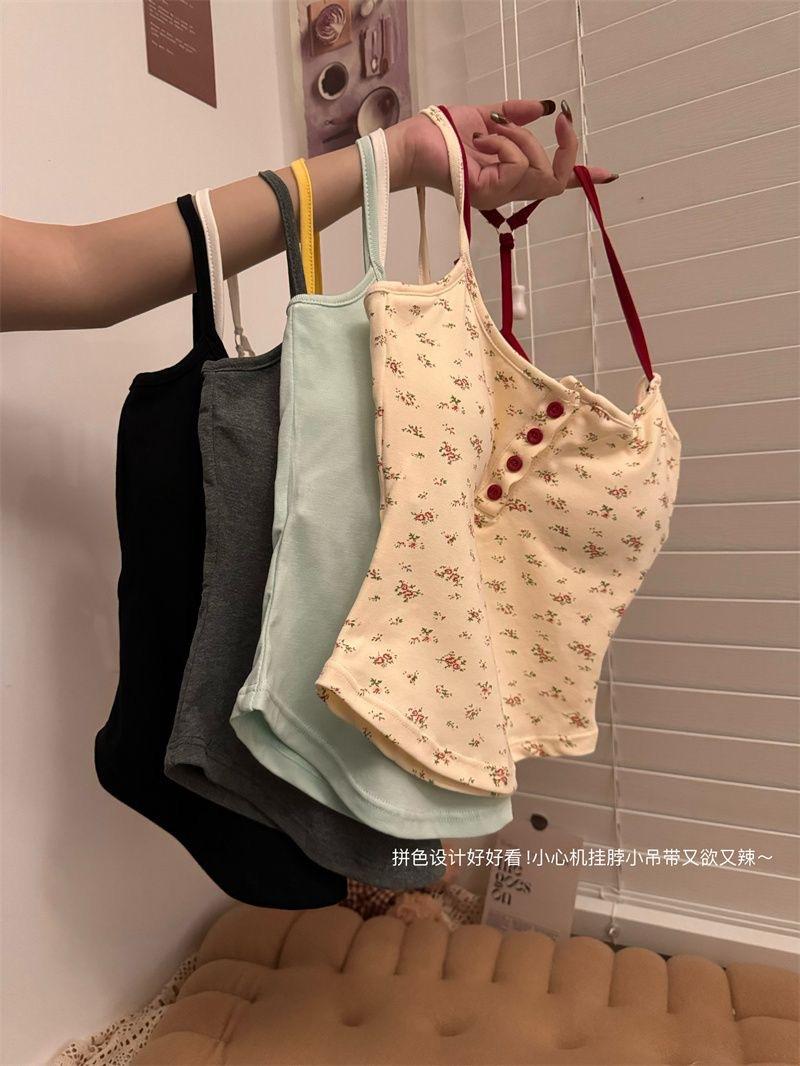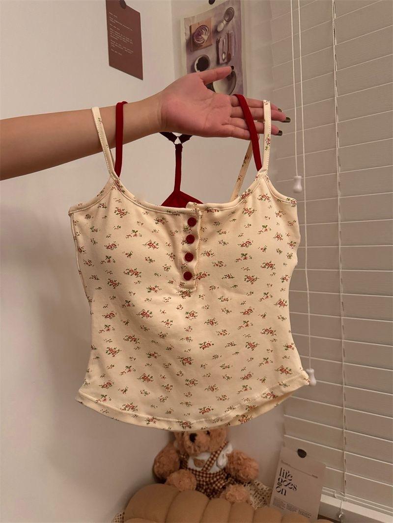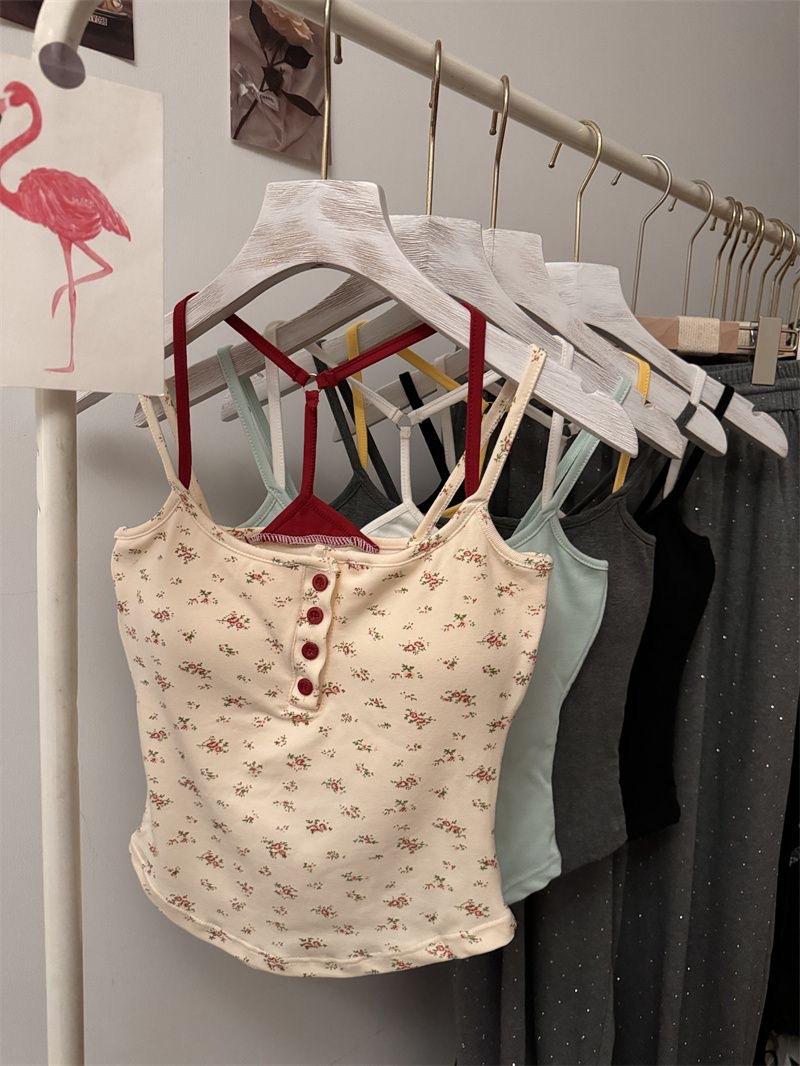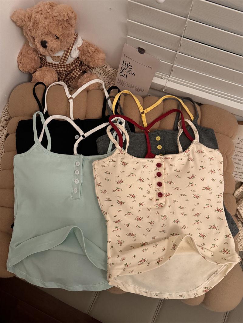 H330# chaleco de botones floral puro para mujer verano con almohadilla en el pecho sexy chica caliente abrigo base corto