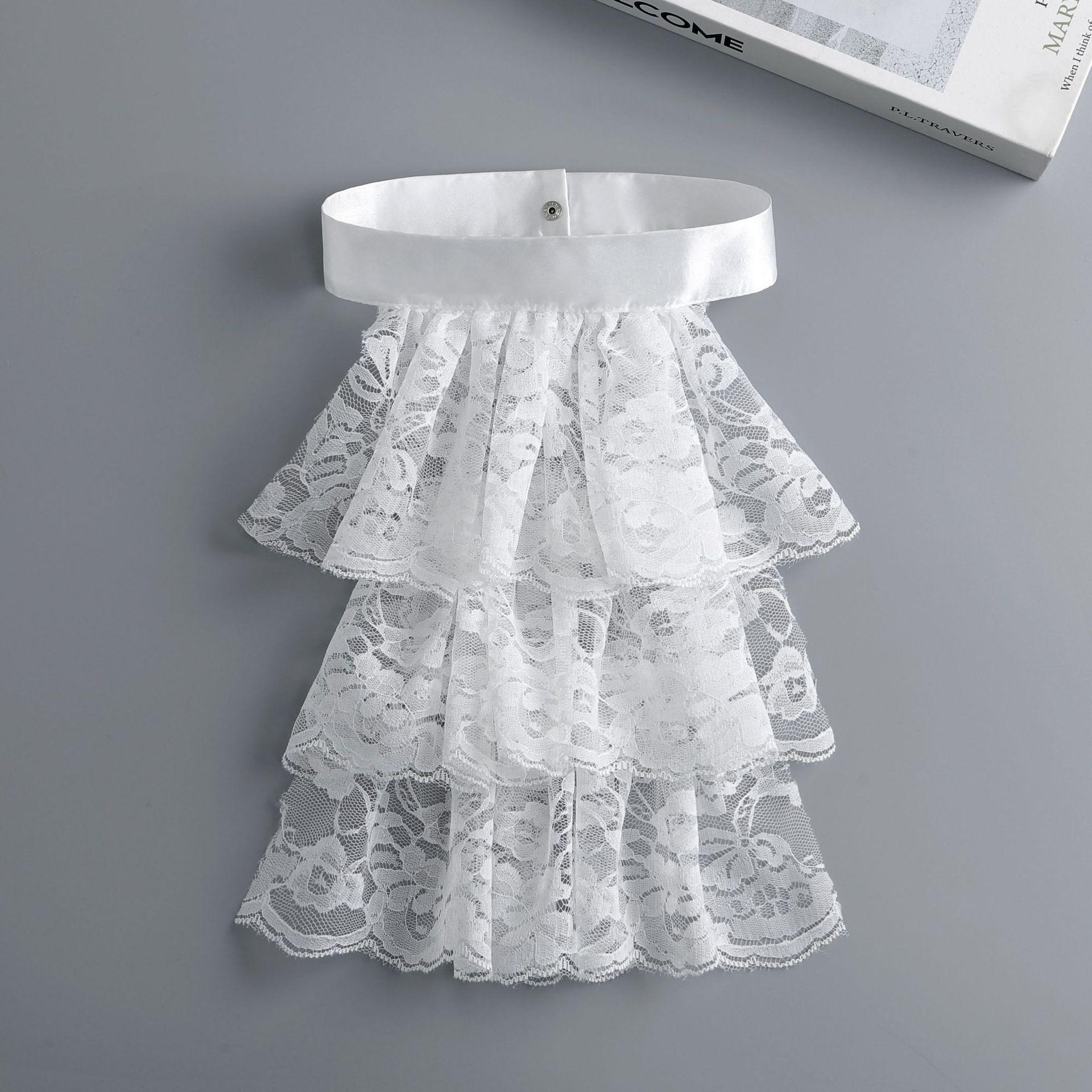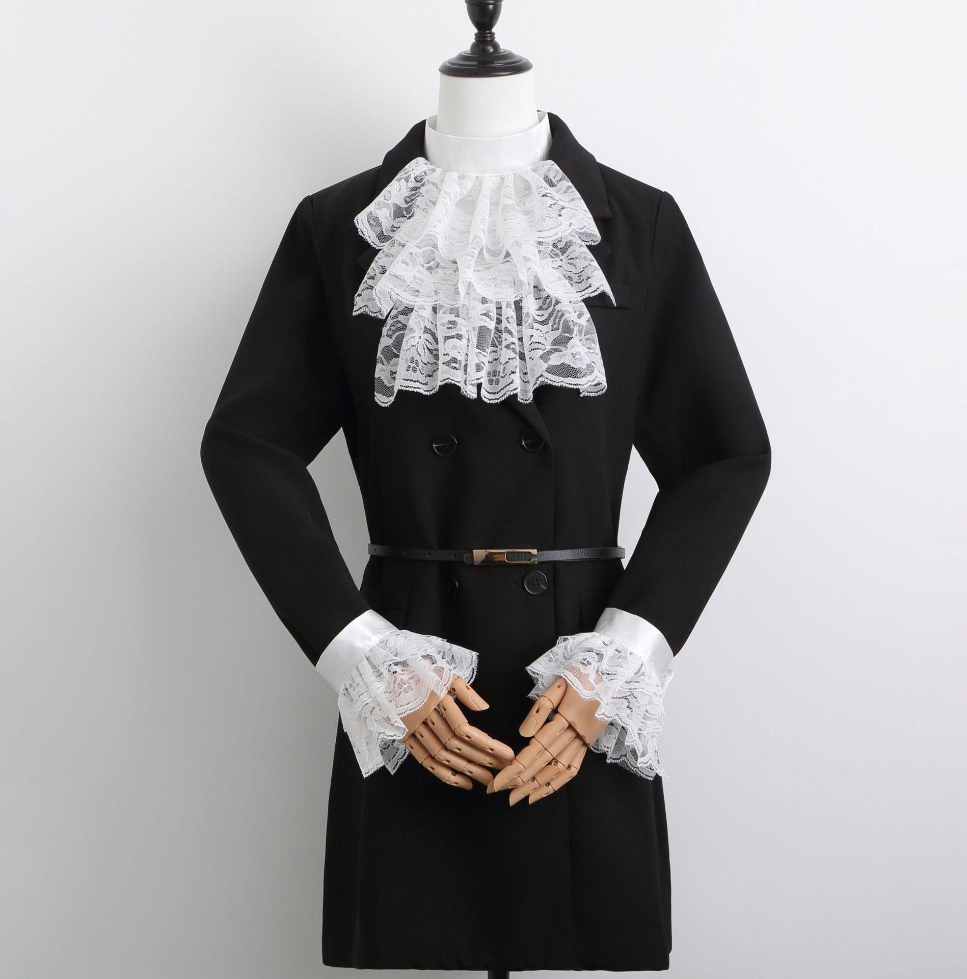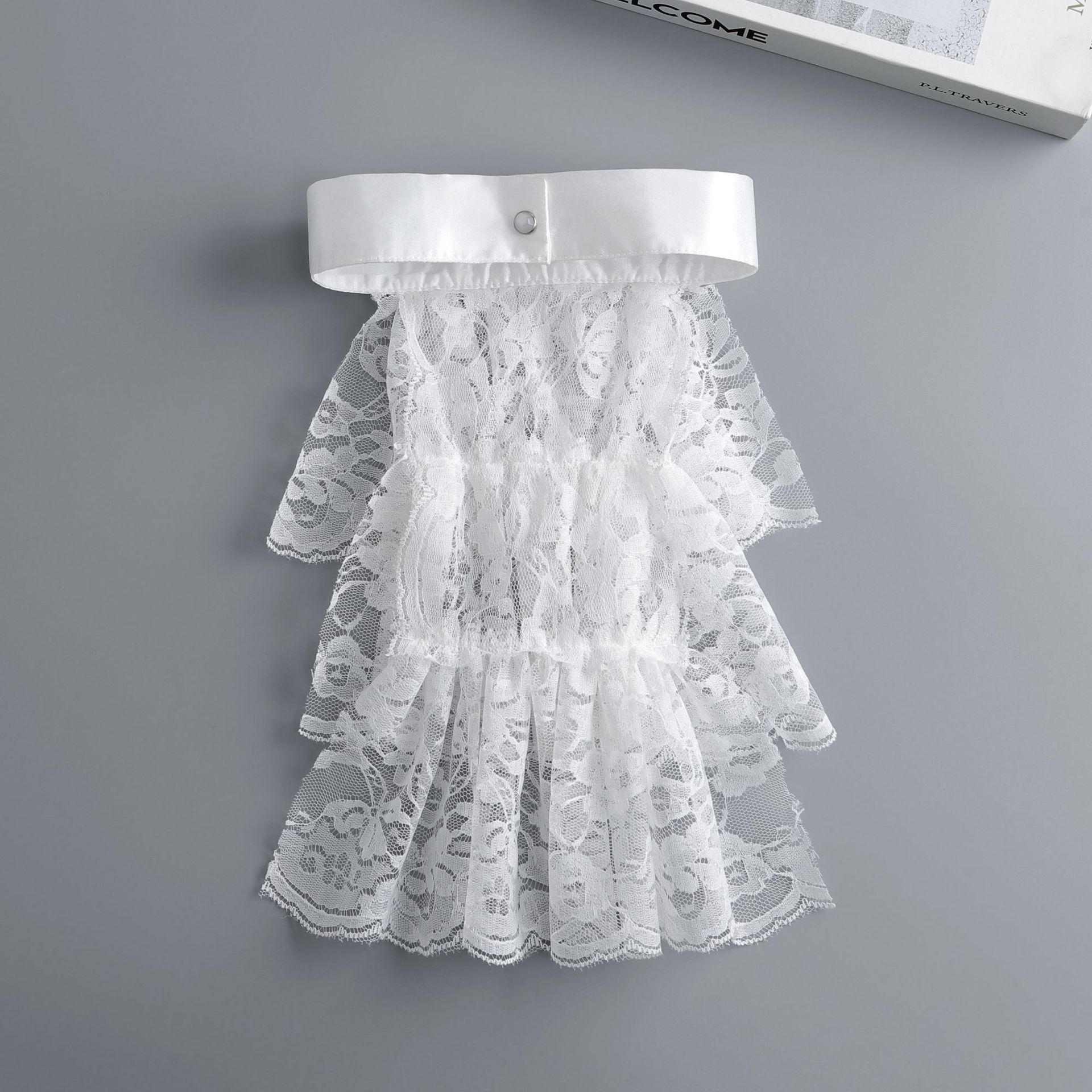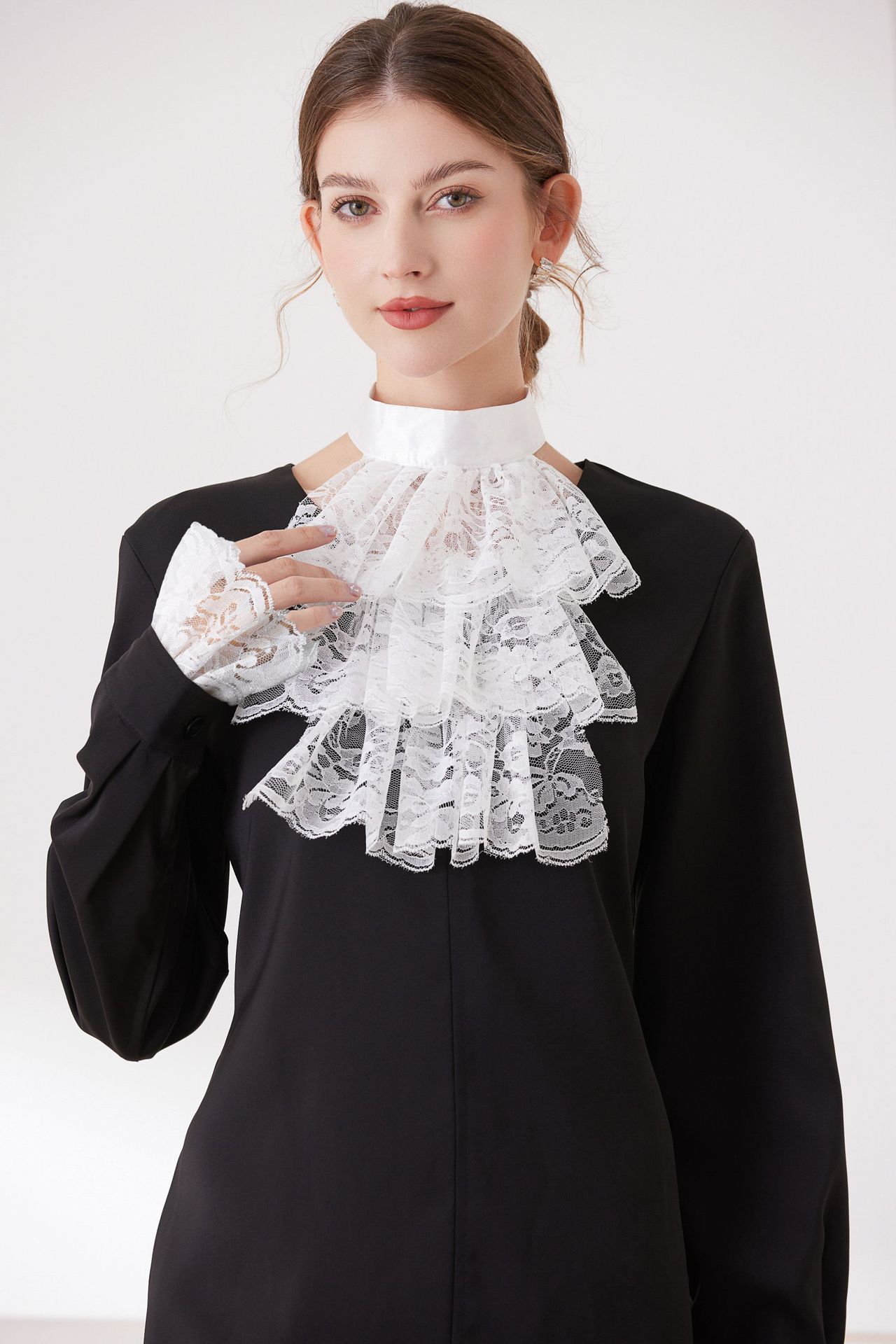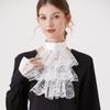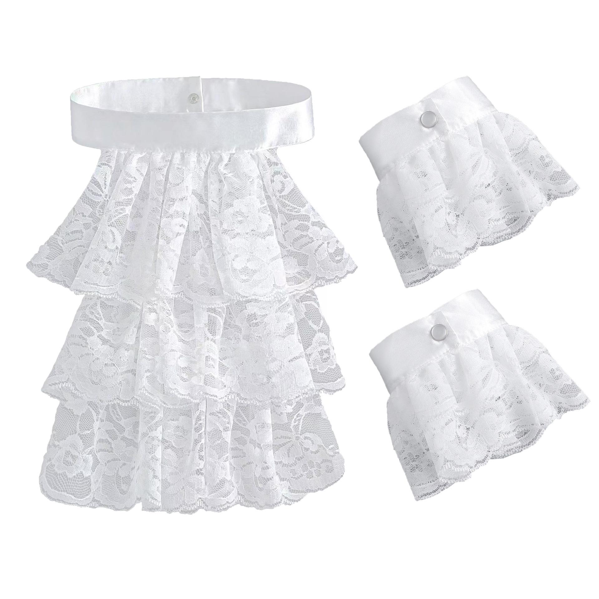 Encaje de tres capas Retro Cuello Waffle Manga Mano Cuello Ruff Palacio Cuello Decorativo Hoja de Loto con Cuello Flor Cuello Guantes traje