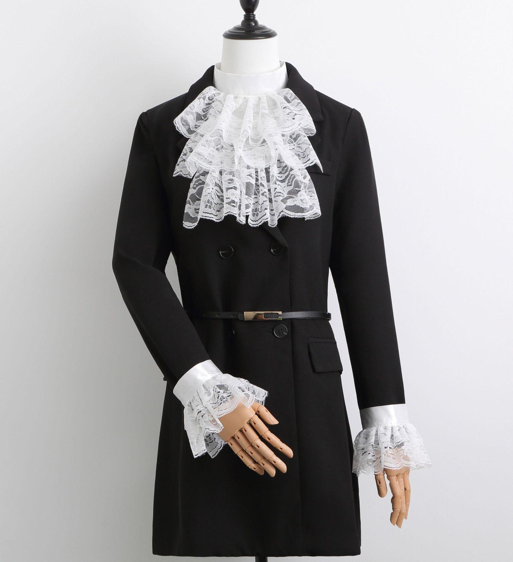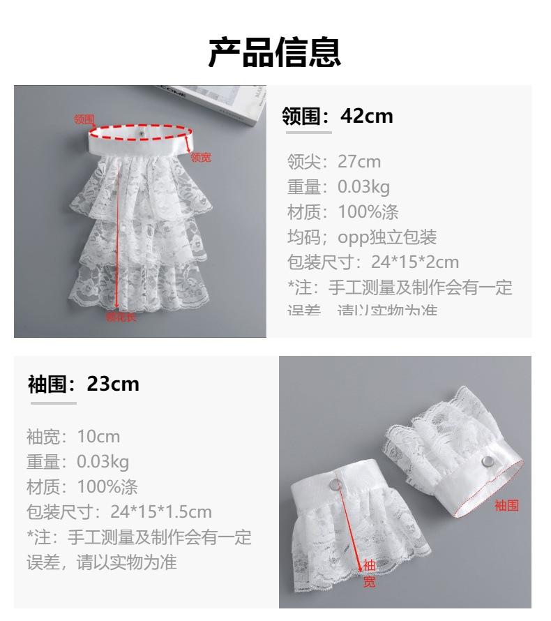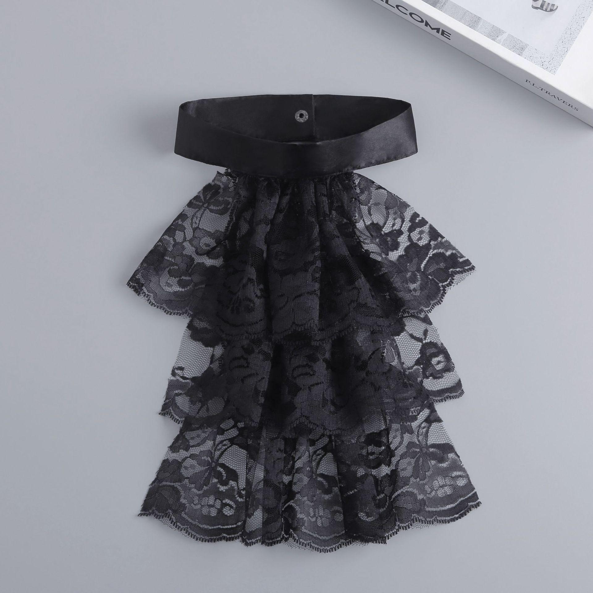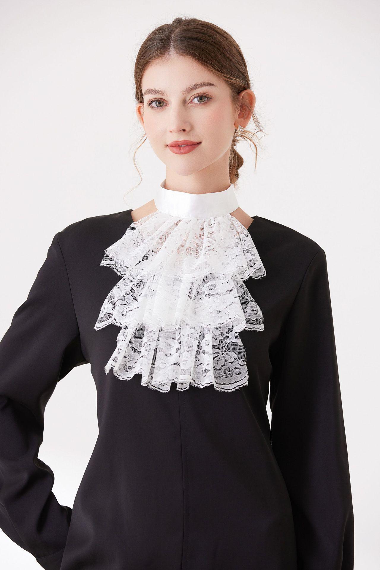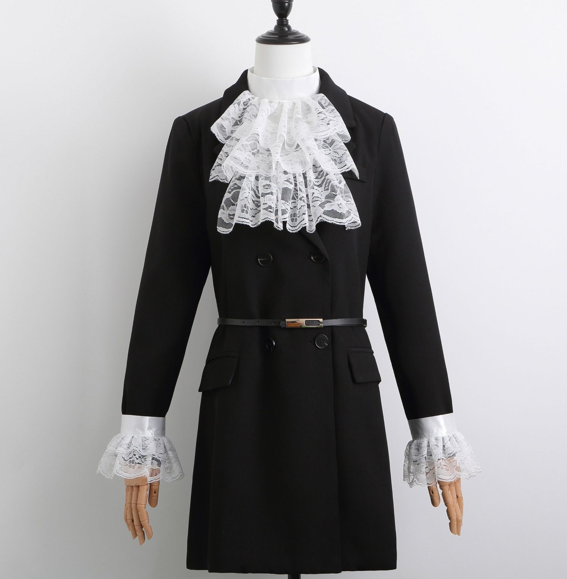 Encaje de tres capas Retro Cuello Waffle Manga Mano Cuello Ruff Palacio Cuello Decorativo Hoja de Loto con Cuello Flor Cuello Guantes traje