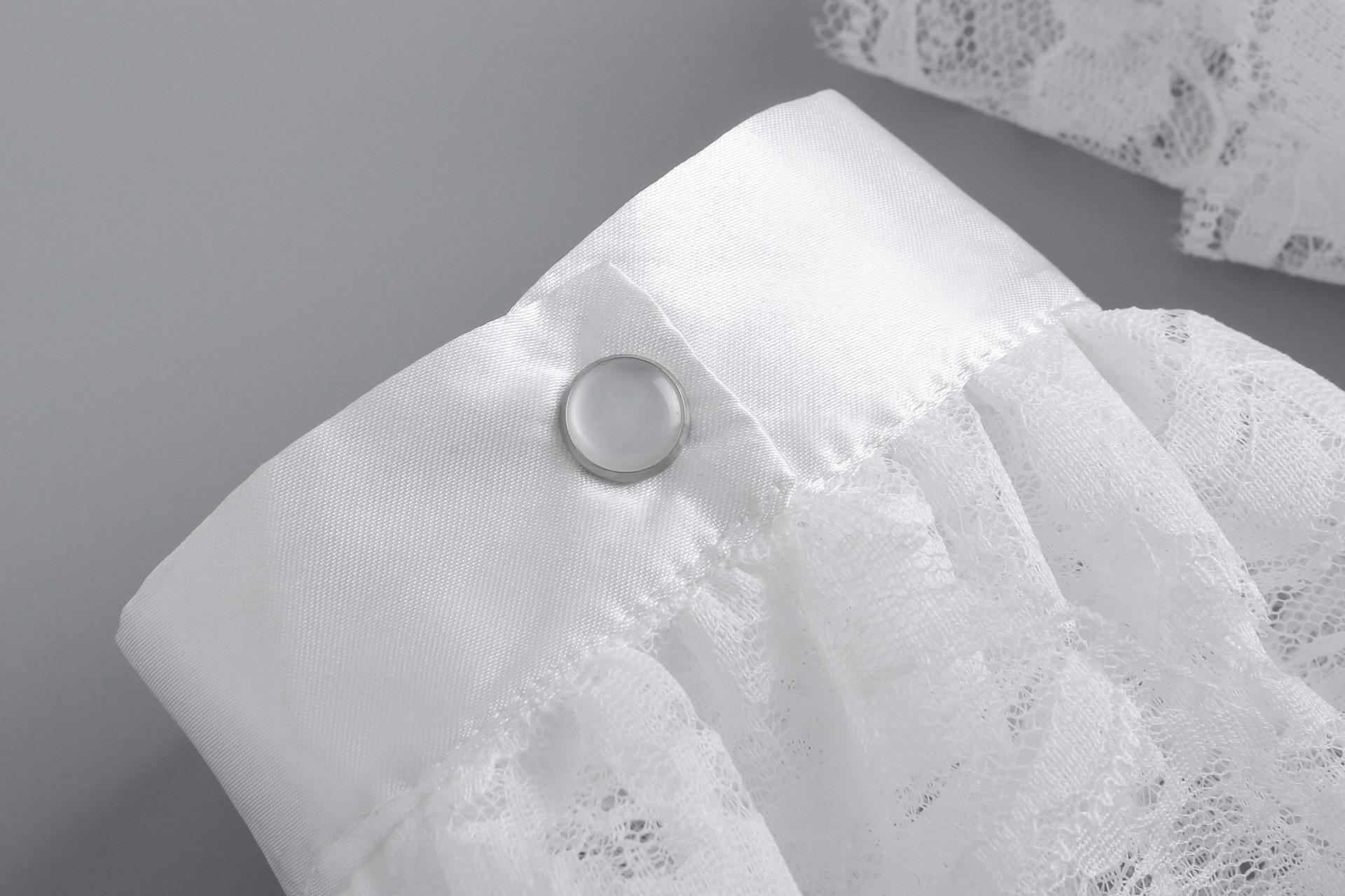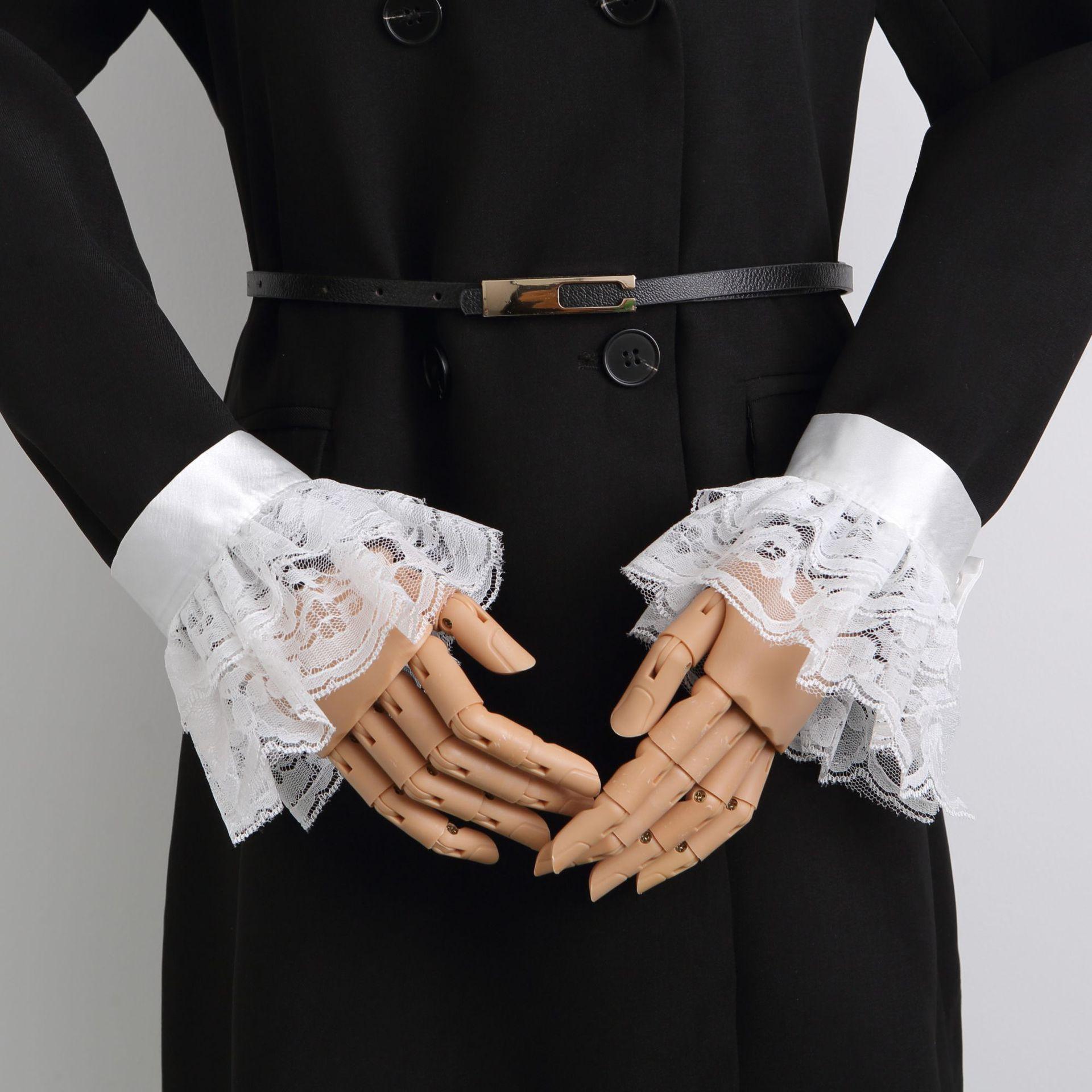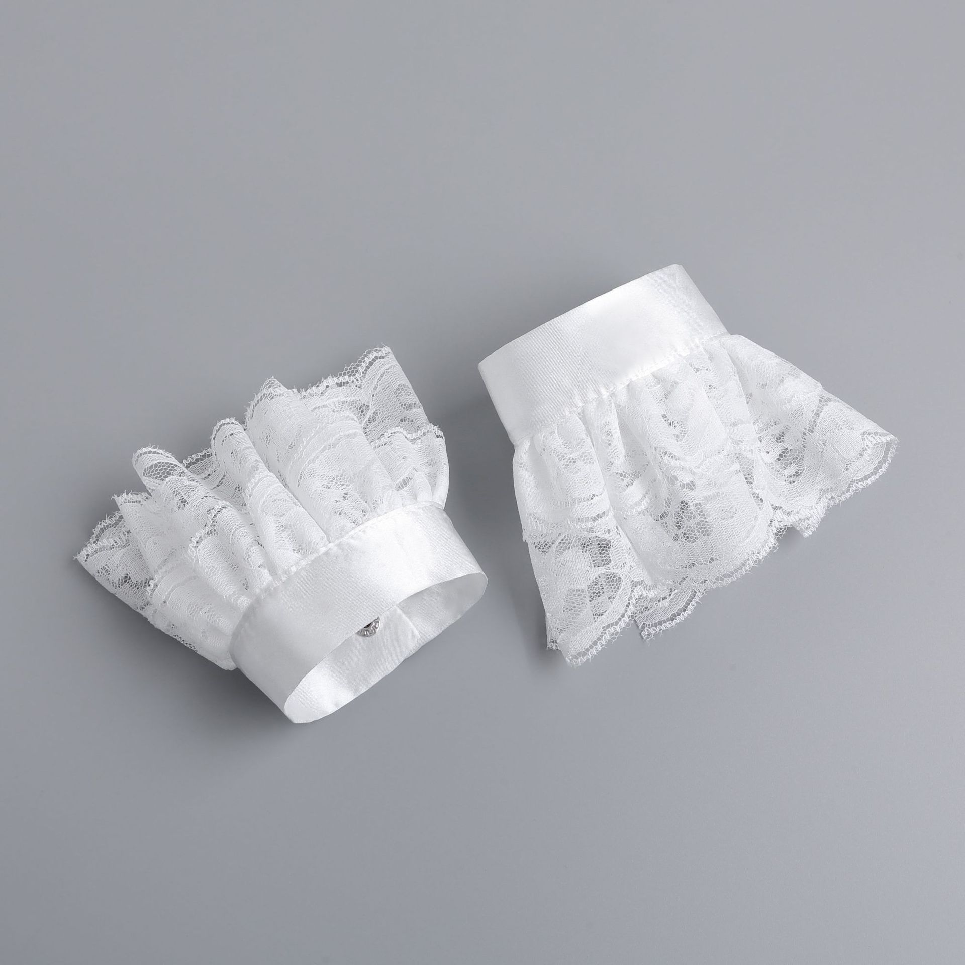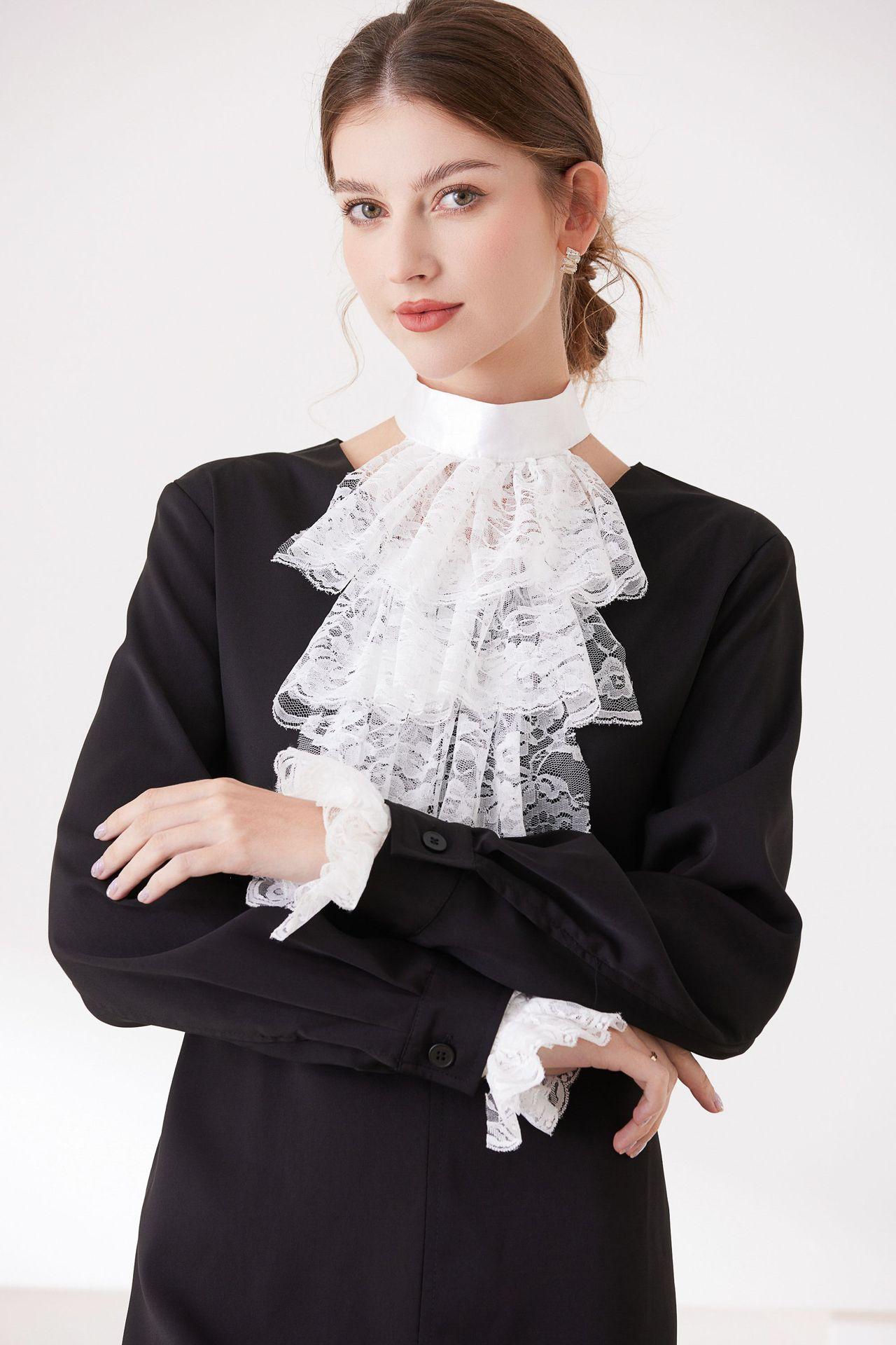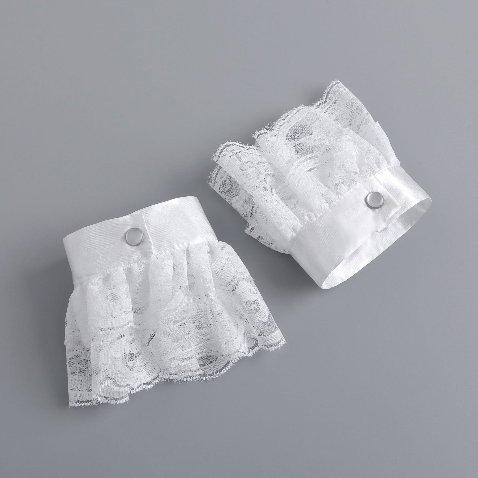 Encaje de tres capas Retro Cuello Waffle Manga Mano Cuello Ruff Palacio Cuello Decorativo Hoja de Loto con Cuello Flor Cuello Guantes traje