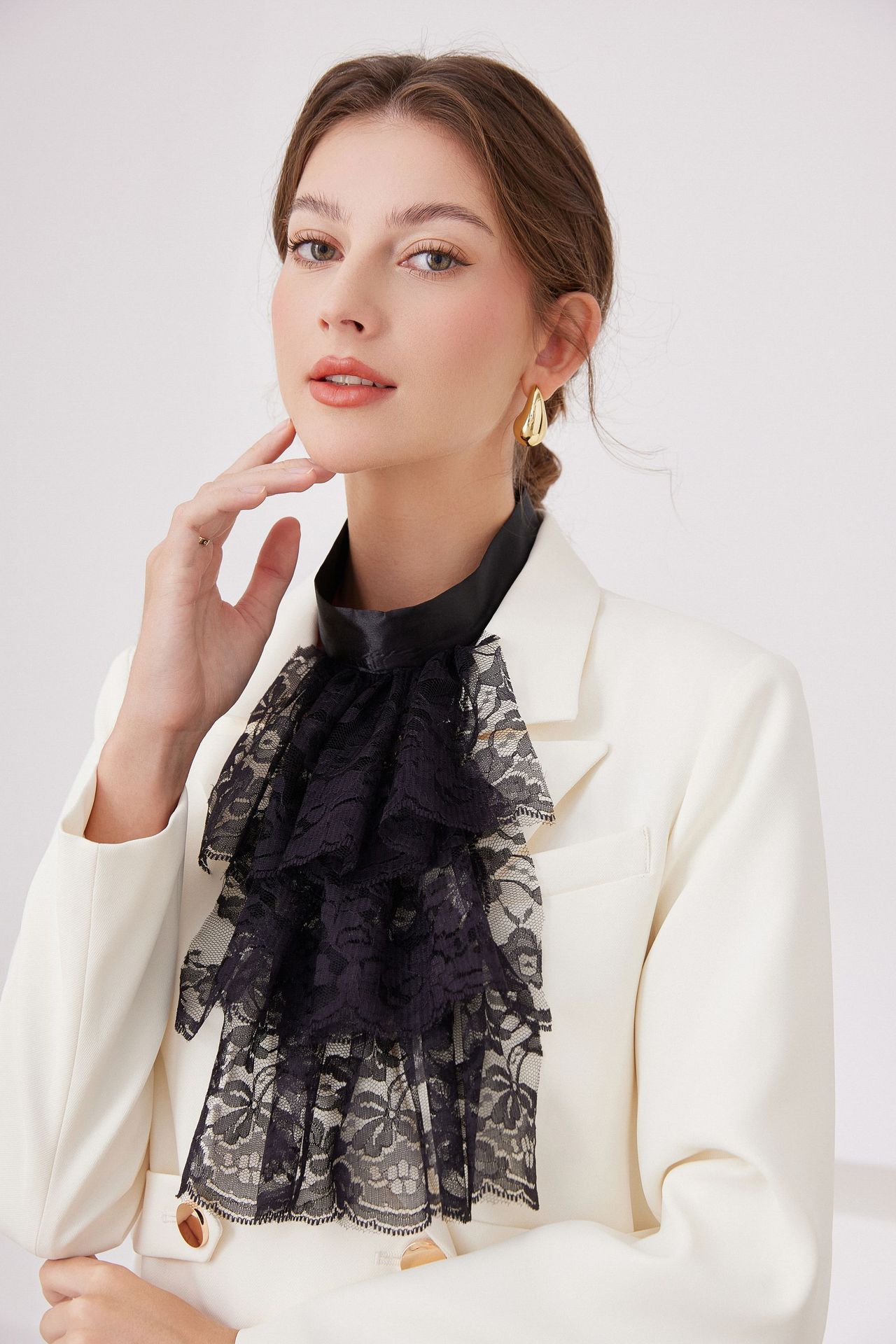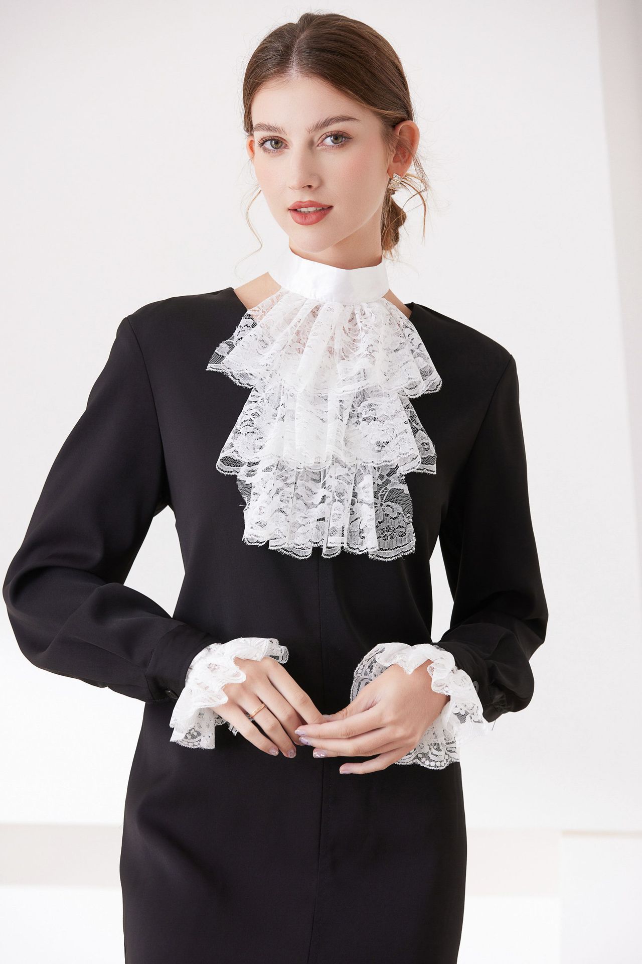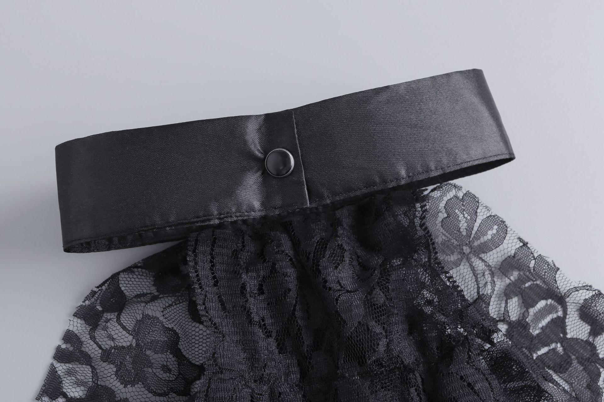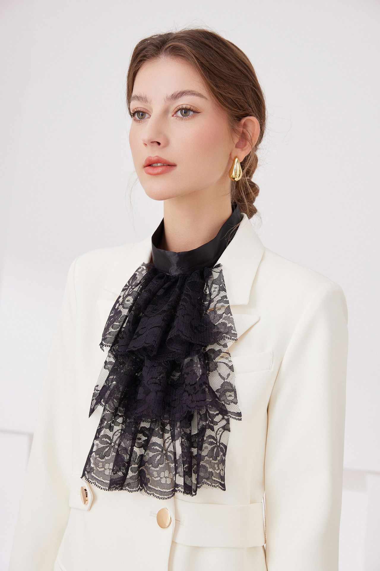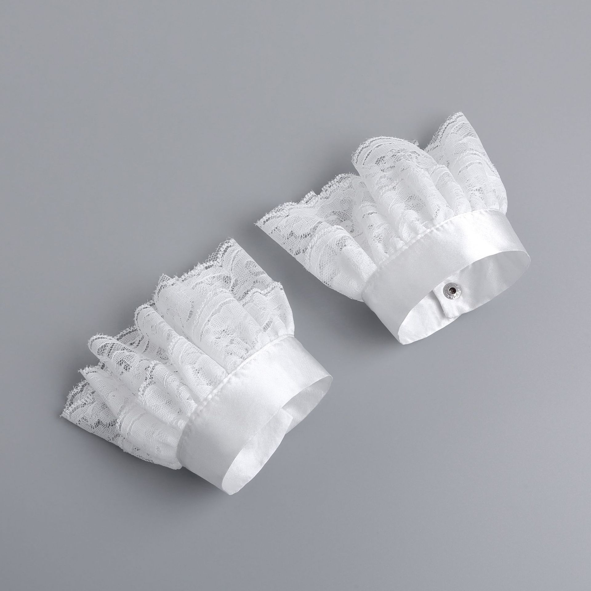 Encaje de tres capas Retro Cuello Waffle Manga Mano Cuello Ruff Palacio Cuello Decorativo Hoja de Loto con Cuello Flor Cuello Guantes traje