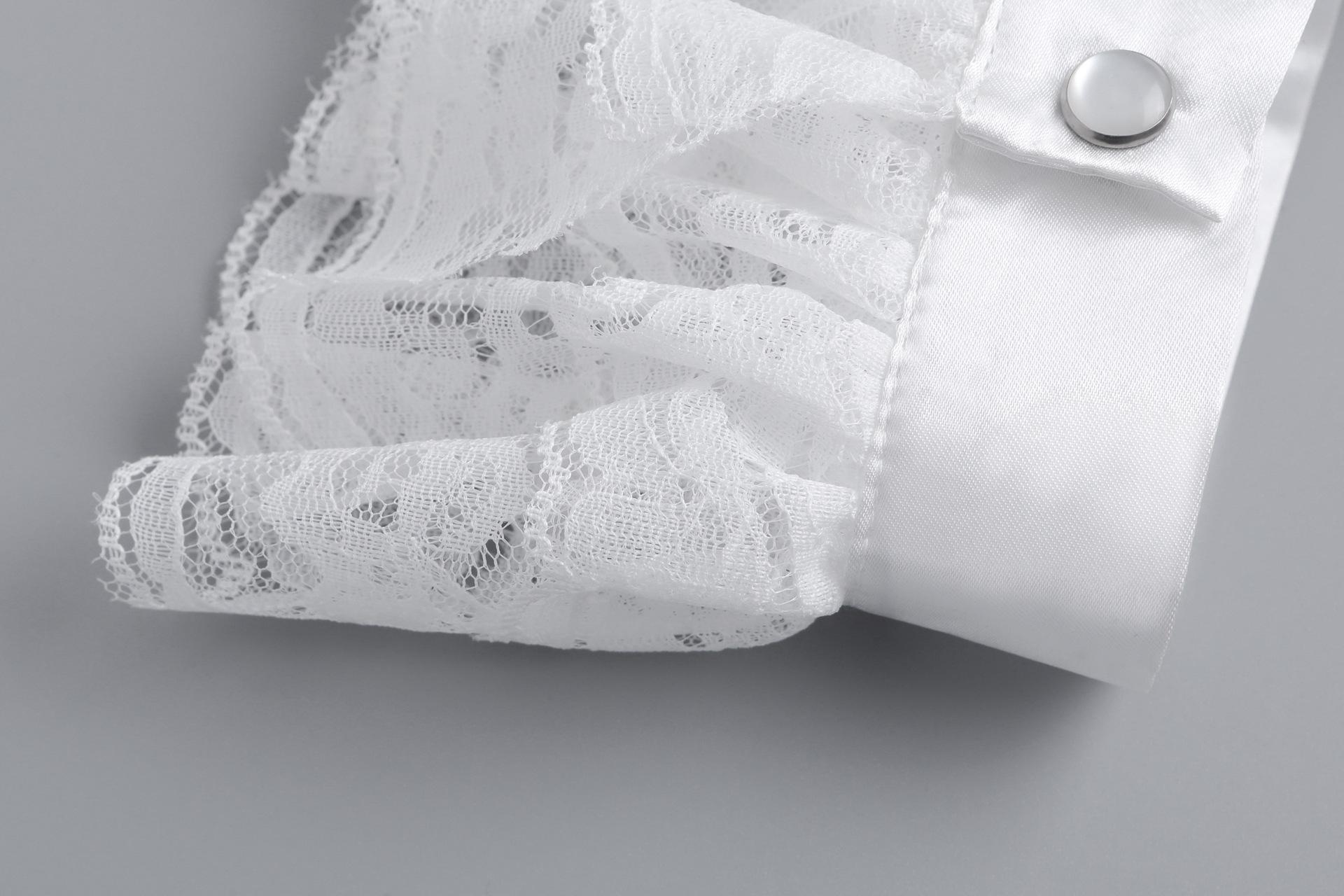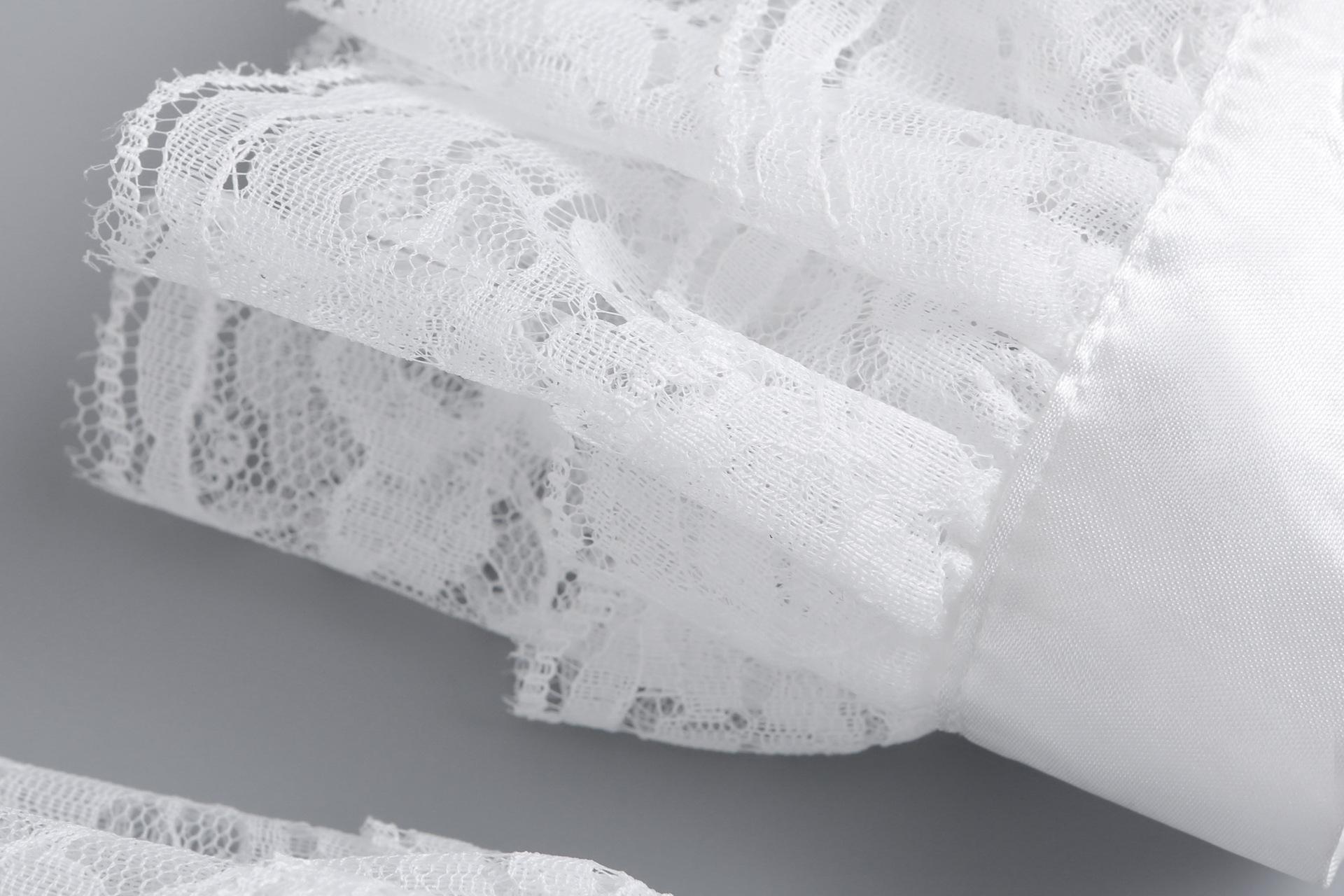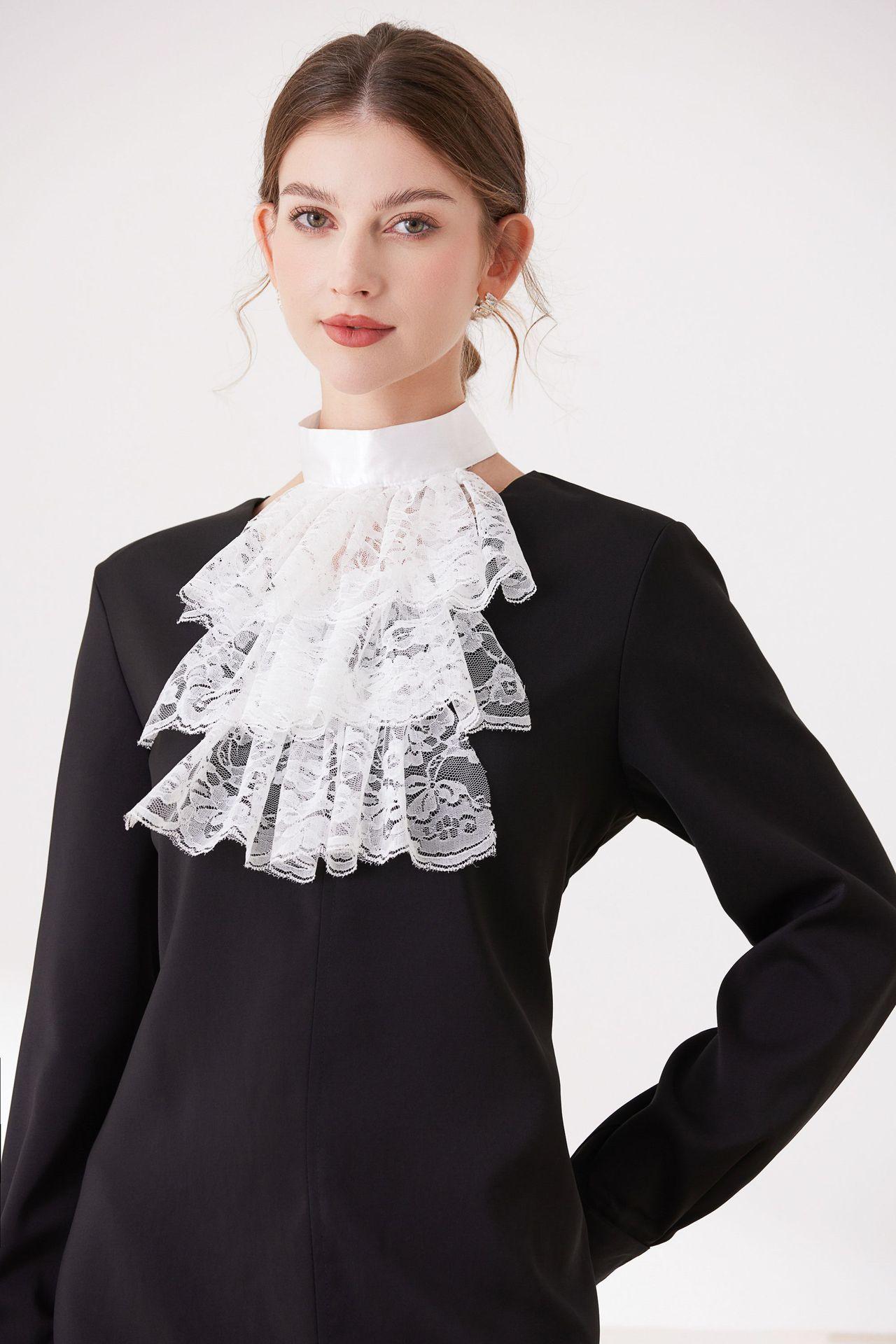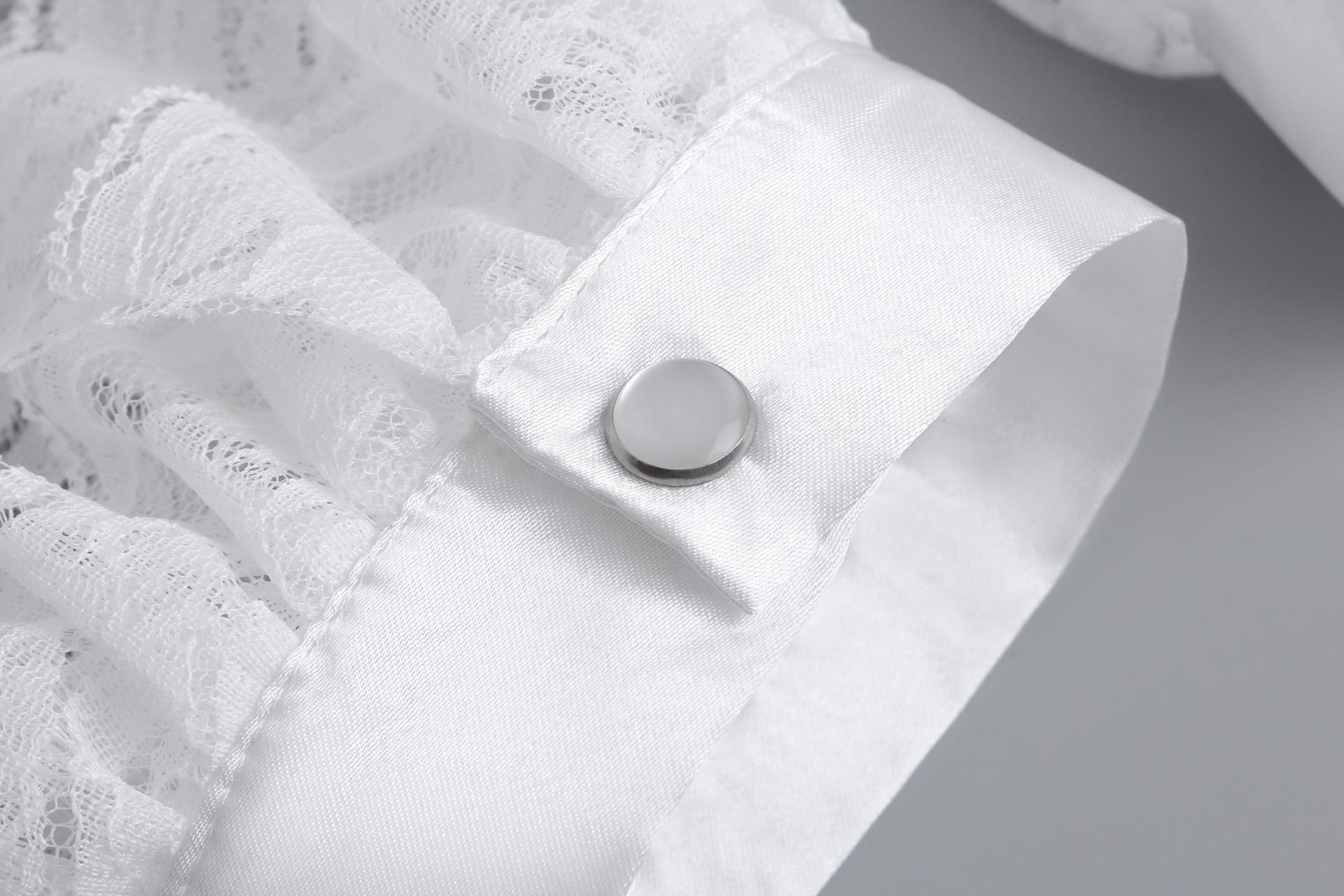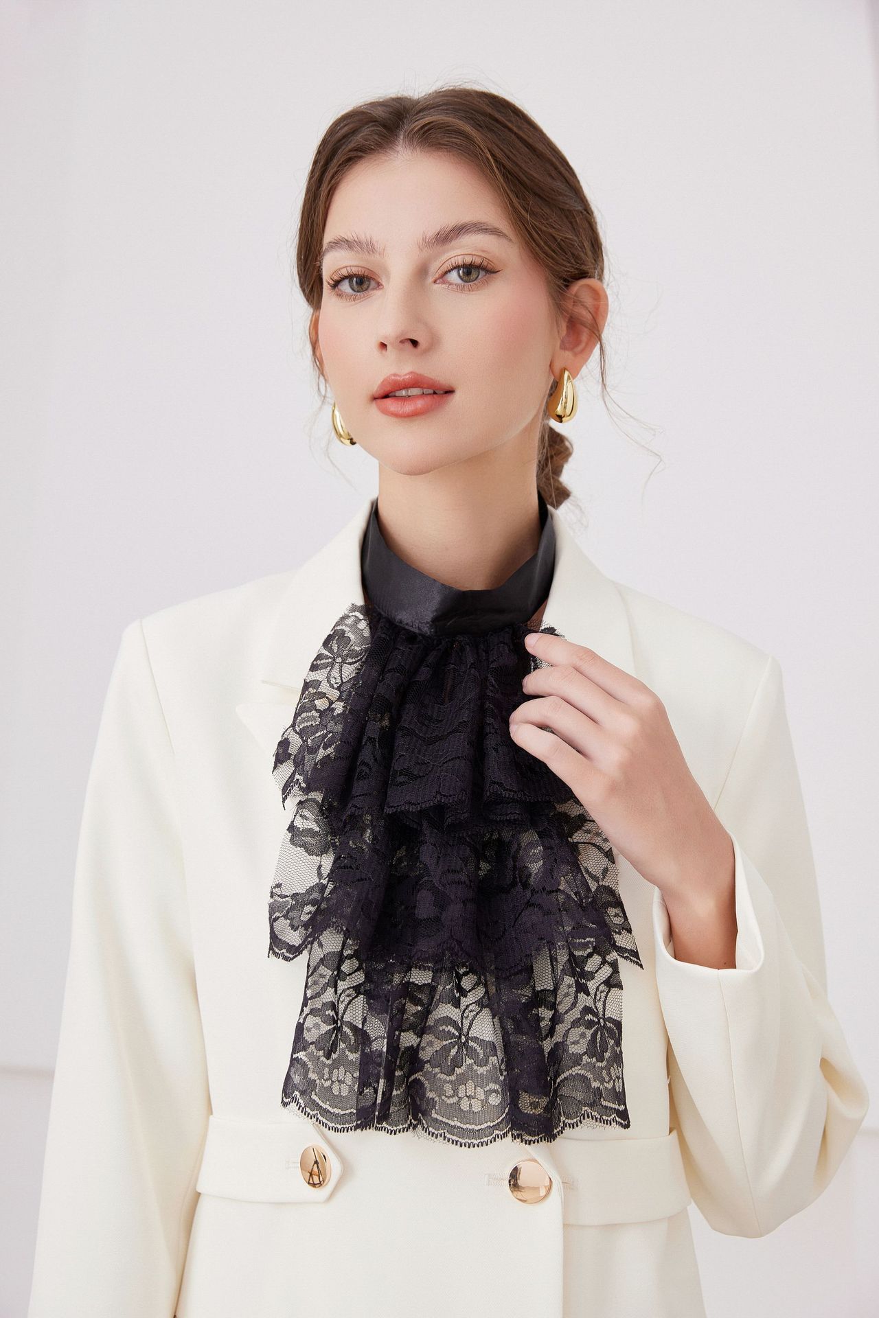 Encaje de tres capas Retro Cuello Waffle Manga Mano Cuello Ruff Palacio Cuello Decorativo Hoja de Loto con Cuello Flor Cuello Guantes traje