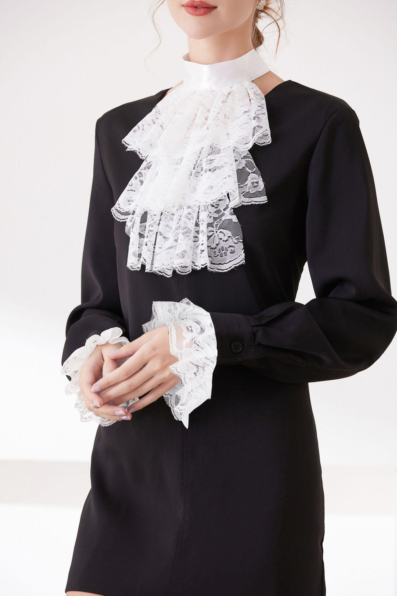 White three-layer collar, White two-layer cuffs, Black three-layer collar