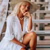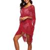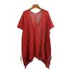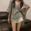 Blusa Bikini Europea y Americana Lazy Cuello en V con Cordones Verano Deseo Puro Bohemio Crochet Tejido Calado