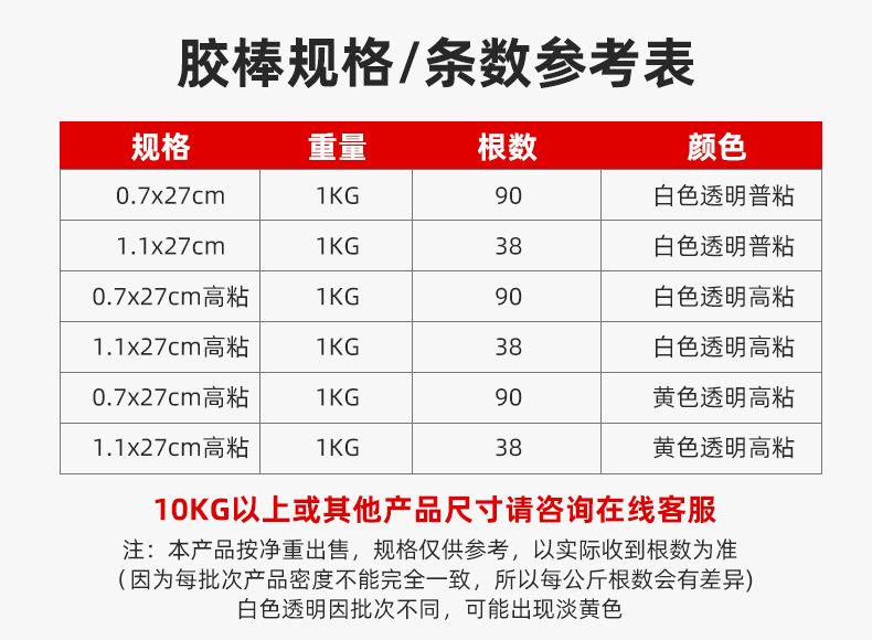 0.7×27cm general sticky, 1.1×27cm general sticky, 0.7×27cm high viscosity, 1.1×27cm high viscosity, 0.7×27cm y...