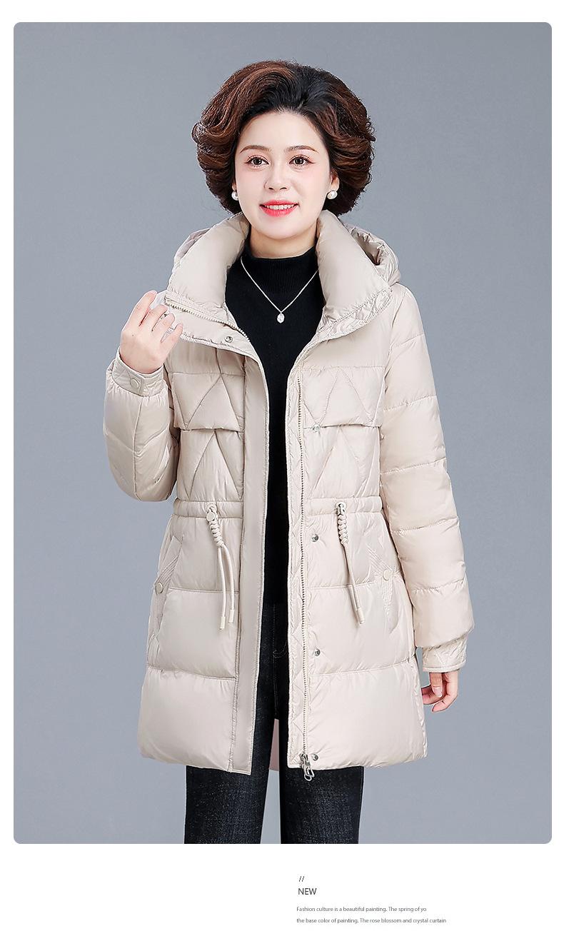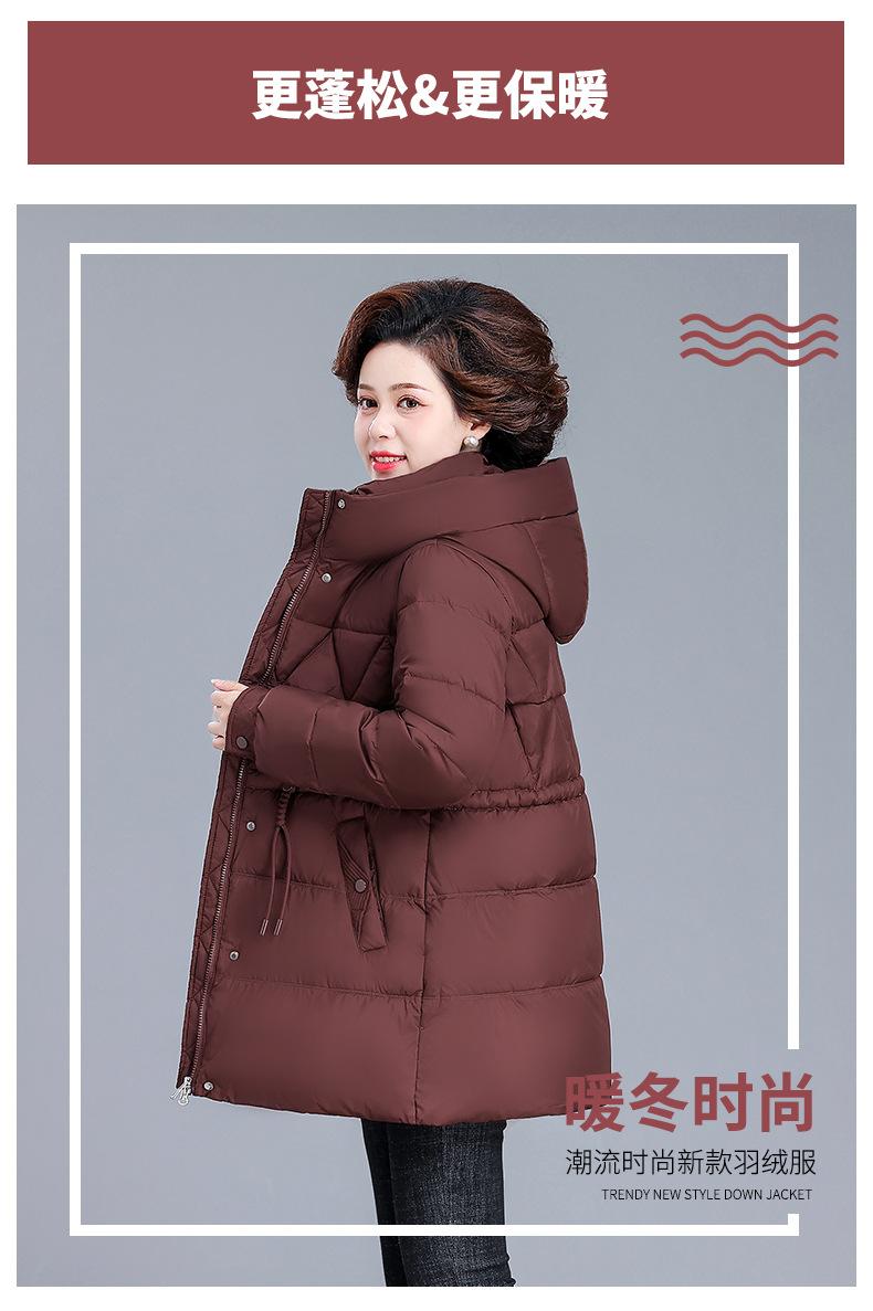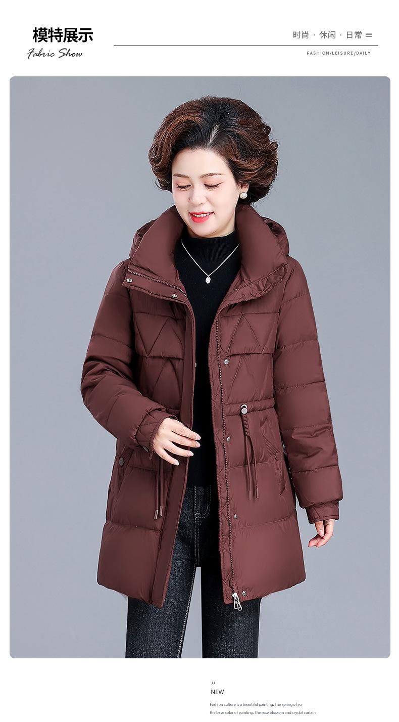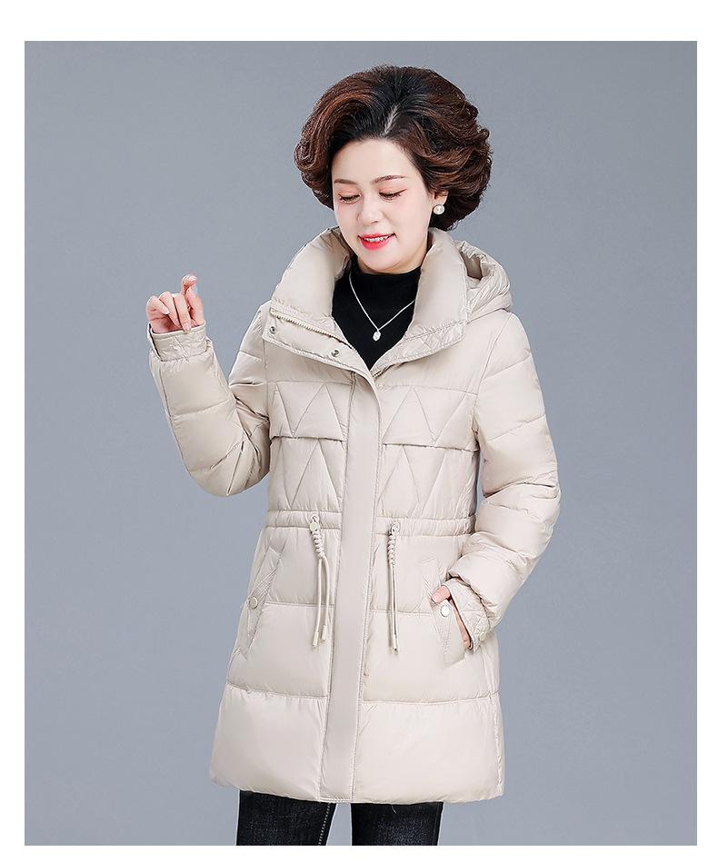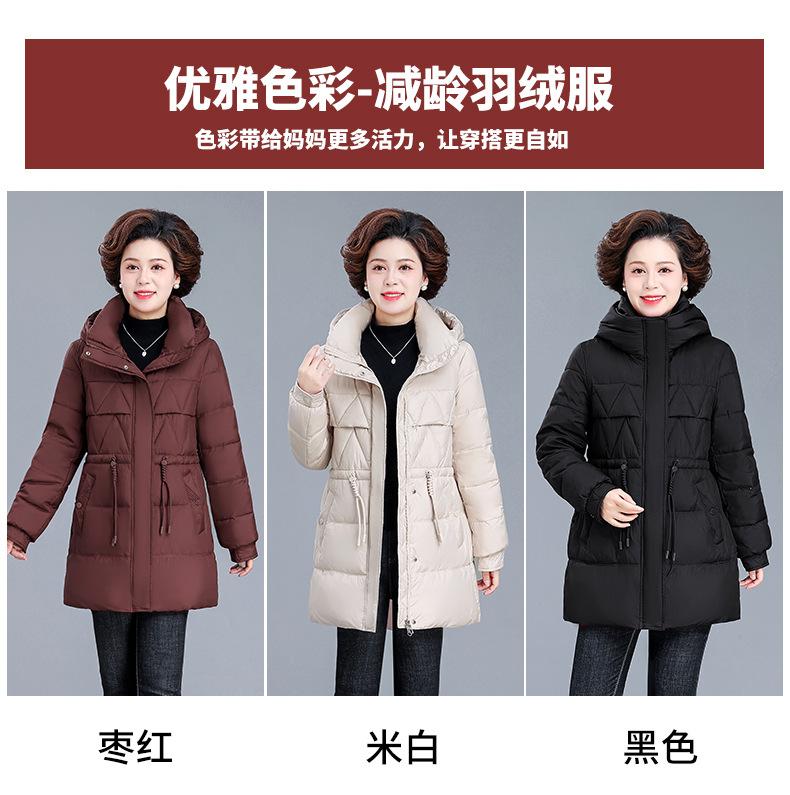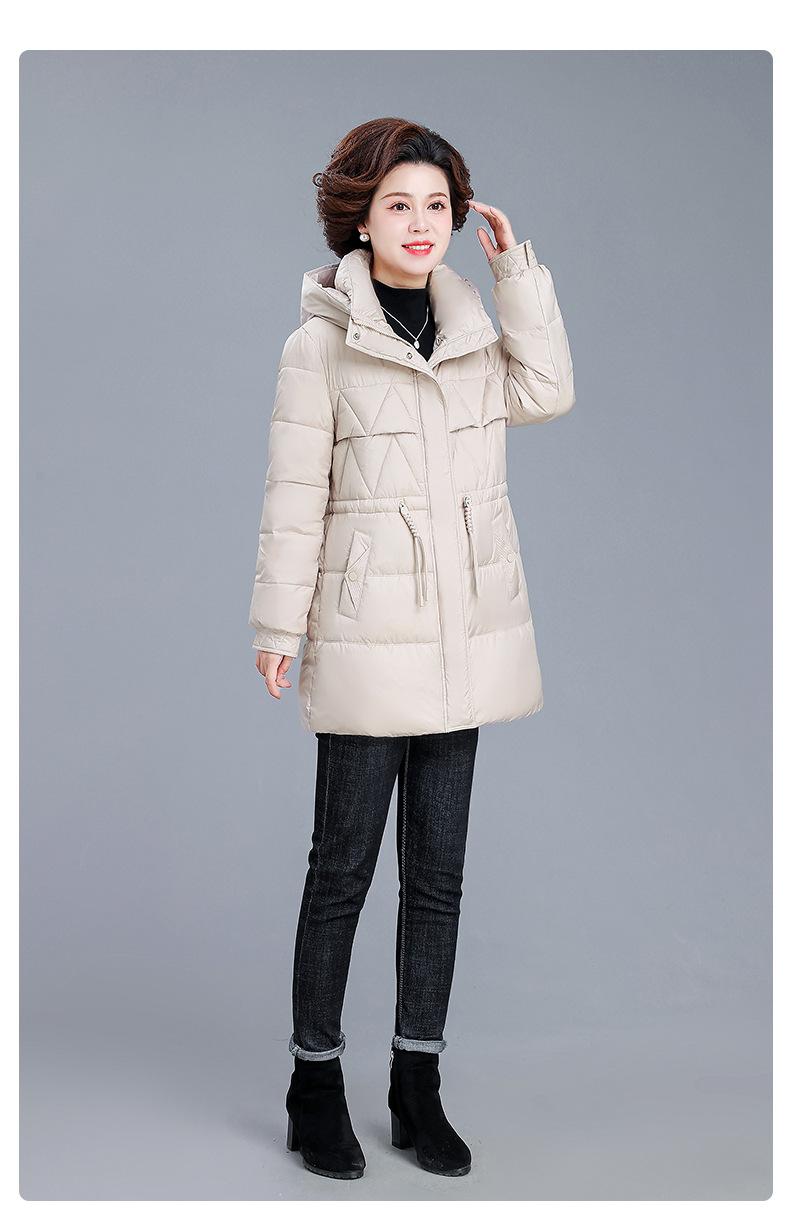 Chaqueta de plumón de invierno para madre de mediana edad, abrigo largo cálido de plumón de pato blanco, chaqueta acolchada de algodón para mujeres de mediana edad y ancianas, otoño e invierno, talla grande