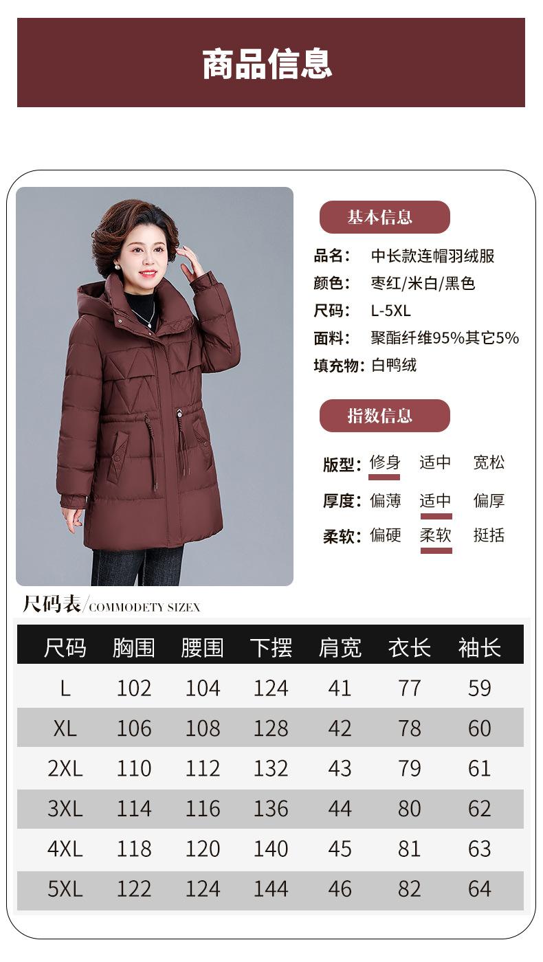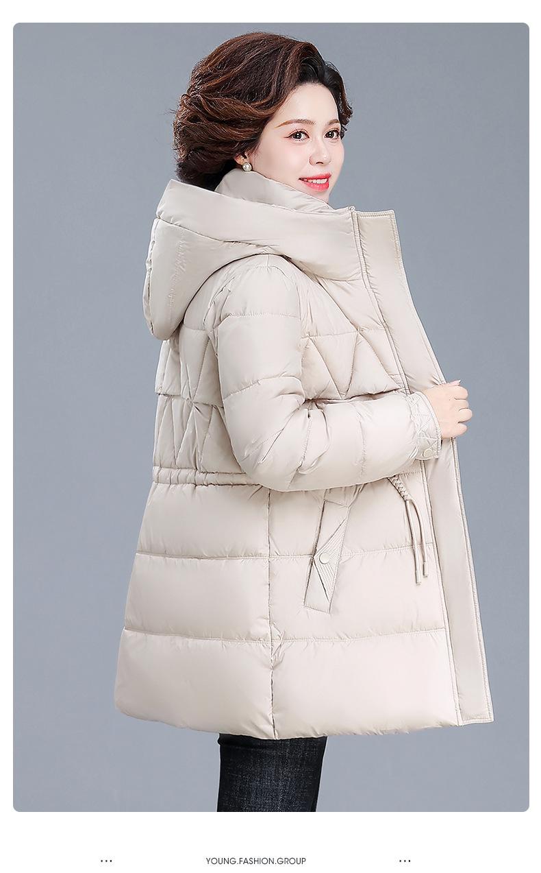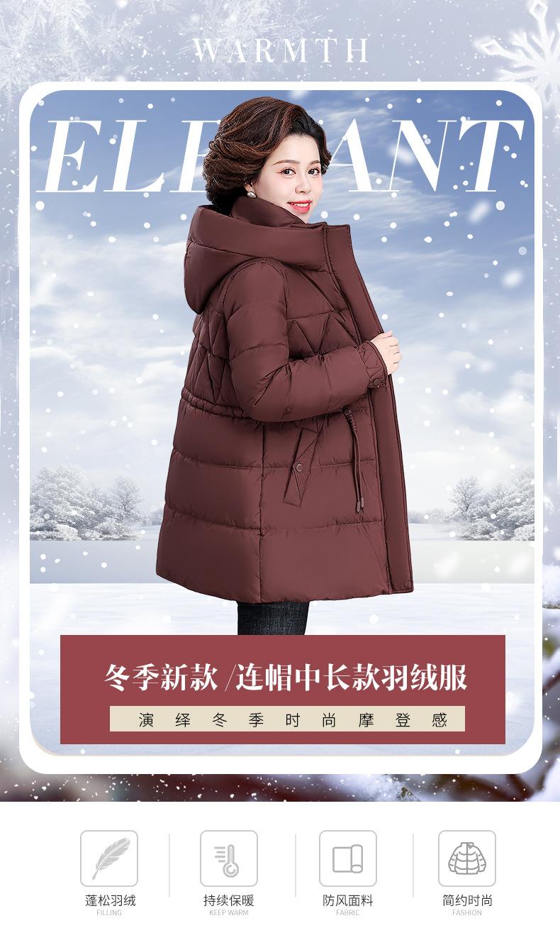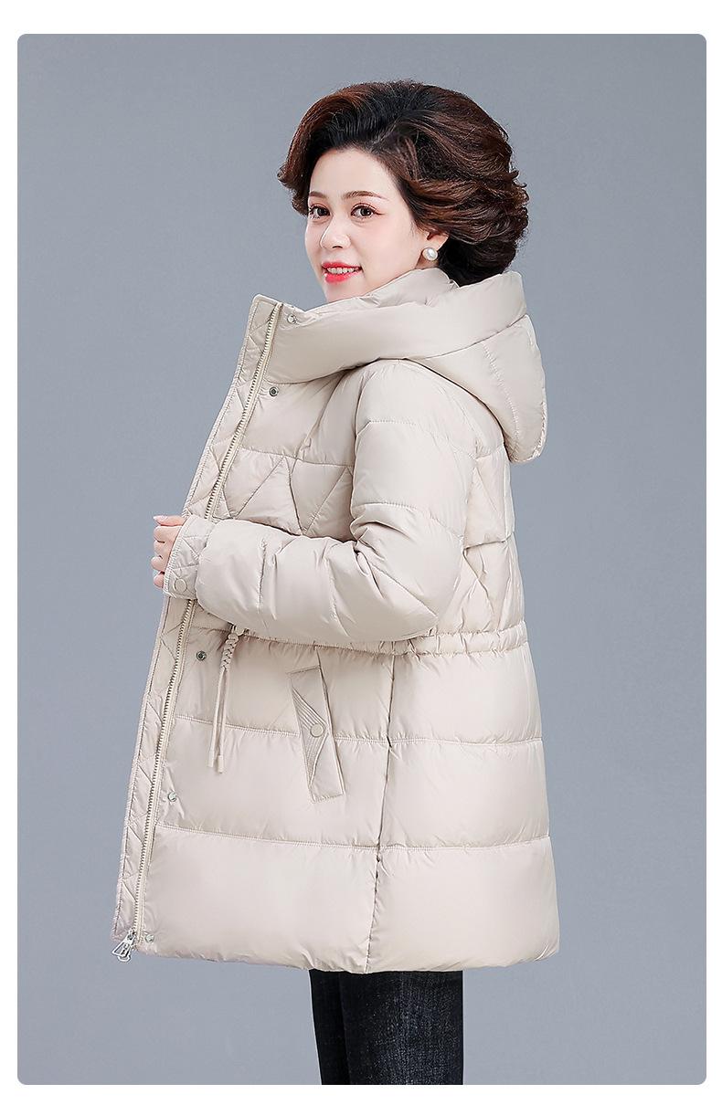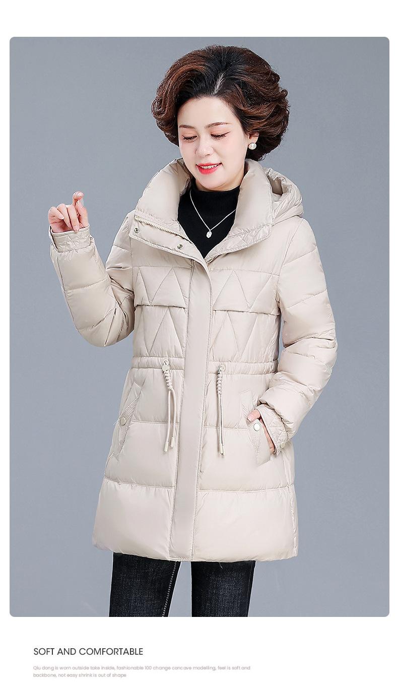 Chaqueta de plumón de invierno para madre de mediana edad, abrigo largo cálido de plumón de pato blanco, chaqueta acolchada de algodón para mujeres de mediana edad y ancianas, otoño e invierno, talla grande